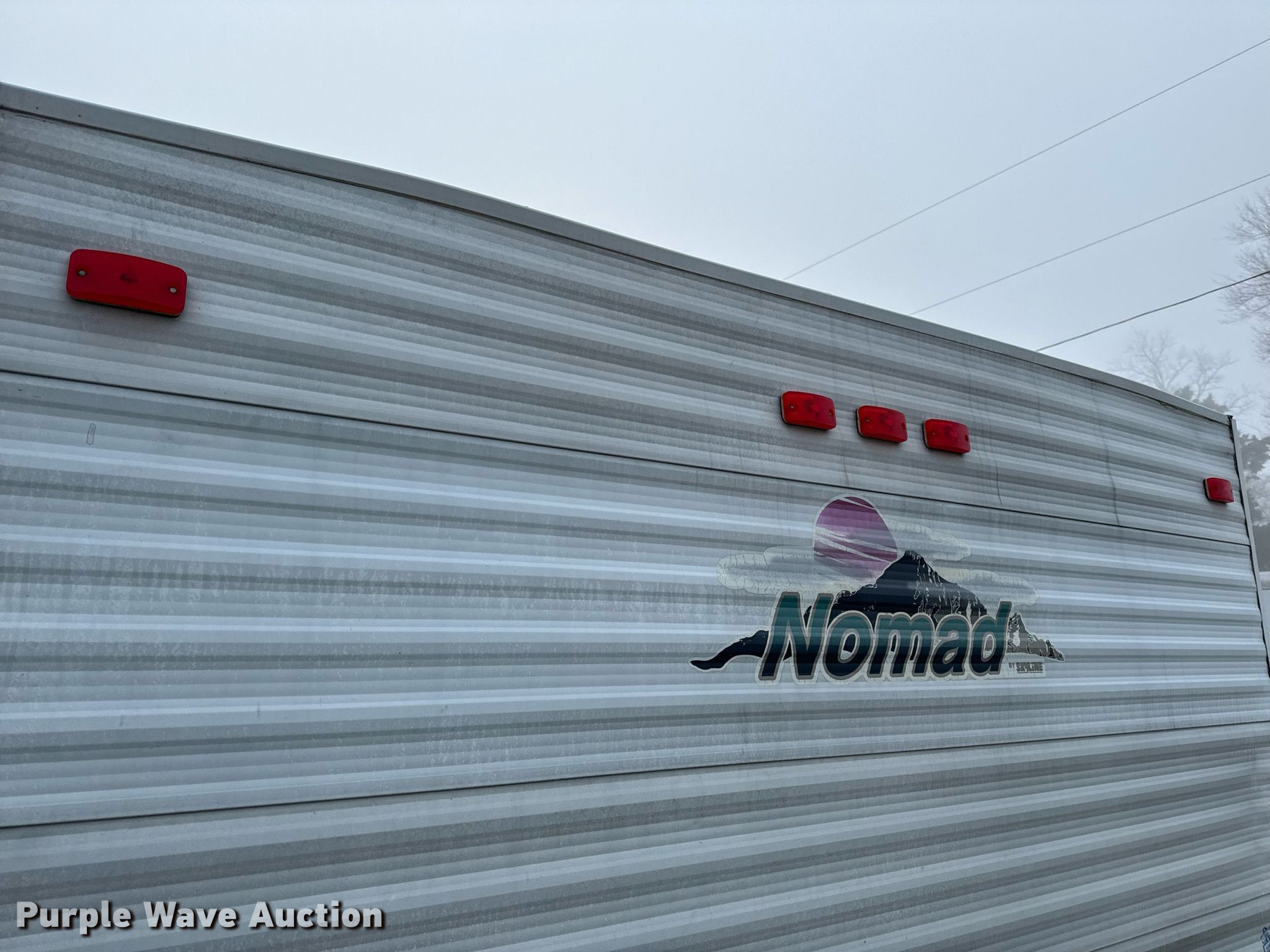 2001 Nomad camper. Camper length: 22' 6", VIN: 1SN200L251B001052. Chassis Axles: Tandem, Suspension: Spring, Brakes: Electric. Interior Kitchen: Sink, Refrigerator, Freezer, Microwave, Oven, Stove: Gas, Living room: Table, Couch, Pull out couch, Bathroom, Beds: 1 Bed type: Queen, Sound system, Heater, AC units: 1. Features Awnings: 1 Awning type: Manual, Ball hitch: 2 5/16". Tires Size: ST205/75D14. Notes No battery, Water damage Soft floor by rear entry door. Missouri title. Title distribution may be delayed up to 14 days from verification of funds. 59517 Hwy C. Russelville, MO 65074