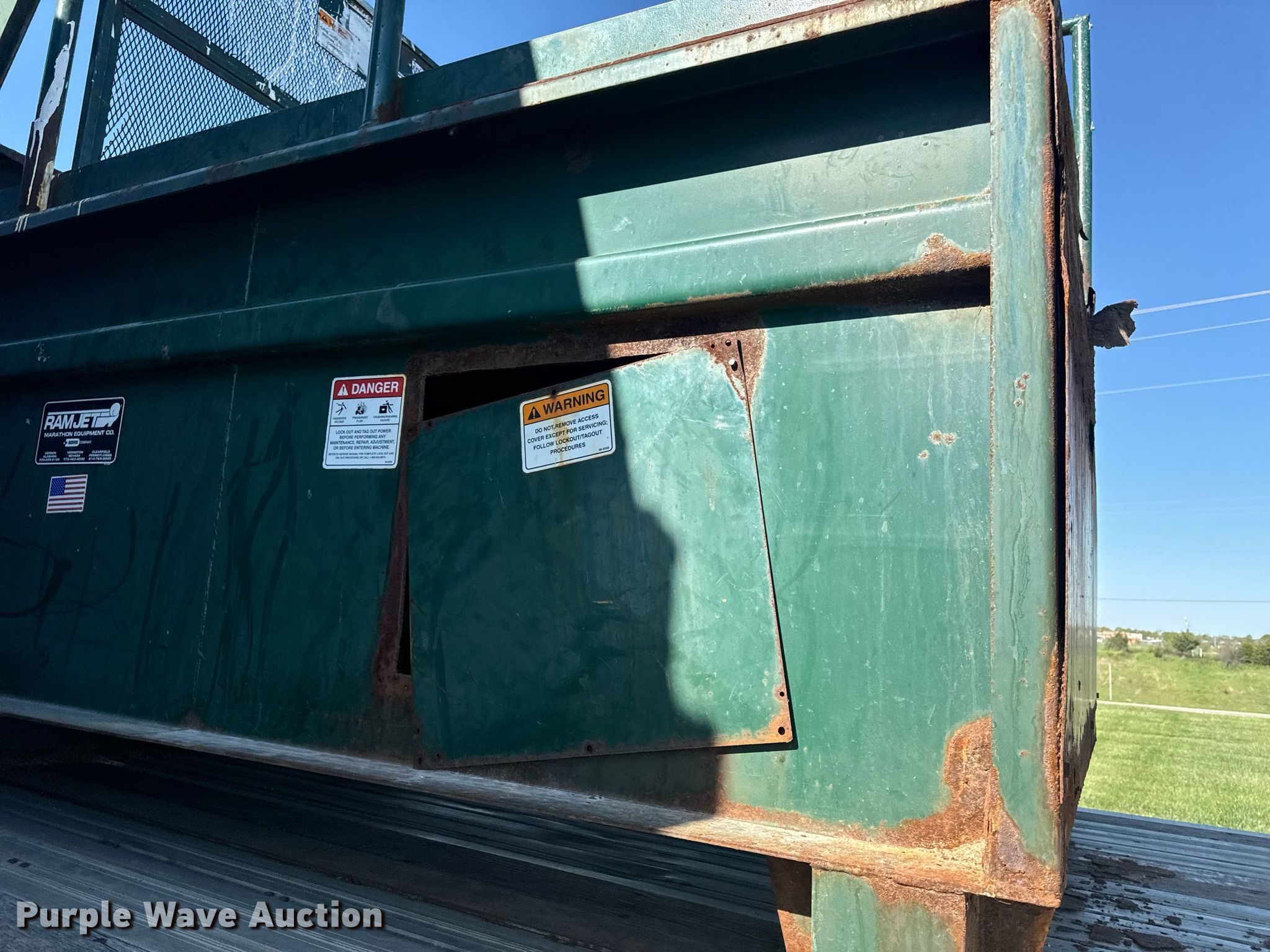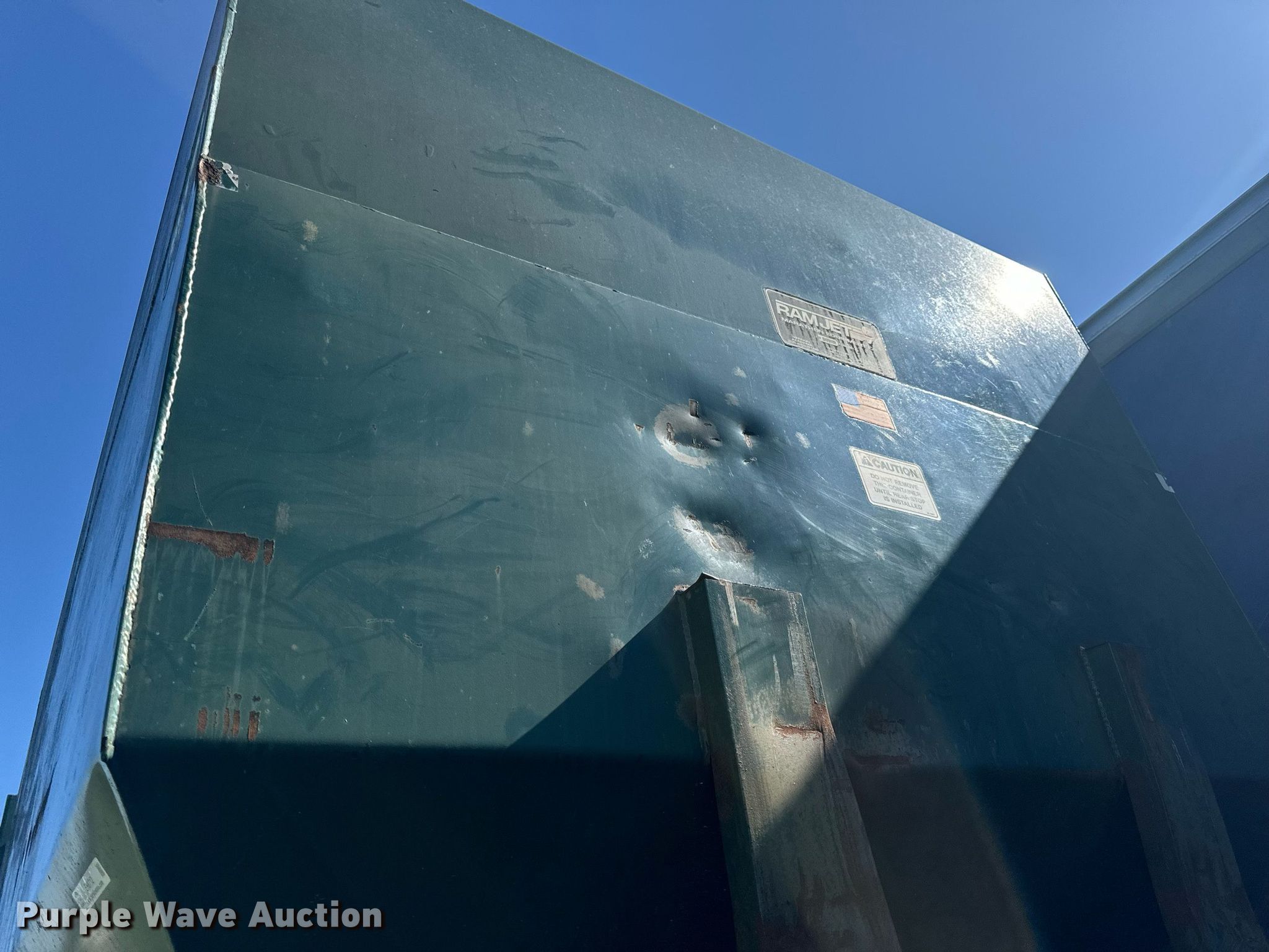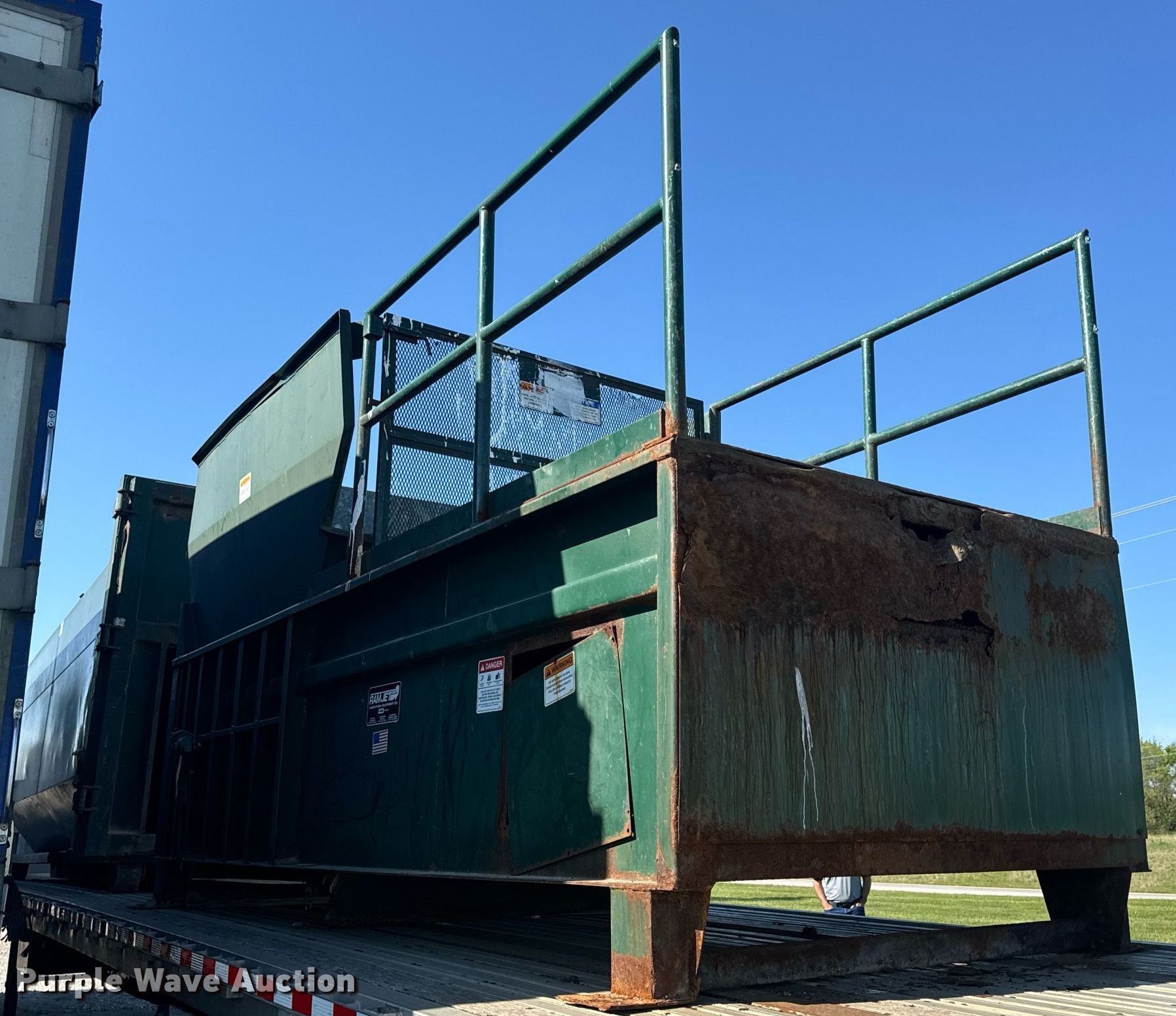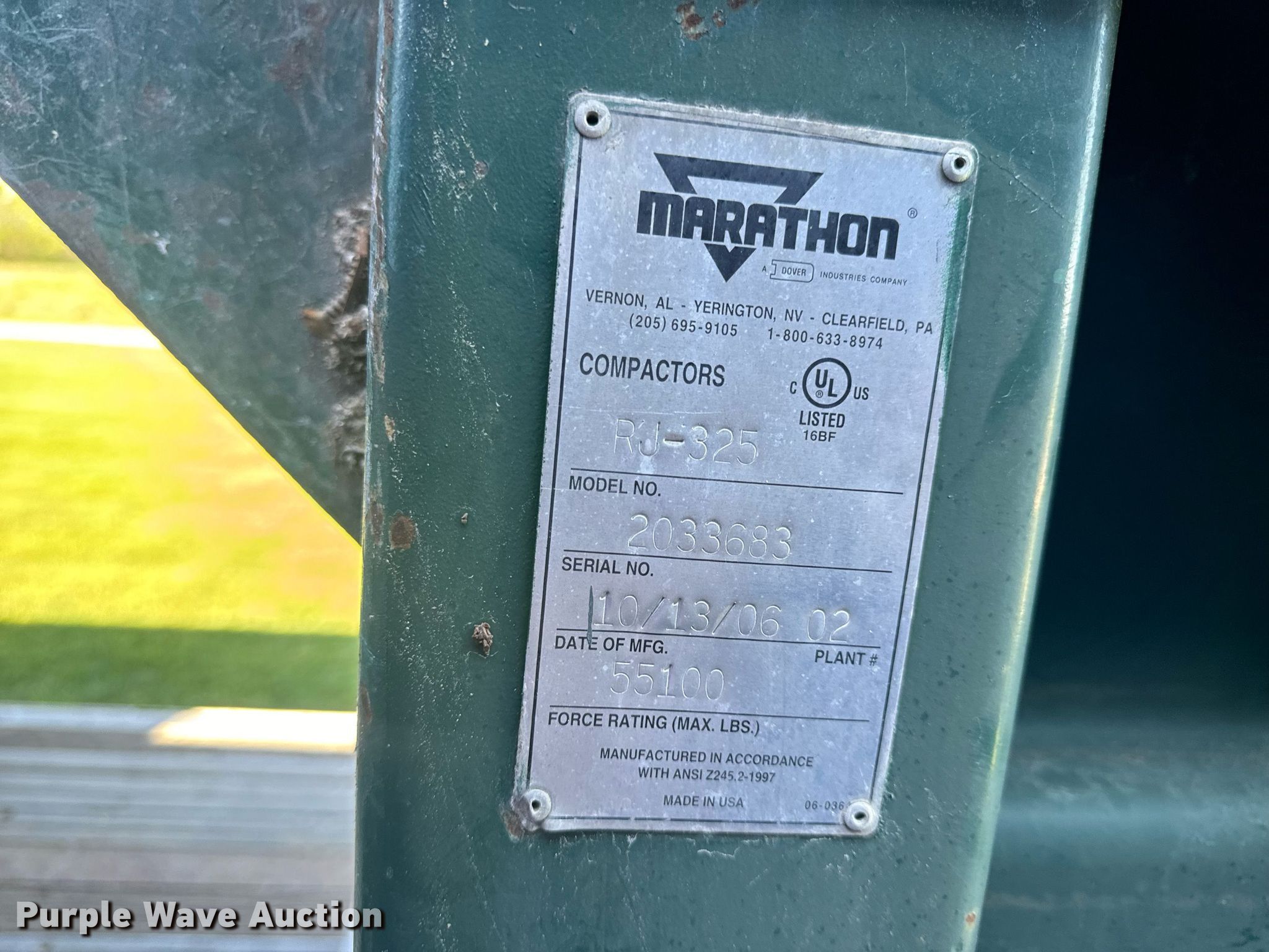 2006 Marathon RJ-325 roll-off trash compactor. Serial: 2033683. Features Dumpster dimensions: Approx. 22' L x 99" W, Compactor dimensions: Approx. 82" W x 15', Max force: 55,100 lbs, Volts: 208. Notes Trailer not included. Mid-Am Building Supply Inc.. Moberly, MO 65270