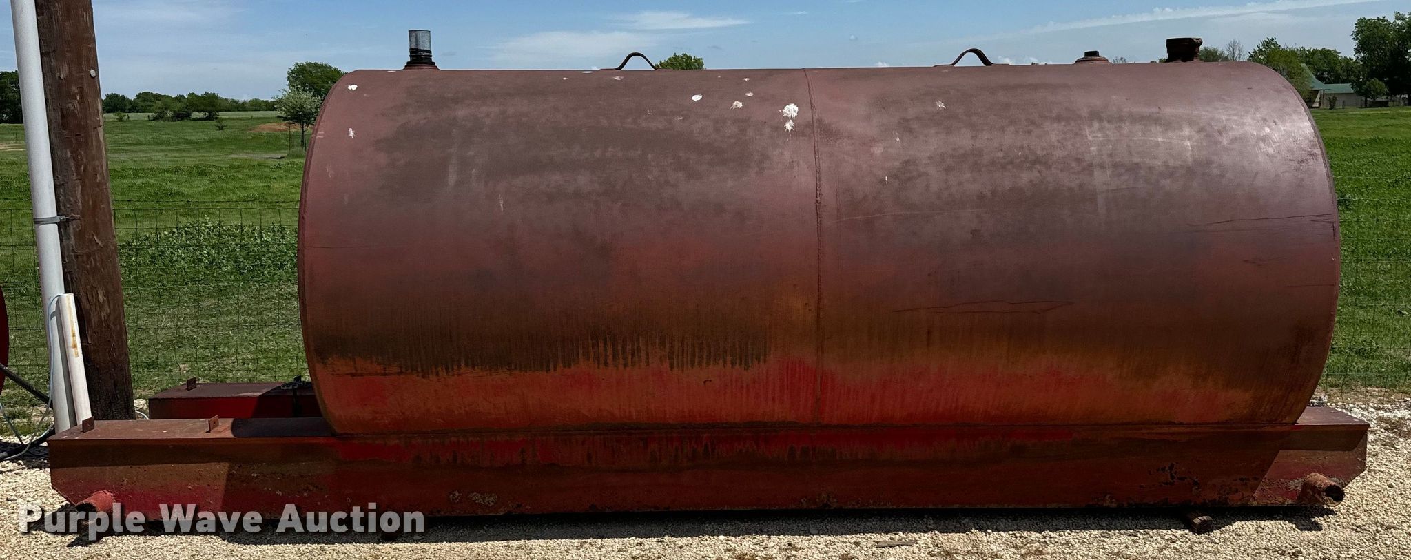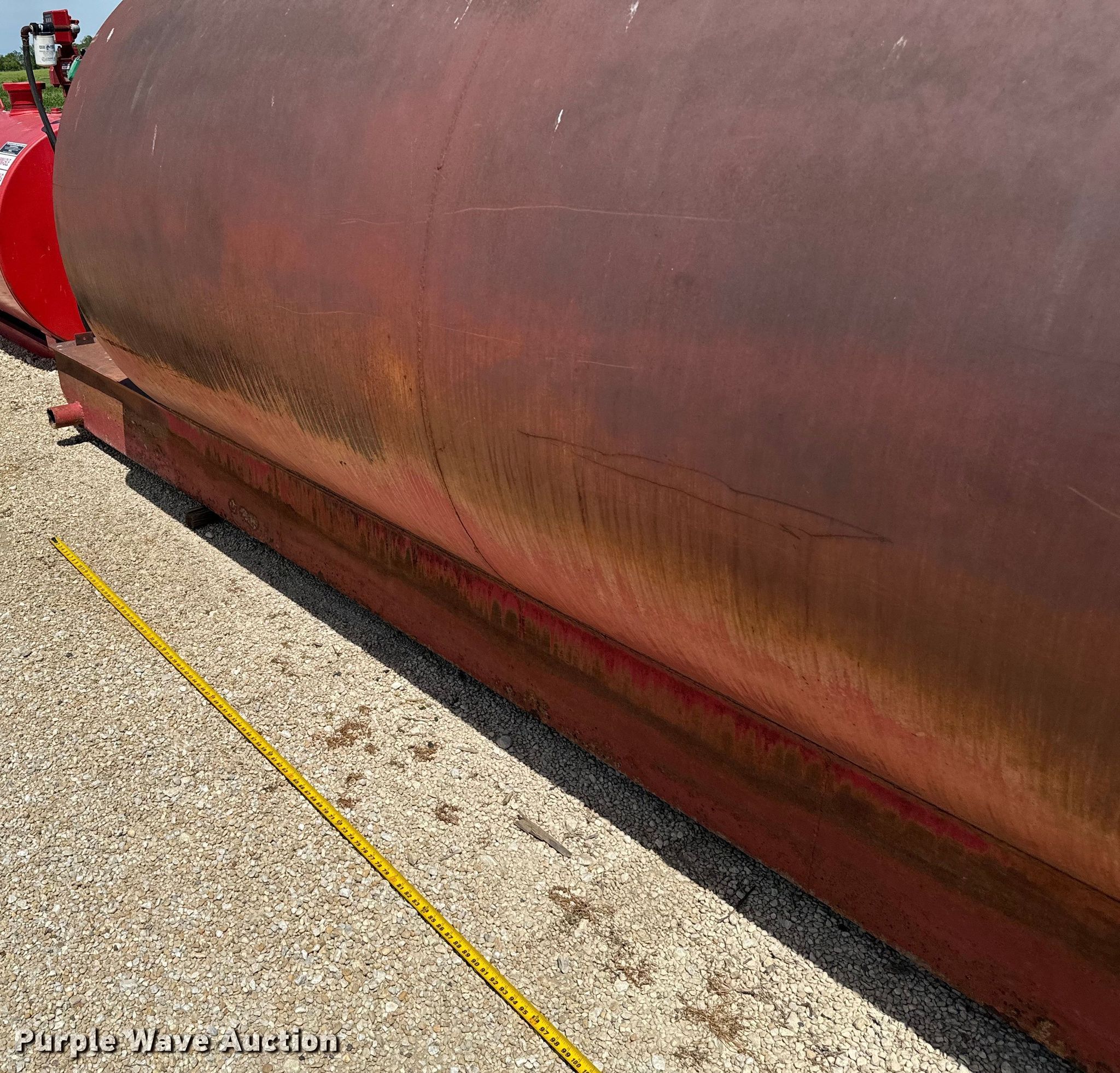 Purple Wave is selling a used Fuel and Lube in Texas. This item is a Statco fuel tank with the following: 12' L x 63" D, Inlet/outlet: 1", Skid mounted, Length: 199"