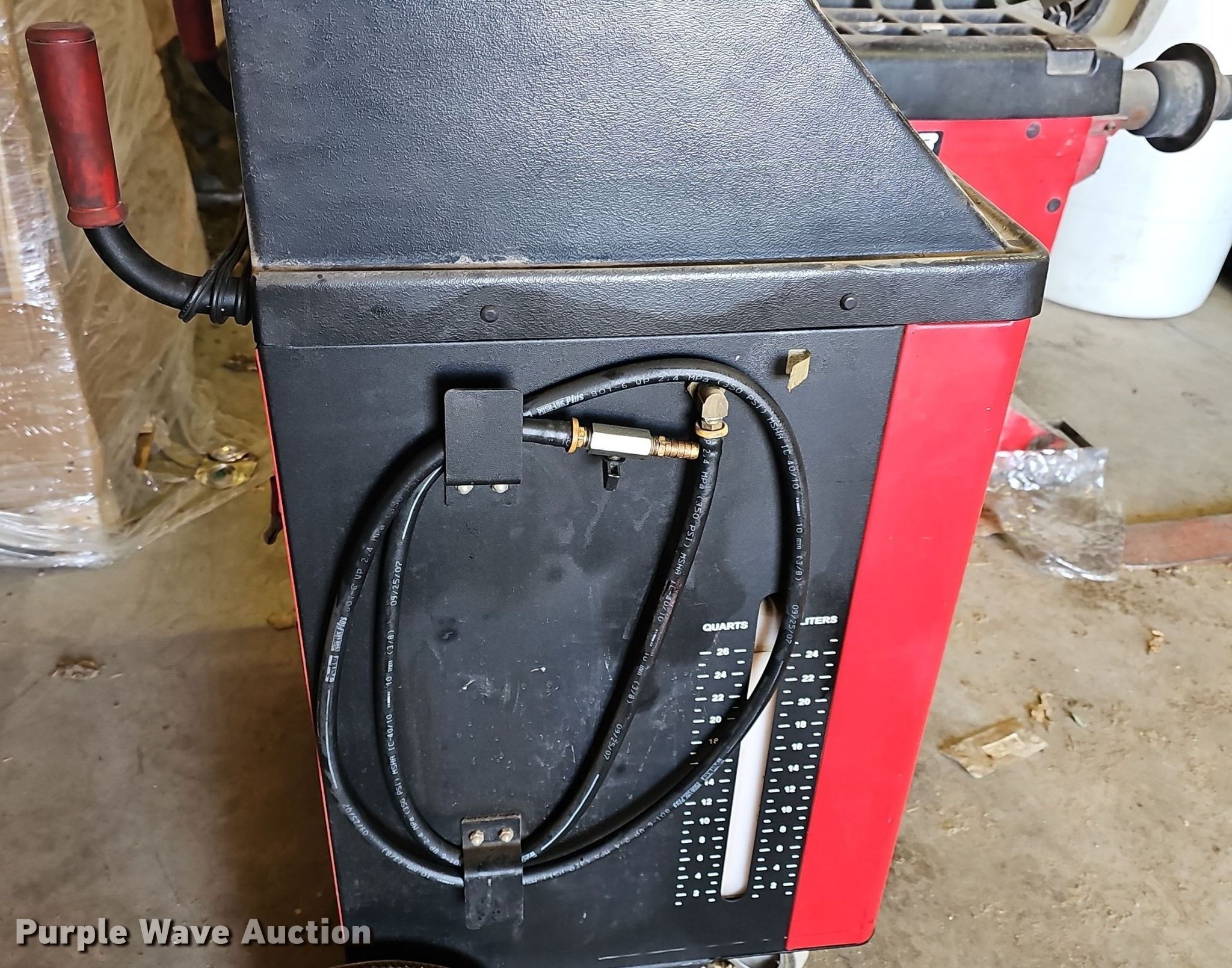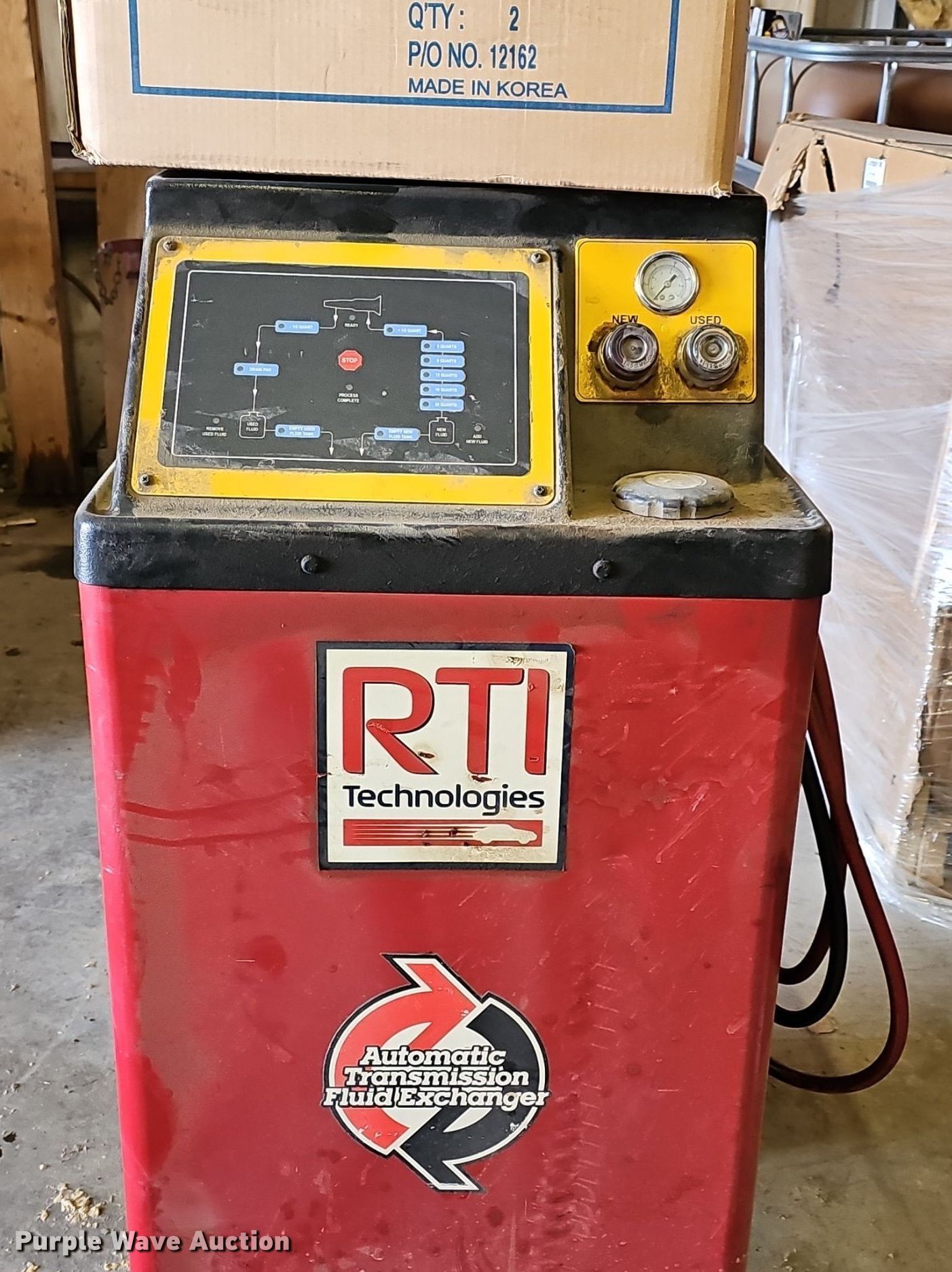 Purple Wave is selling a used Tools in Kansas. This item is a Tools with the following: RTI Technologies ATX2 automatic transmission fluid exchanger, Serial: 001062140108001, Volts:12vdc, Amps: 10, PSIG: 100, Fittings, Hunter DSP9600 tire balancer, Serial: B08353, VAC: 230, Amps: 15, Phase: Single
