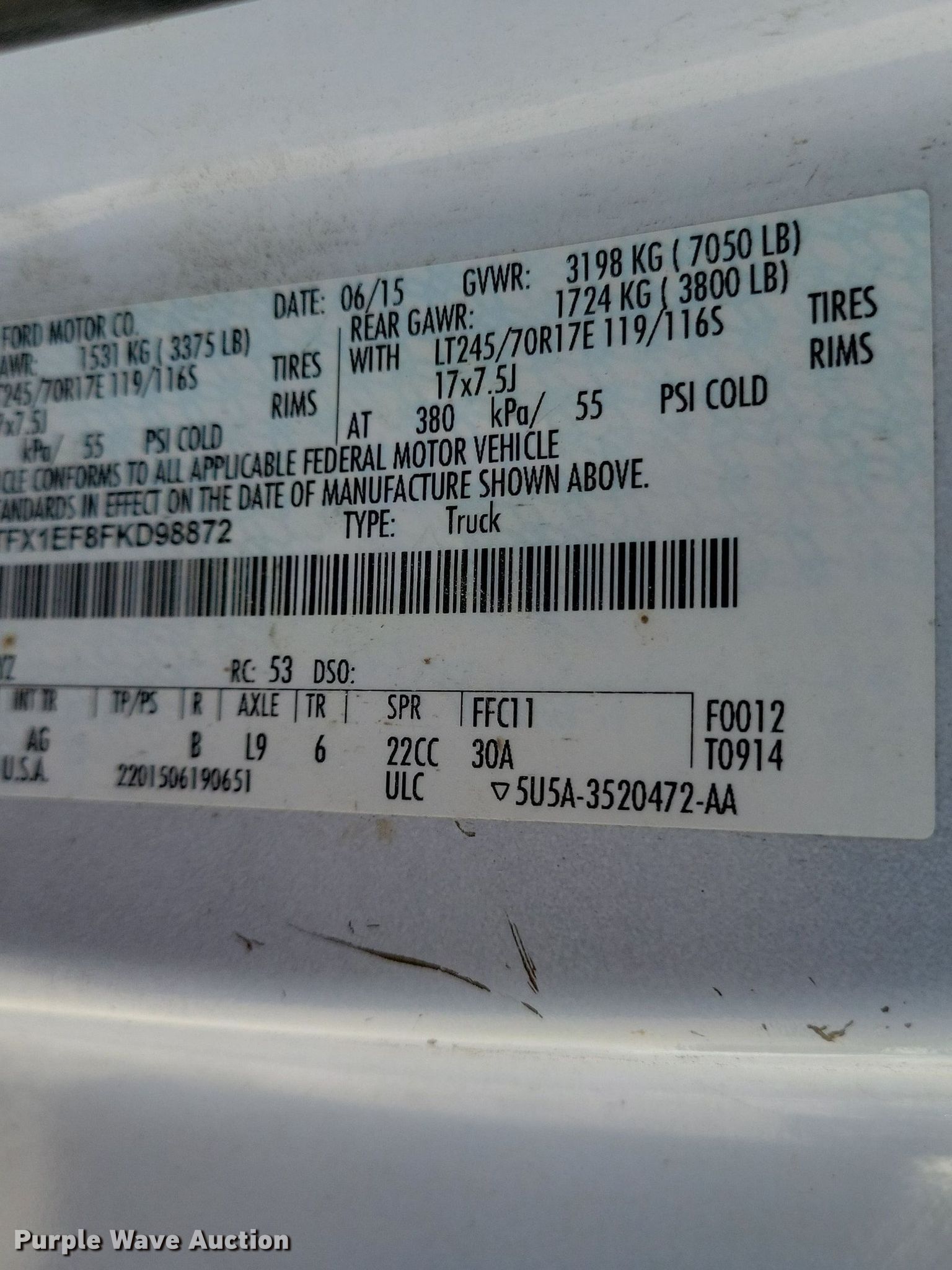 - VIN: 1FTFX1EF8FKD98872