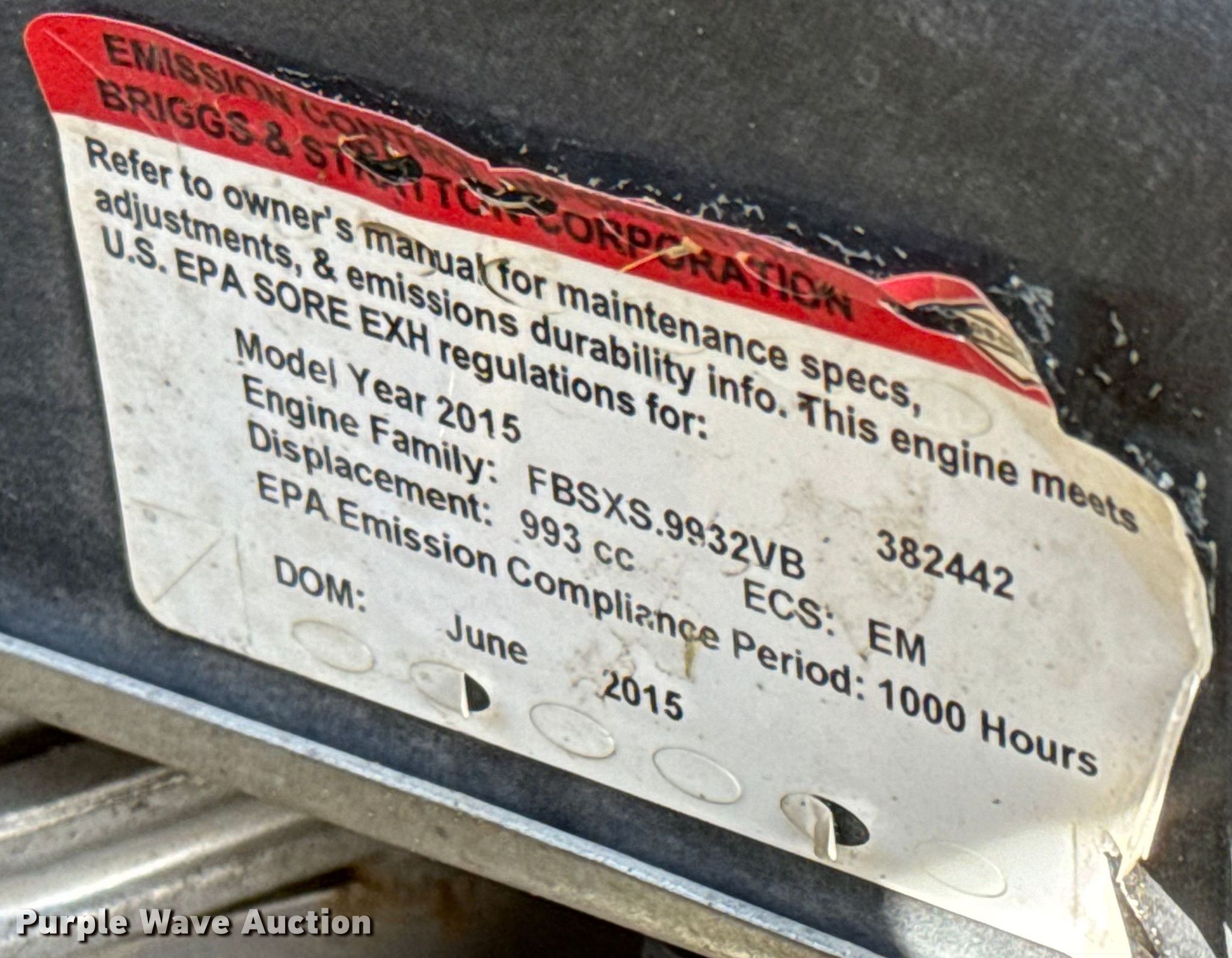 Hustler Super Z Hyperdrive 934919 ZTR lawn mower. Hours: 1,869 on meter, Cutting width: 60", Serial: 16019670. Engine Briggs & Stratton, Displacement: 993 cc, Cylinders: 2, Fuel type: Gas. Transmission Hydrostatic. Tires Front: 13x6.50-6, Rear: 26x12.00-12. Sedgwick, KS 67135