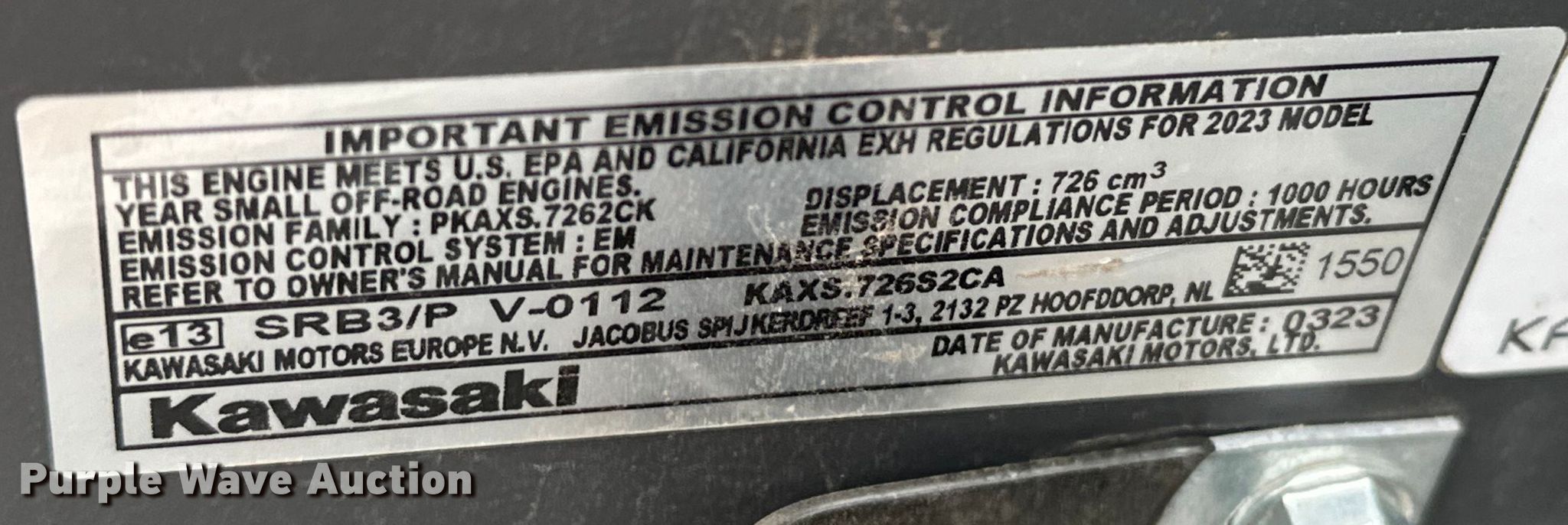 2023 Bobcat ZT3500 ZTR lawn mower. Hours: 6 on meter, Miles or hours may vary, unit still in use, Cutting width: 61", Serial: 999350303172. Engine Kawasaki FX730V, Displacement: 726 cc, Cylinders: 2, Fuel type: Gas, HP: 23.5. Transmission Hydrostatic. Operators station OROPS. Tires Front: 13x6.50-6, Rear: 23x10.50-12. Stillwater, OK 74074