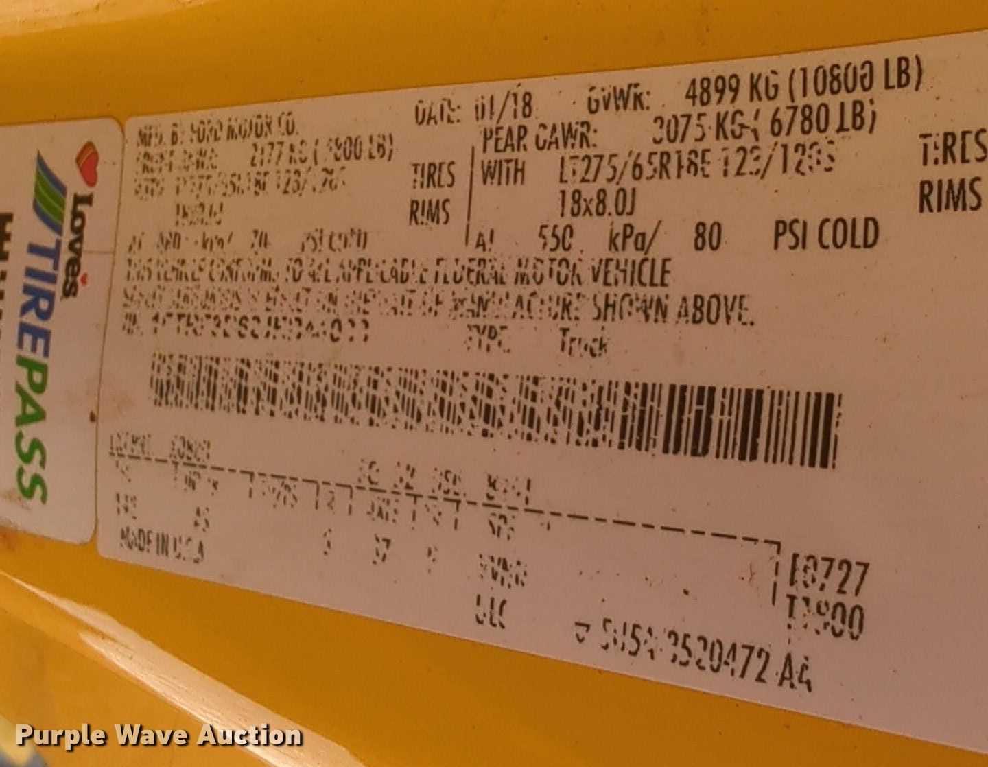 2018 Ford F350 Super Duty utility bed pickup truck. Miles: 86,363 on odometer, VIN: 1FTRF3B62JEB44033. Engine Displacement: 6.2L V8 OHV, Cylinders: 8, Fuel type: Gas. Transmission Automatic, Four wheel drive. Interior AC, Heat, Power windows, Power locks, Cruise control. Features Utility bed 8' L x 80" W, End gate lift. Tires Size: 275/65R18. Notes Windshield chipped or cracked, Collision damage , Air bags deployed , Dash warning indicator: Check engine, TPMS, ABS, Brake, Traction control, Airbag, Dead battery, Non-operational unit. Oklahoma title. Title distribution may be delayed up to 30 days from verification of funds. Gemini Motor Transport. Oklahoma City, OK 73127