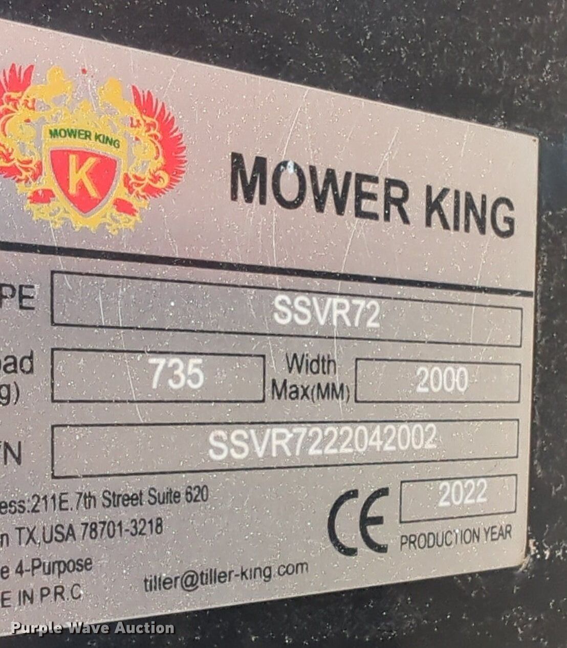 Purple Wave is selling a used Skid Steer Attach. in Oklahoma. This item is a 2022 Mower King SSVR72 skid steer roller with the following: Serial: SSVR7222042002, Width: 72"