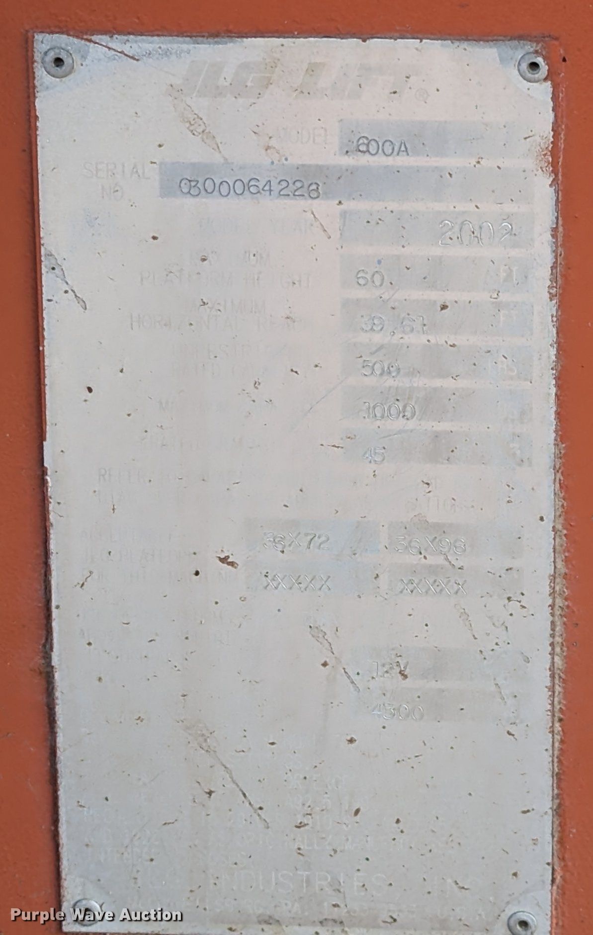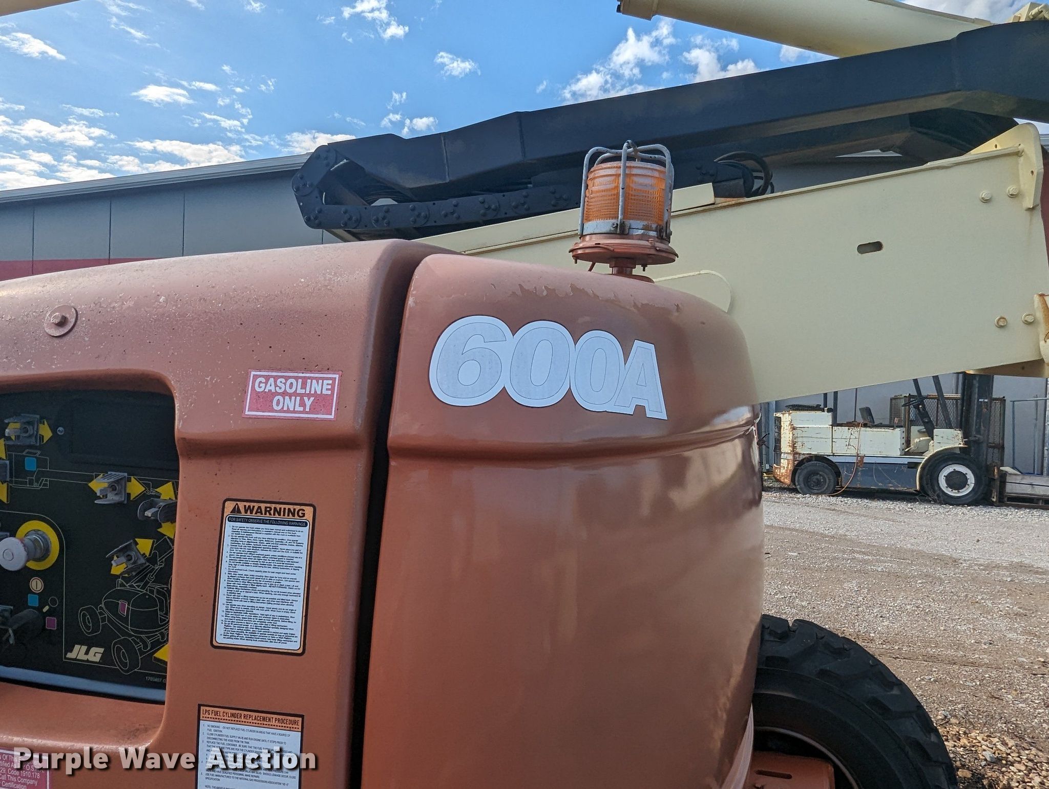 Purple Wave is selling a used Boom Lift in Oklahoma. This item is a 2002 JLG 600A boom lift with the following: Hours: 5,413 on meter, Serial: 0300064228