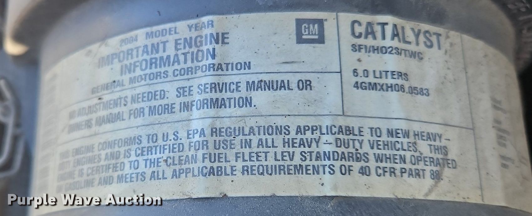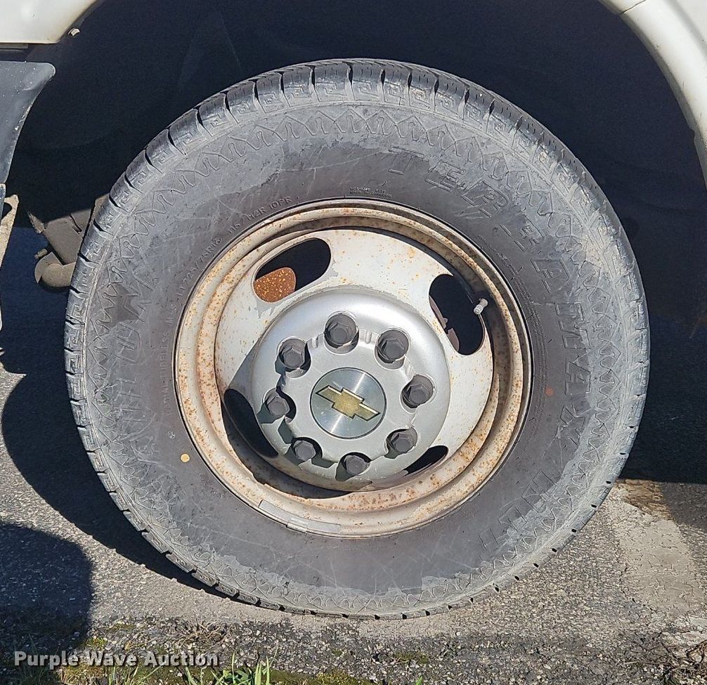 2004 Chevrolet Express 3500 box truck. Miles: Unknown, VIN: 1GBHG31U941138500. Engine Displacement: 6.0L V8 OHV, Cylinders: 8, Fuel type: Gas. Transmission Automatic. Chassis Axles: Single, Suspension: Spring. Interior AC, Heat. Features Box bed 12' L x 7" W, End gate lift Tommy gate.. Tires Size: 225/75R16. Notes Non-operational lift gate, Non-operational passenger door, Dead battery, Engine issues, will not start, Unknown operating condition. Kentucky title. GFL Environmental Inc. Indianapolis, IN 46219