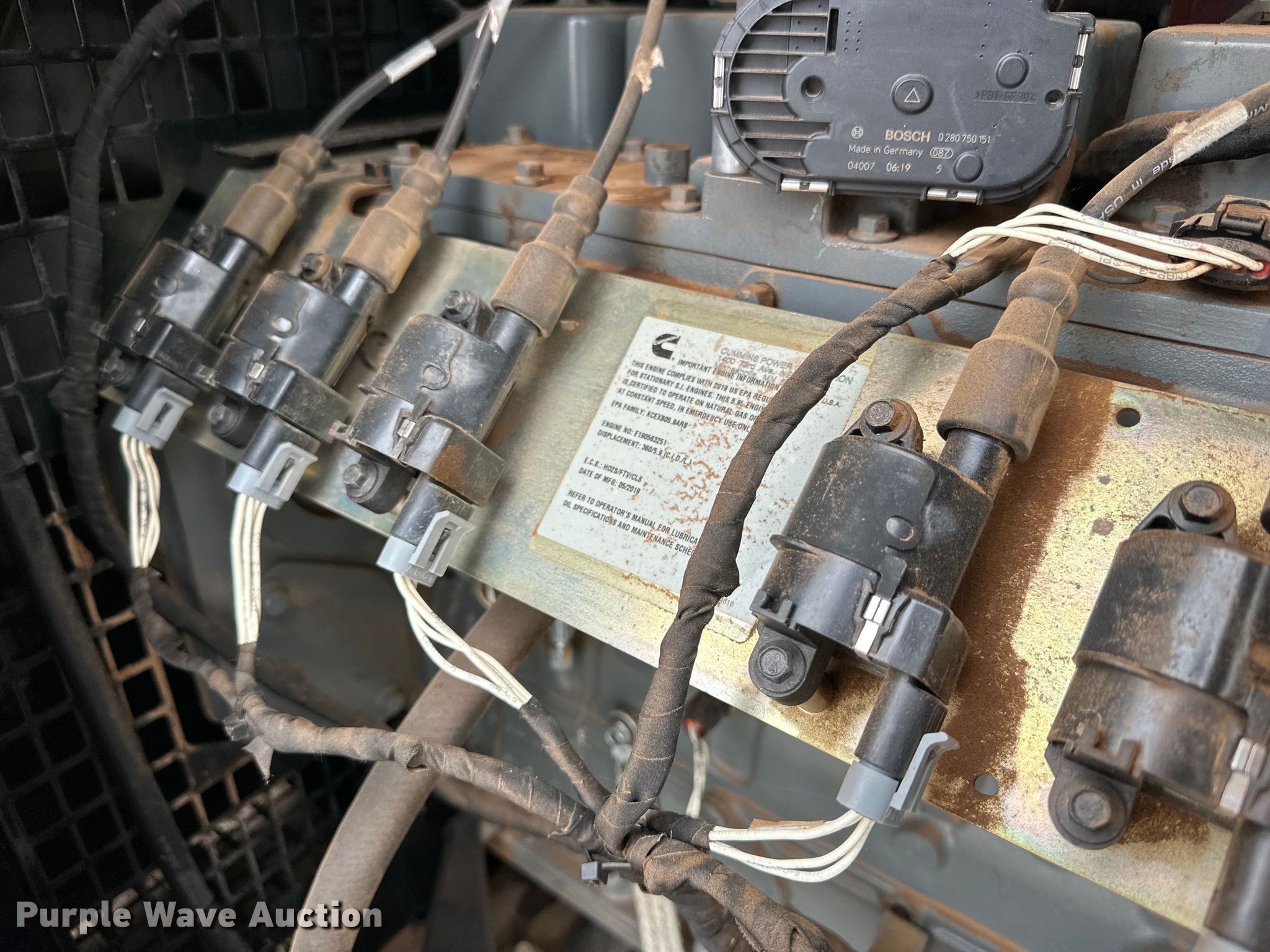 Cummins C60 N6 generator. Hours: 5,679 on meter, Serial: E190563251. Engine Cummins, Displacement: 5.9, Cylinders: 6, Fuel type: Natural gas. Features Generator kVA: 75, kW: 60, Phase: Three, Electric start, Skid mounted. Jason Poole Farms. Quanah, TX 79252