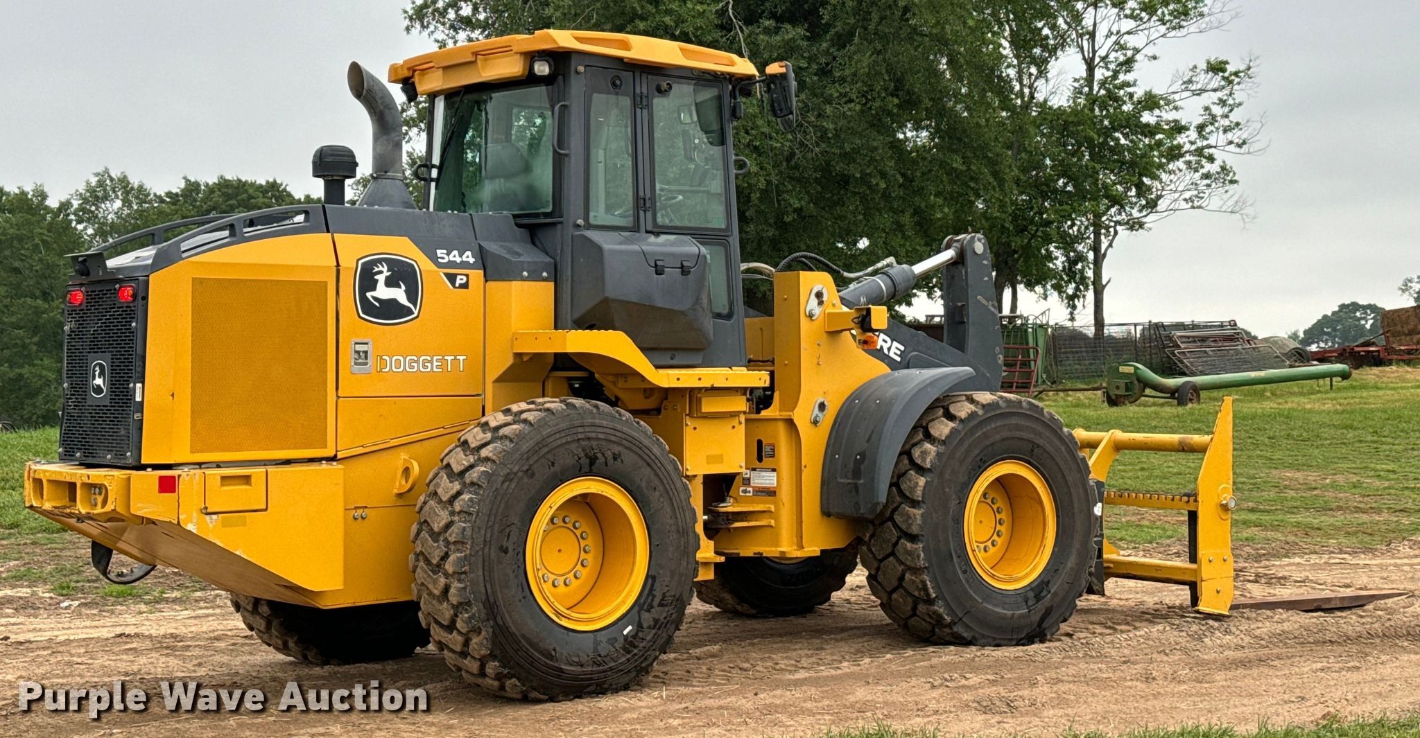 Purple Wave is selling a used Wheel Loader in Texas. This item is a 2022 John Deere 544 P-Tier wheel loader with the following: Hours: 4,945 on meter, Serial: 1DW544PATNLZ14680