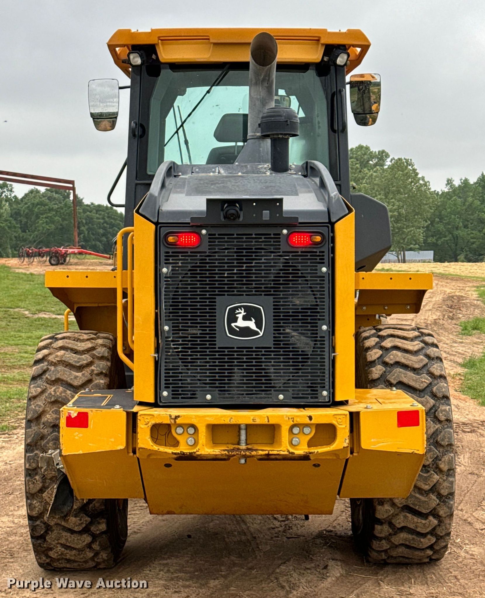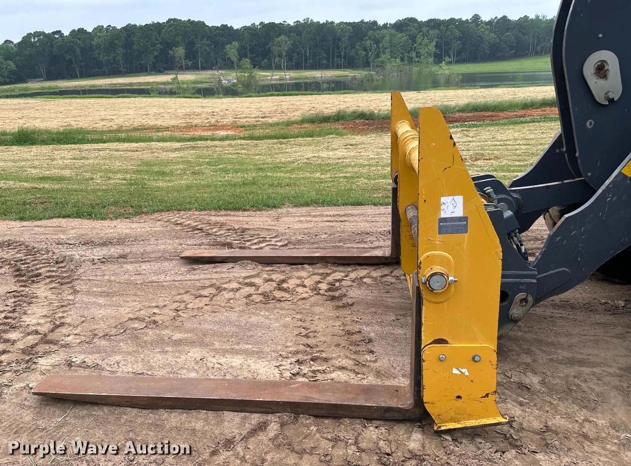 2022 John Deere 544 P-Tier wheel loader. Hours: 4,945 on meter, Serial: 1DW544PATNLZ14680. Engine John Deere, Cylinders: 6, Fuel type: Diesel. Transmission Powershift, 3F - 3R. Operators station Enclosed cab, AC, Heat, Bucket controls: Joystick. Features Auxiliary hydraulics: Front, Quick coupler: Hydraulic, Bucket John Deere, Width: 106", Cutting edge: Bolt-on, Forks John Deere 444-624, Length: 72". Tires Size: 20.5R25. Chireno, TX 75937