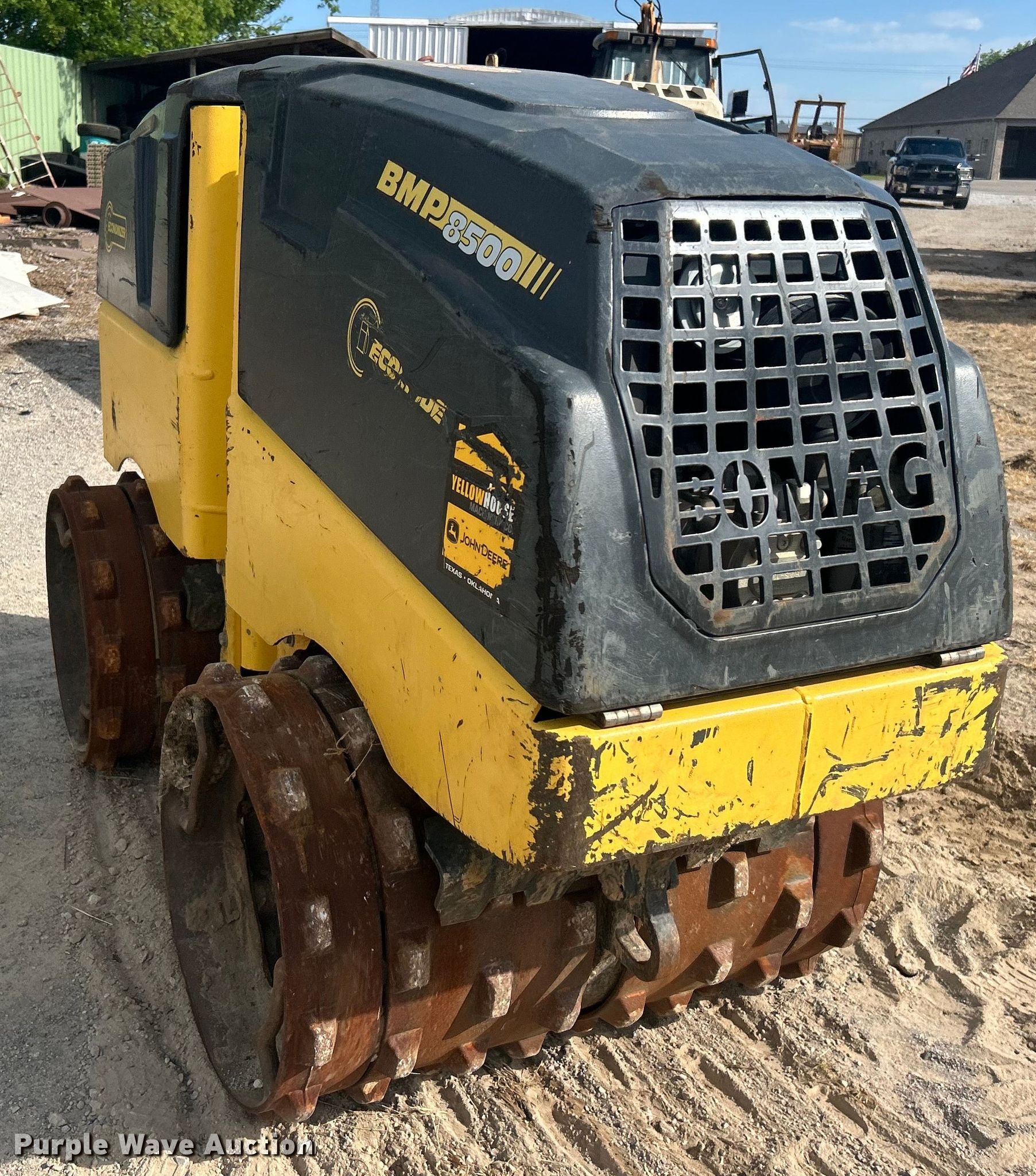 2019 Bomag BMP8500 trench compactor. Hours: Unknown, Serial: 101720132659. Engine Kubota D1005-EF06, Displacement: 1.0L, Cylinders: 3, Fuel type: Diesel, kW: 14.3. Transmission Hydrostatic, Two speed travel. Features Drum: Padfoot, Front drum Width: 34", Diameter: 20", Rear drum Width: 34", Diameter: 20", Drum scrapers: Front, Rear, Remote control. Notes Non-operational unit. TG Excavating. 26016 E Admiral Pl. Catoosa, OK 74015