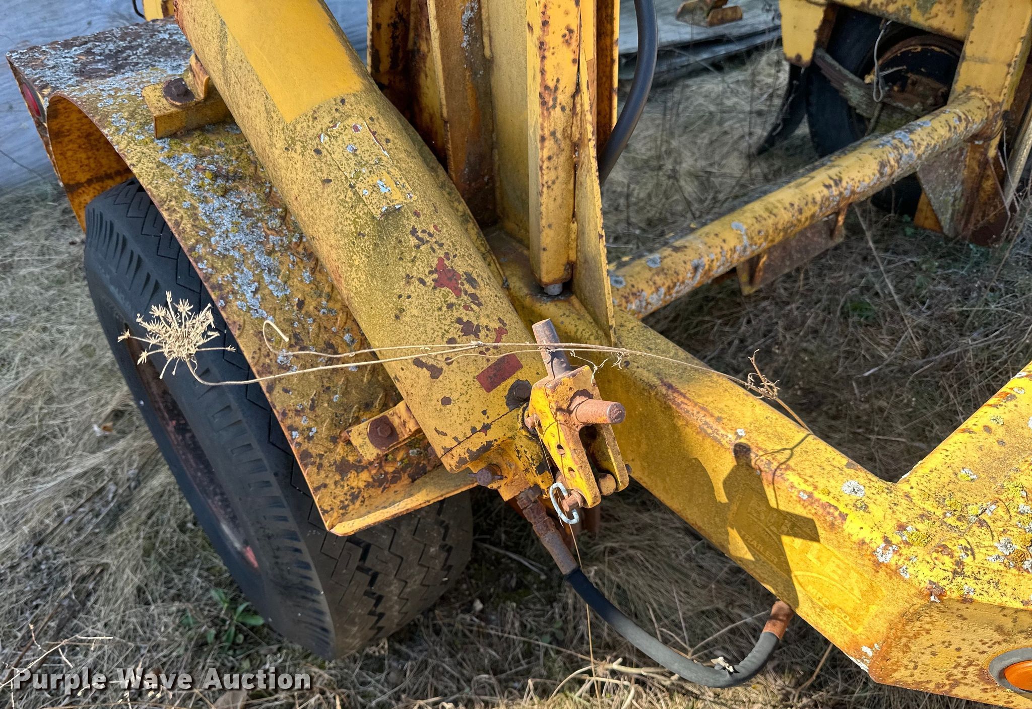 1984 Butler reel trailer. VIN: C10104E1002124. Dimensions Overall: 9' 6" L x 8' W. Features Reel: Single, Maximum reel width: 4' 4", Maximum reel diameter: 72", Hydraulic height adjustment. Chassis Hitch: Pintle, Landing gear: Single, Suspension: Spring, Brakes: Electric. Tires Size: 12-16.5LT. Notes Tires need replaced, weathered and cracked, Unknown operating condition. Transfer of ownership documentation will be a bill of sale. Brightspeed. Tomah, WI 54660
