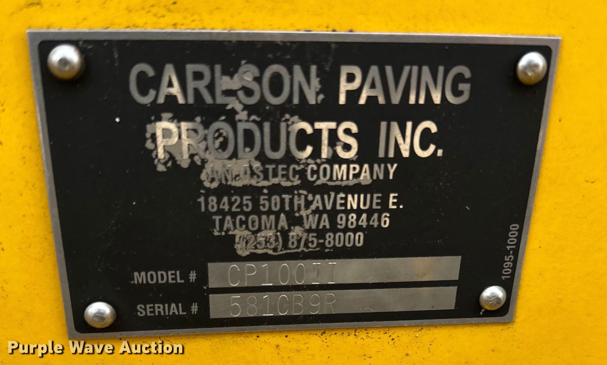 Purple Wave is selling a used Paver or Screed in Minnesota. This item is a 2019 Carlson CP100II paver with the following: Hours: 2,018 on meter, Serial: 581CB9R