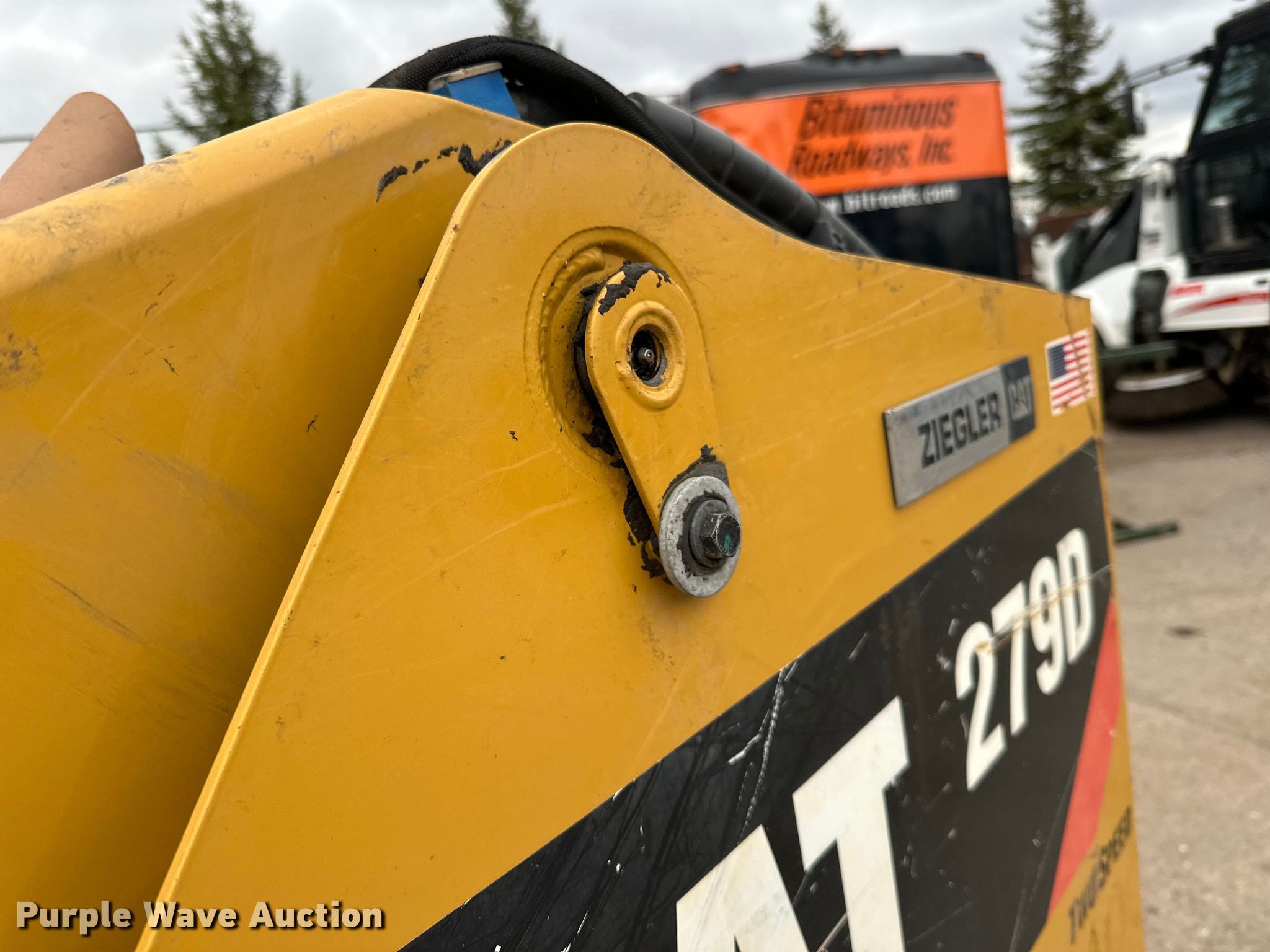 2016 Caterpillar 279D tracked skid steer loader. Hours: 6,370 on meter, Serial: GTL03489. Engine Caterpillar C3.3D, Cylinders: 4, Fuel type: Diesel, kW: 54.6. Transmission Hydrostatic, Two speed travel. Operators station Enclosed cab, AC, Heat, Bucket control: Hand, Pattern changer, Electronic Monitoring System panel, Backup camera. Features Auxiliary hydraulics, Auxiliary electrical outlet, Quick coupler: Hydraulic, Counter weights, Bucket Caterpillar, Width: 79", Cutting edge: Bolt-on. Tracks Width: 17.5". Bituminous Roadways Inc.. 1520 Commerce Drive. Mendota Heights, MN 55120