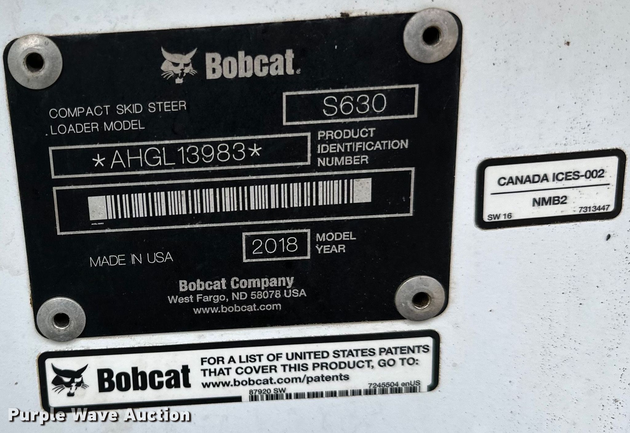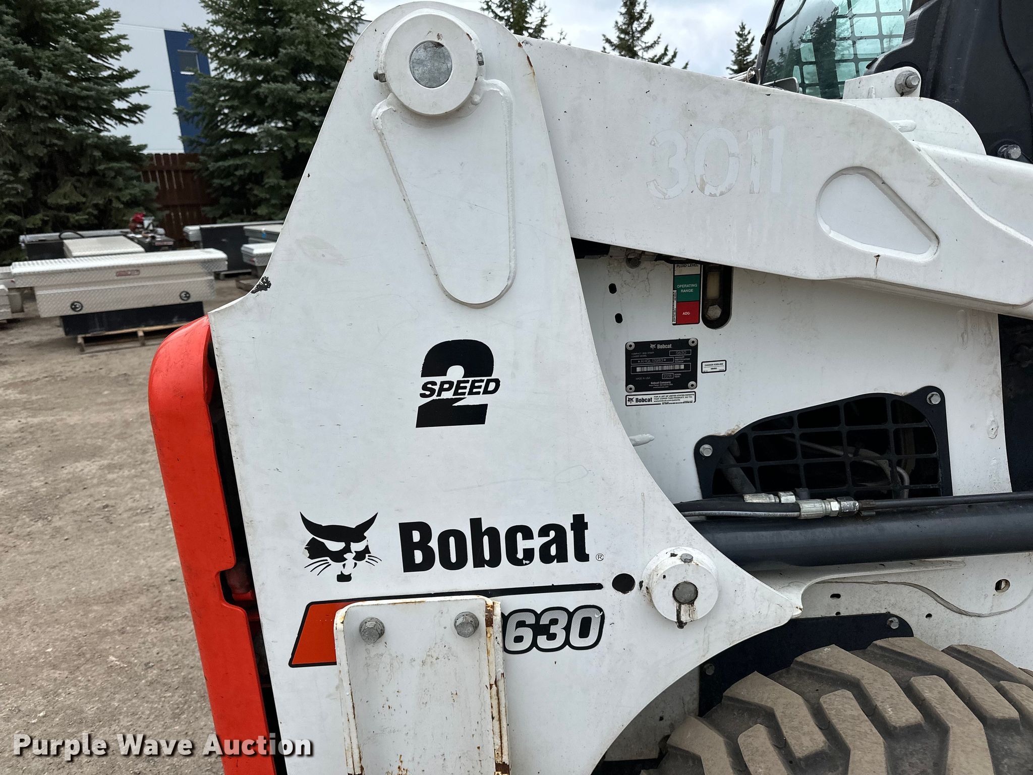 Purple Wave is selling a used Skid Steer Loader in Minnesota. This item is a 2018 Bobcat S630 skid steer loader with the following: Hours: 4,639 on meter, Serial: AHGL13983