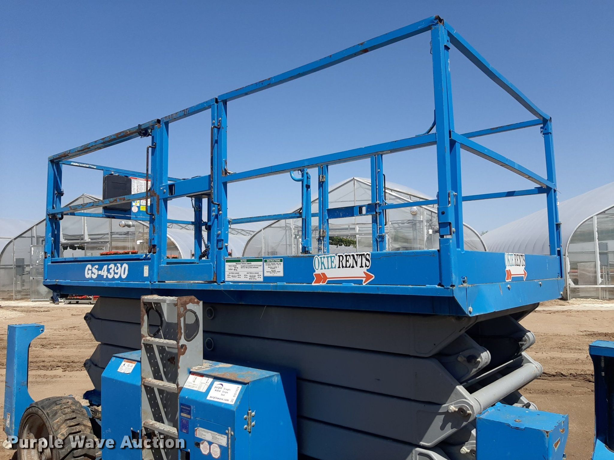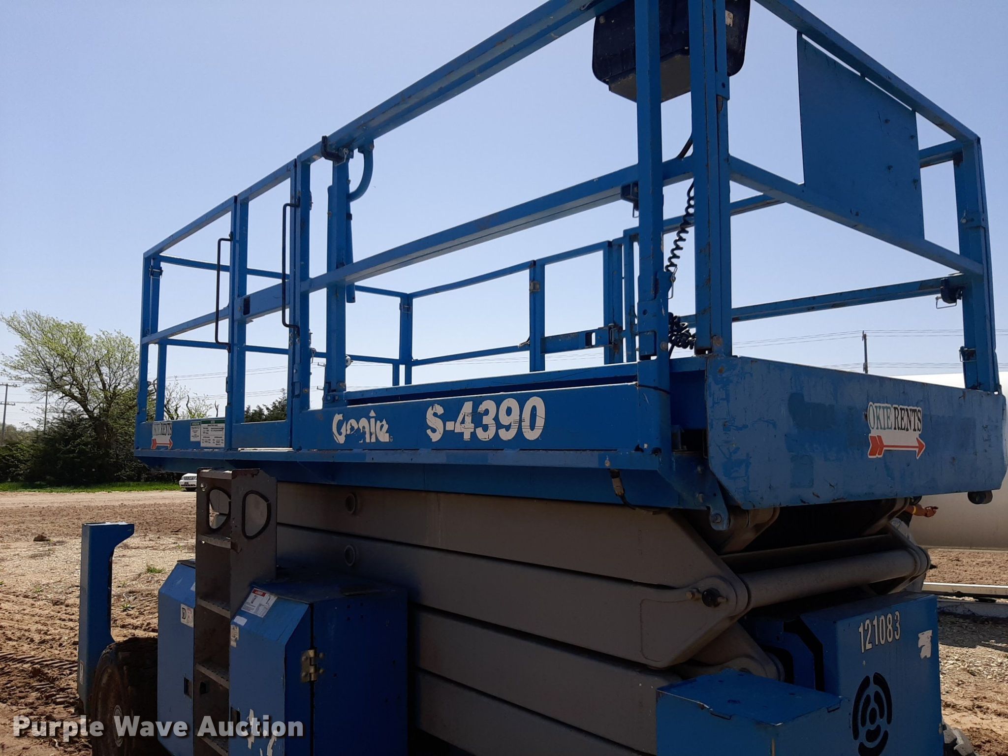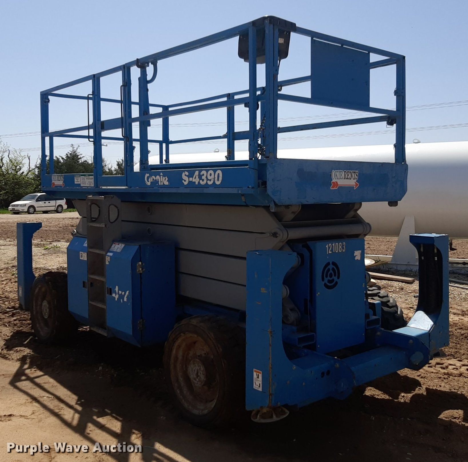 Purple Wave is selling a used Scissor or Vertical Lift in Kansas. This item is a 2013 Genie GS-4390 RT scissor lift with the following: Hours: 3,055 on meter, Serial: GS9013-49062