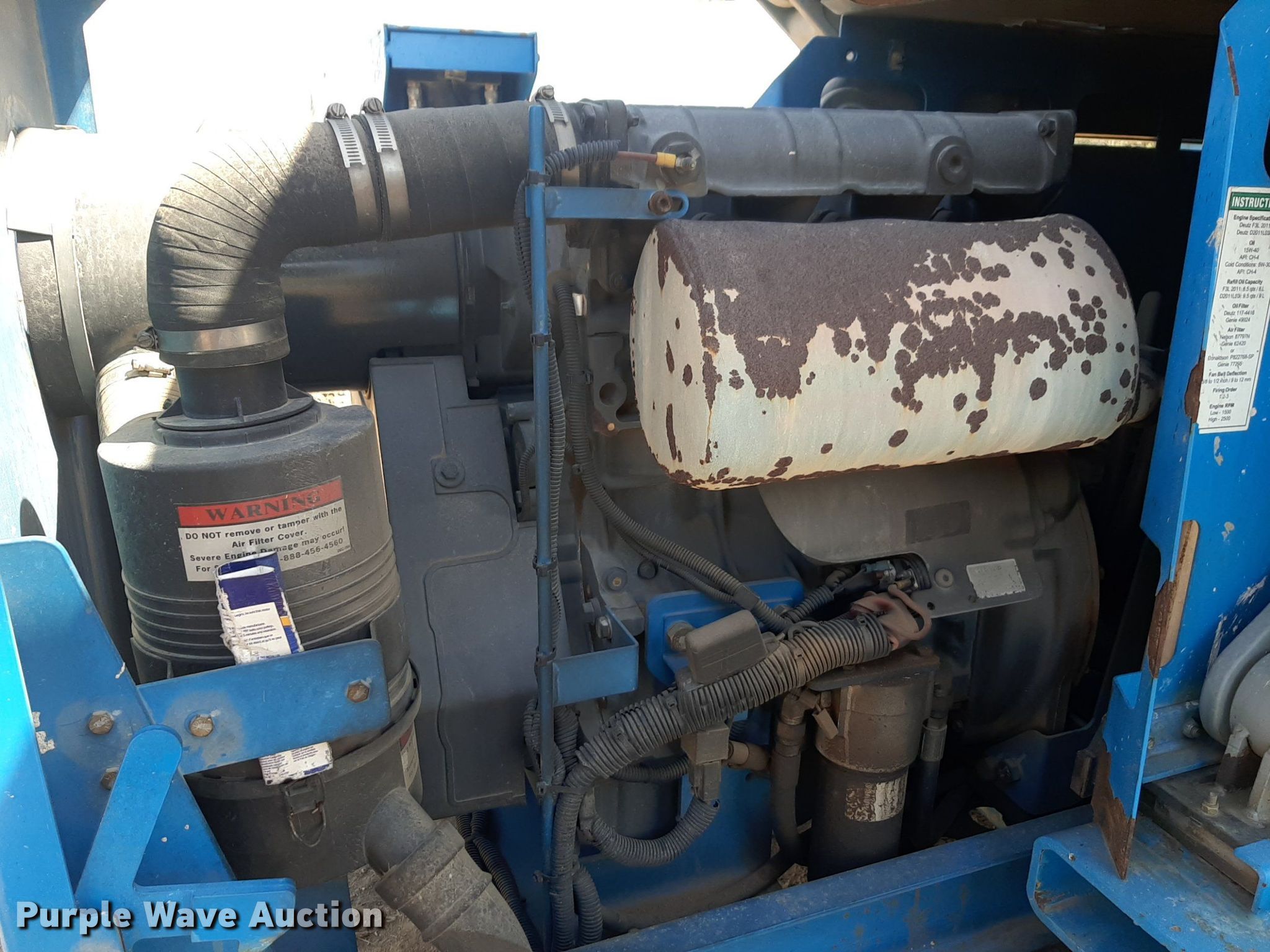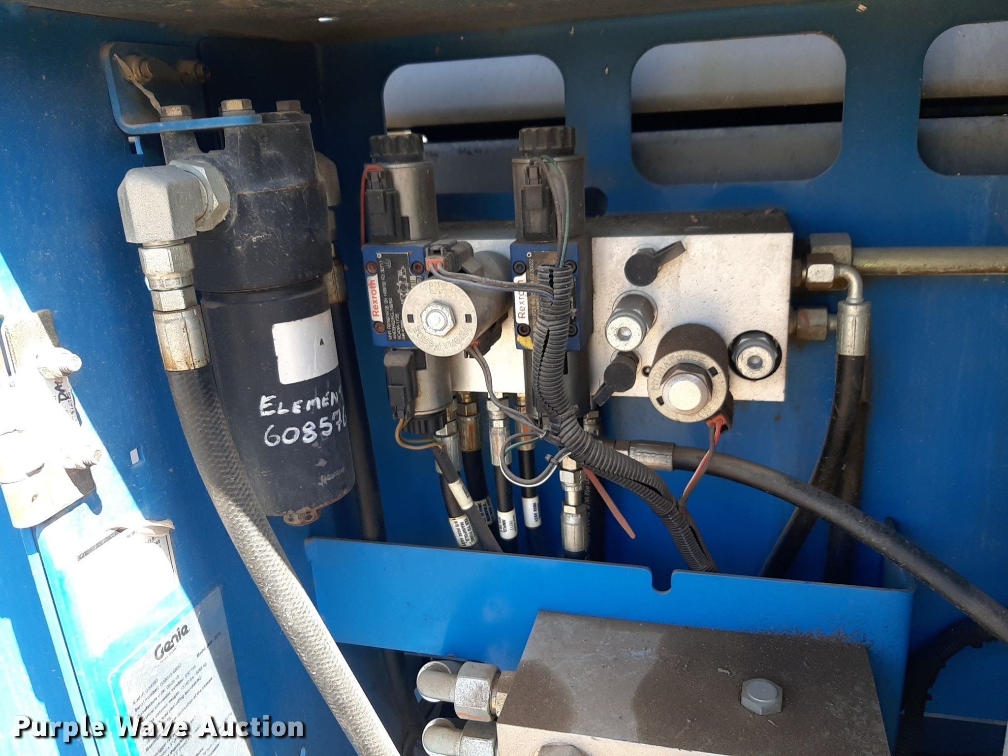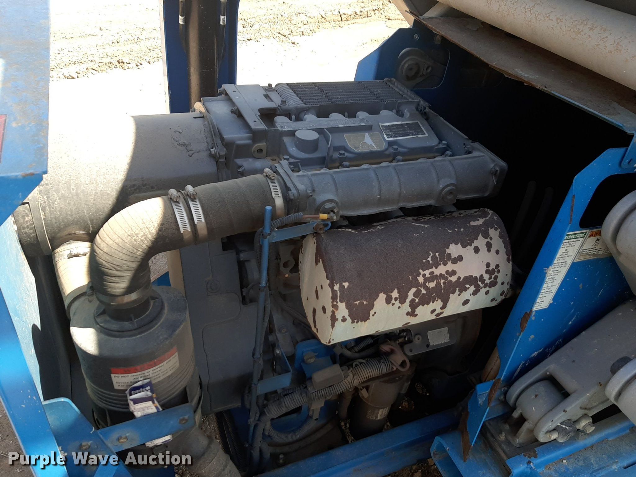 2013 Genie GS-4390 RT scissor lift. Hours: 3,055 on meter, Serial: GS9013-49062. Engine Deutz D2011L031, Serial: 11463617, Cylinders: 3, Fuel type: Diesel, HP: 49. Features Rough terrain, Maximum lift capacity: 1,500 lbs, Maximum reach length: 49', Maximum lift height: 43', Hydraulic outriggers, Hydraulic leveling, Platform: 152" L x 72" W, AC power outlet, Controls: Platform, Ground, Platform extensions: Manual. Tires Tire size: 305-546, Foam filled. Johnson's Garden Center. Sedgwick, KS 67135