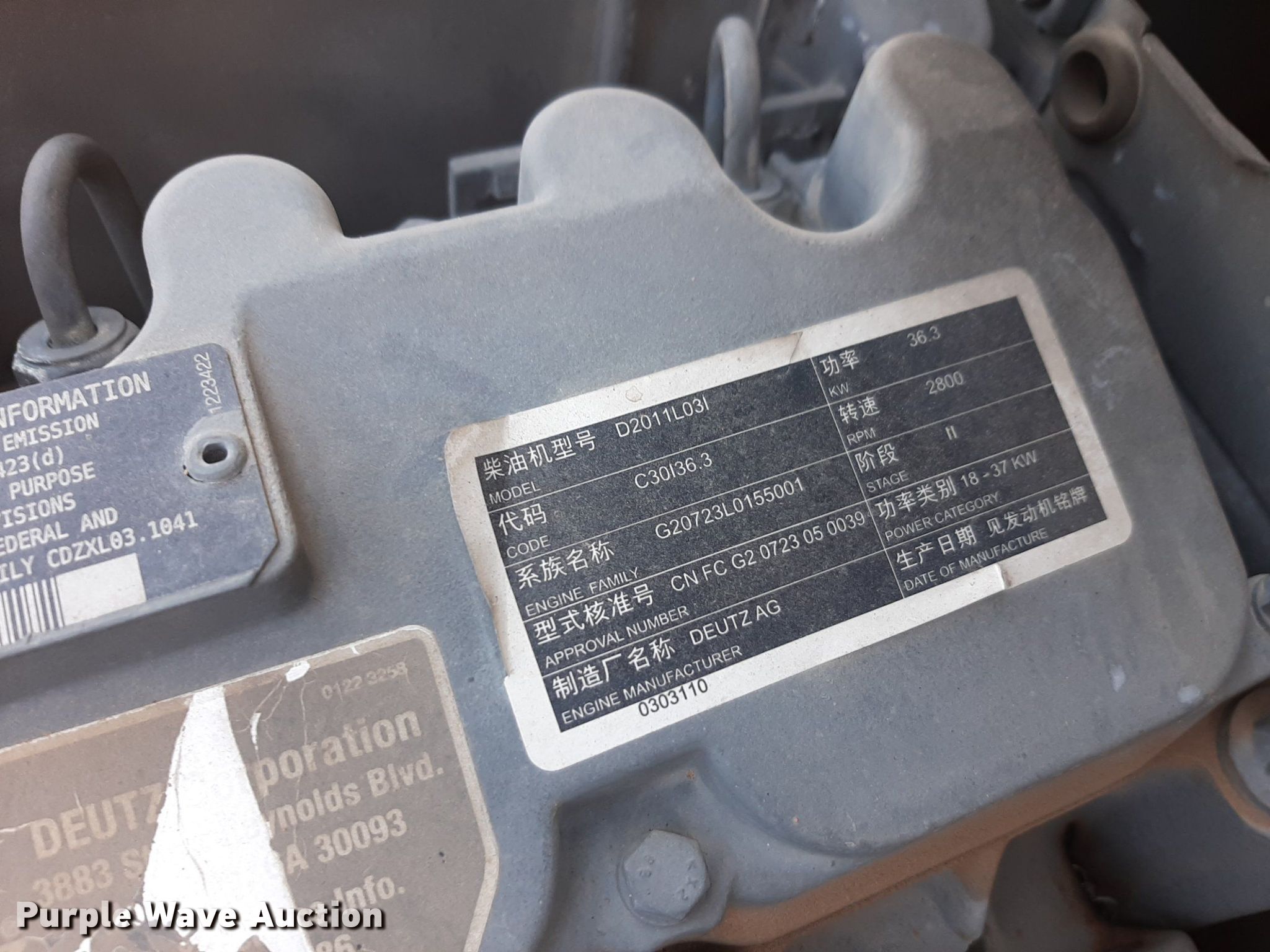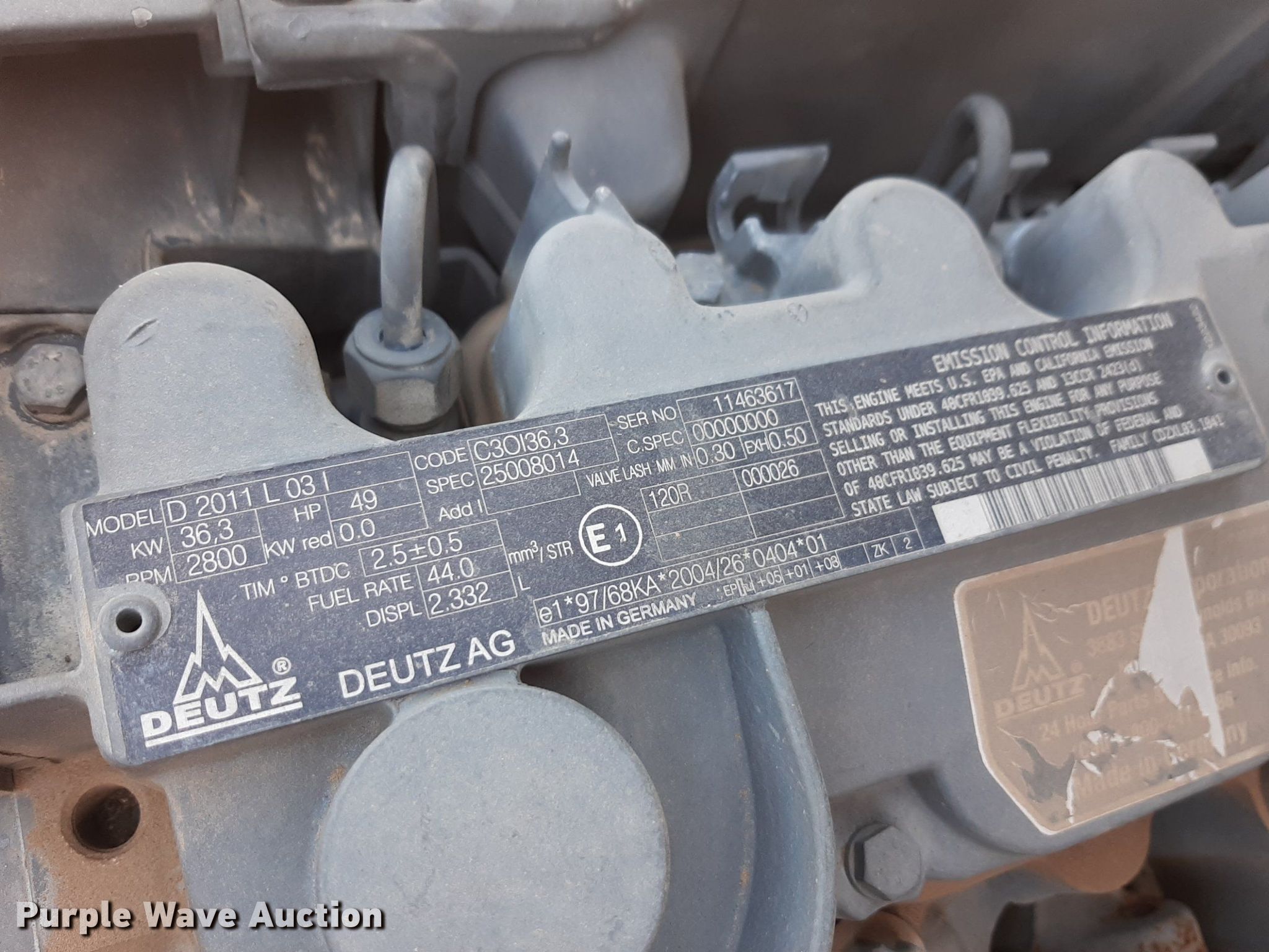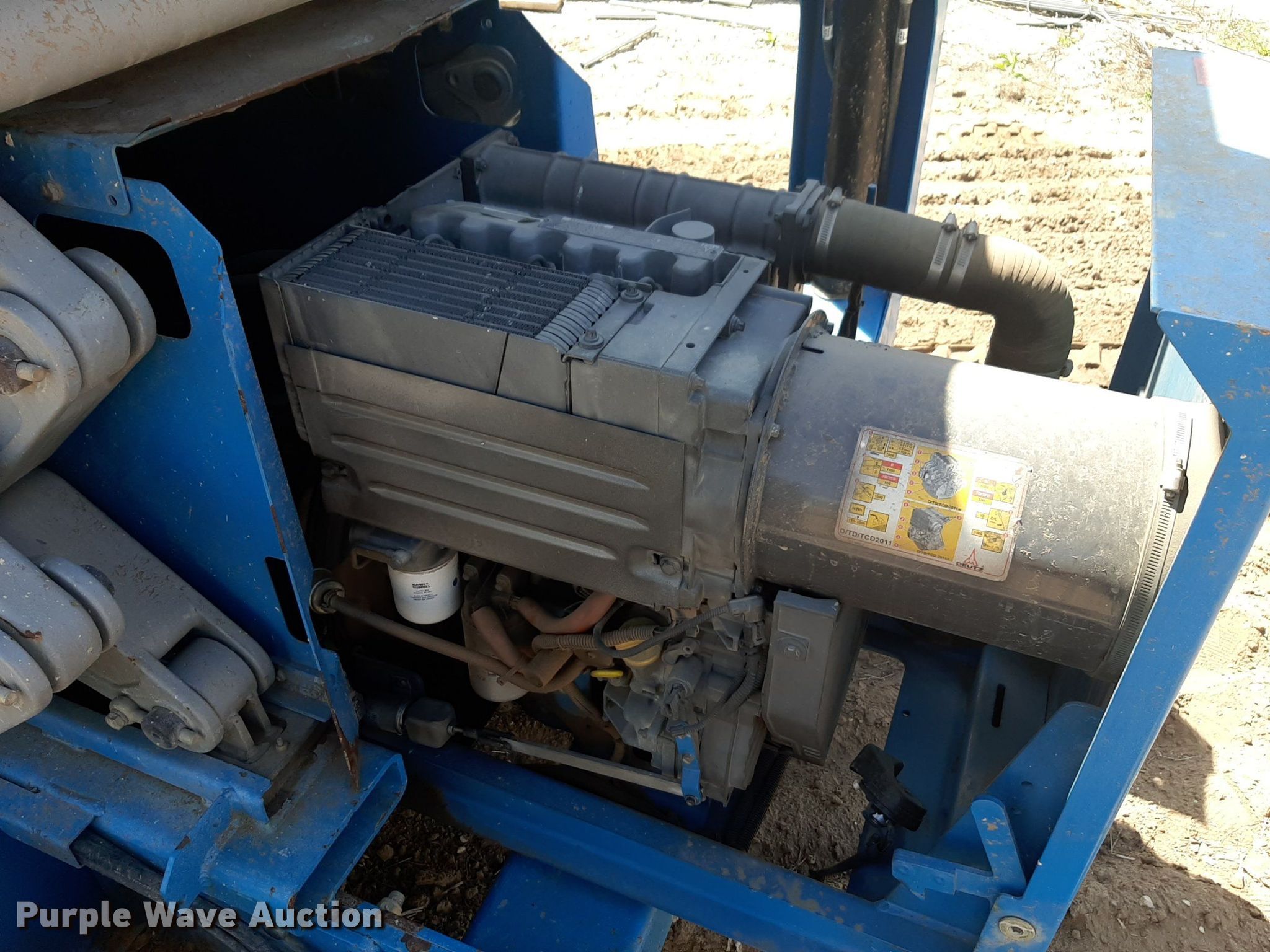 2013 Genie GS-4390 RT scissor lift. Hours: 3,055 on meter, Serial: GS9013-49062. Engine Deutz D2011L031, Serial: 11463617, Cylinders: 3, Fuel type: Diesel, HP: 49. Features Rough terrain, Maximum lift capacity: 1,500 lbs, Maximum reach length: 49', Maximum lift height: 43', Hydraulic outriggers, Hydraulic leveling, Platform: 152" L x 72" W, AC power outlet, Controls: Platform, Ground, Platform extensions: Manual. Tires Tire size: 305-546, Foam filled. Johnson's Garden Center. Sedgwick, KS 67135