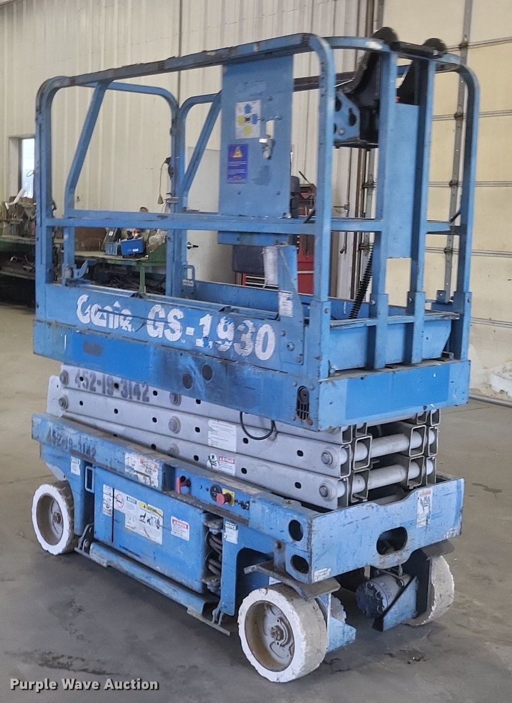 Purple Wave is selling a used Scissor or Vertical Lift in Kentucky. This item is a Genie GS1930 scissor lift with the following: Hours: 667 on meter