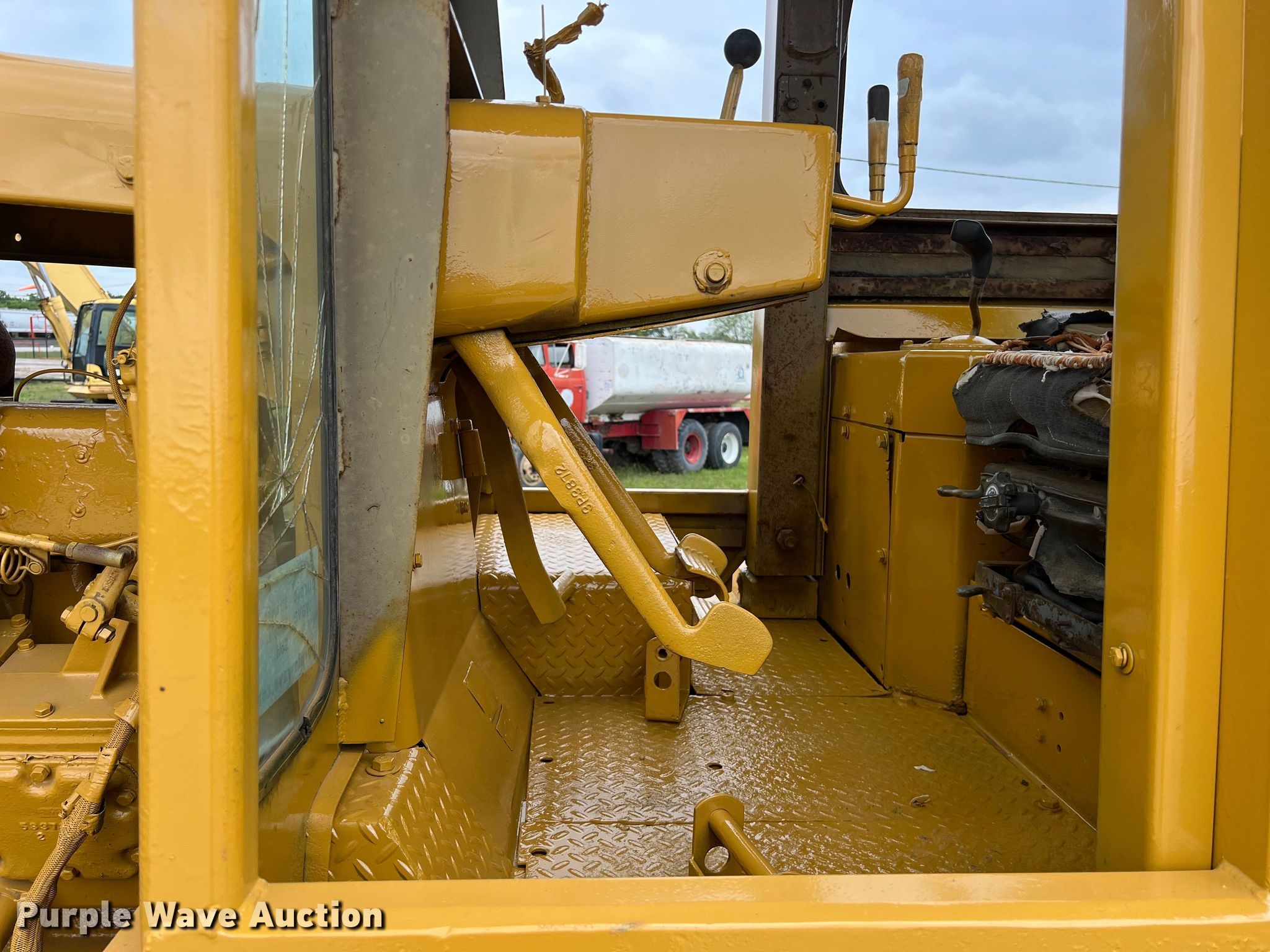 1978 Caterpillar D9H dozer. Serial: 90V6368. Engine Caterpillar, Cylinders: 6, Fuel type: Diesel. Transmission Powershift, 3F - 3R. Operators station Enclosed cab, Steering: Clutch brake. Features Dozer blade Type: Semi-U, Single-tilt, Width: 14'. Tracks Width: 24", Grouser pads: Single, Bottom rollers: 14. Notes Doors and windows removed but included, Glass cracked. Keene Heavy Equipment. Houston, TX 77049