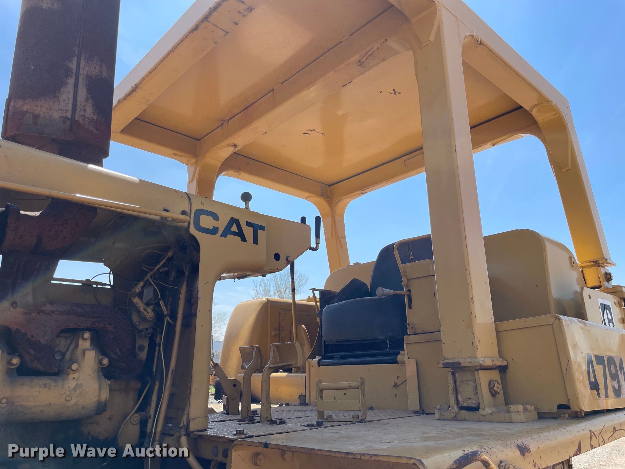 1972 Caterpillar D8H dozer. Hours: 308 on meter, Serial: 46A28323, Unit #: 4791. Engine Caterpillar, Cylinders: 6, Fuel type: Diesel. Transmission Powershift, 3F - 3R. Operators station Canopy, Steering: Clutch brake. Features Rear drawbar, Dozer blade Type: Semi-U, Single-tilt, Width: 12' 11" W. Tracks Width: 24", Grouser pads: Single, Bottom rollers: 7, Track guards. Notes Dead battery. Builders Asphalt, LLC - Open Inspection May 16. Hillside, IL 60162