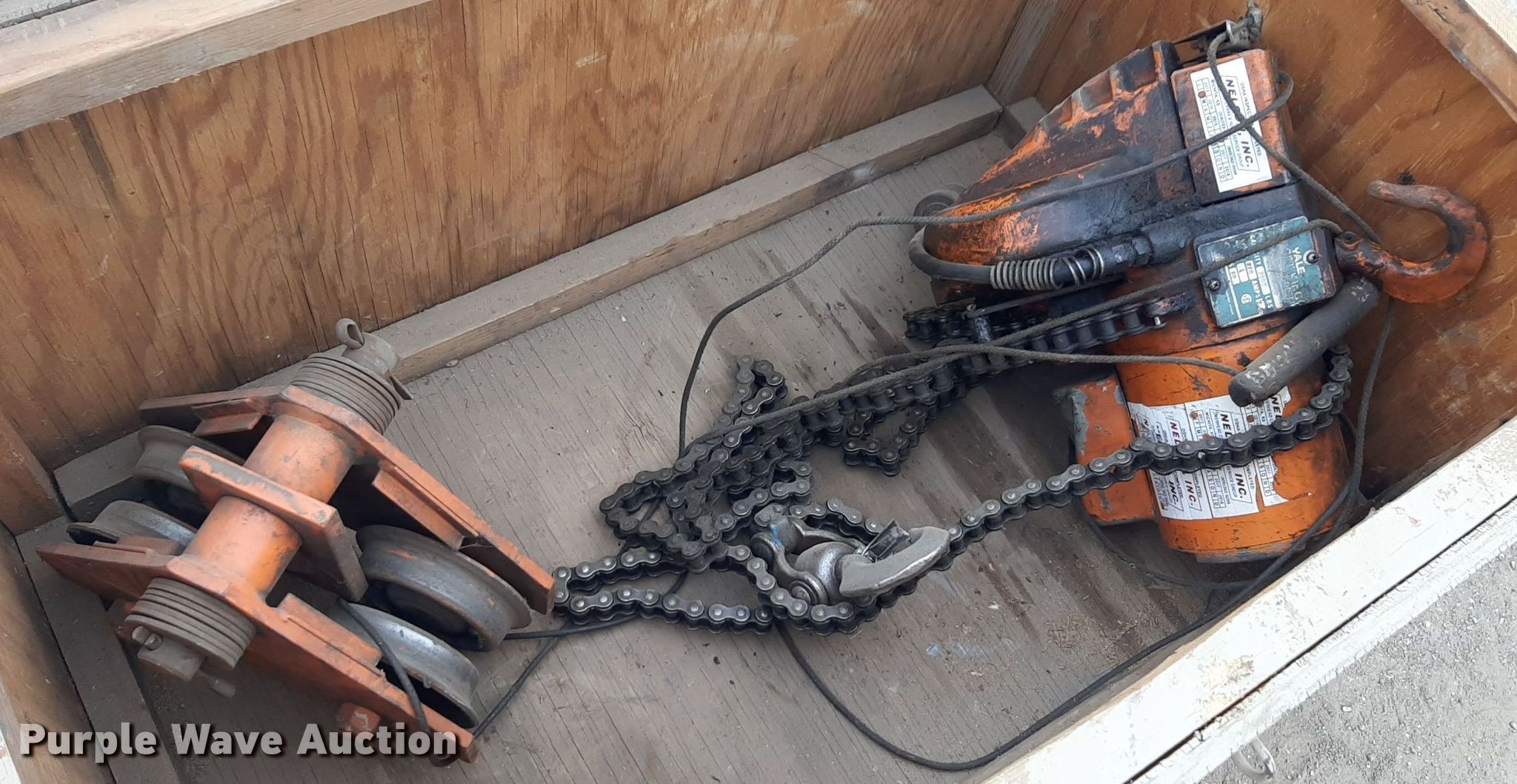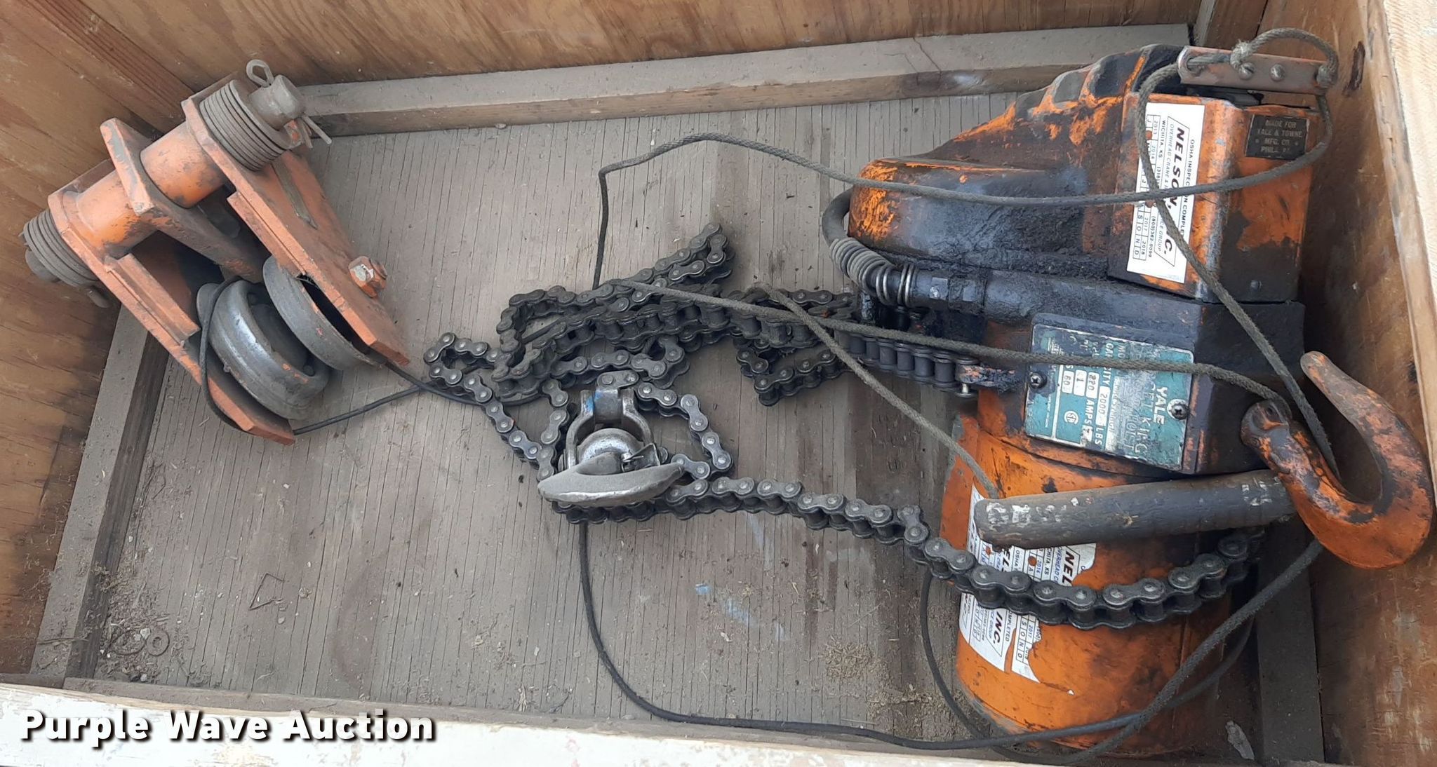 Purple Wave is selling a used Tools in Kansas. This item is a Yale MR451MBGN hoist with the following: Capacity: 1 ton, AMPs: 220, Phase: Single