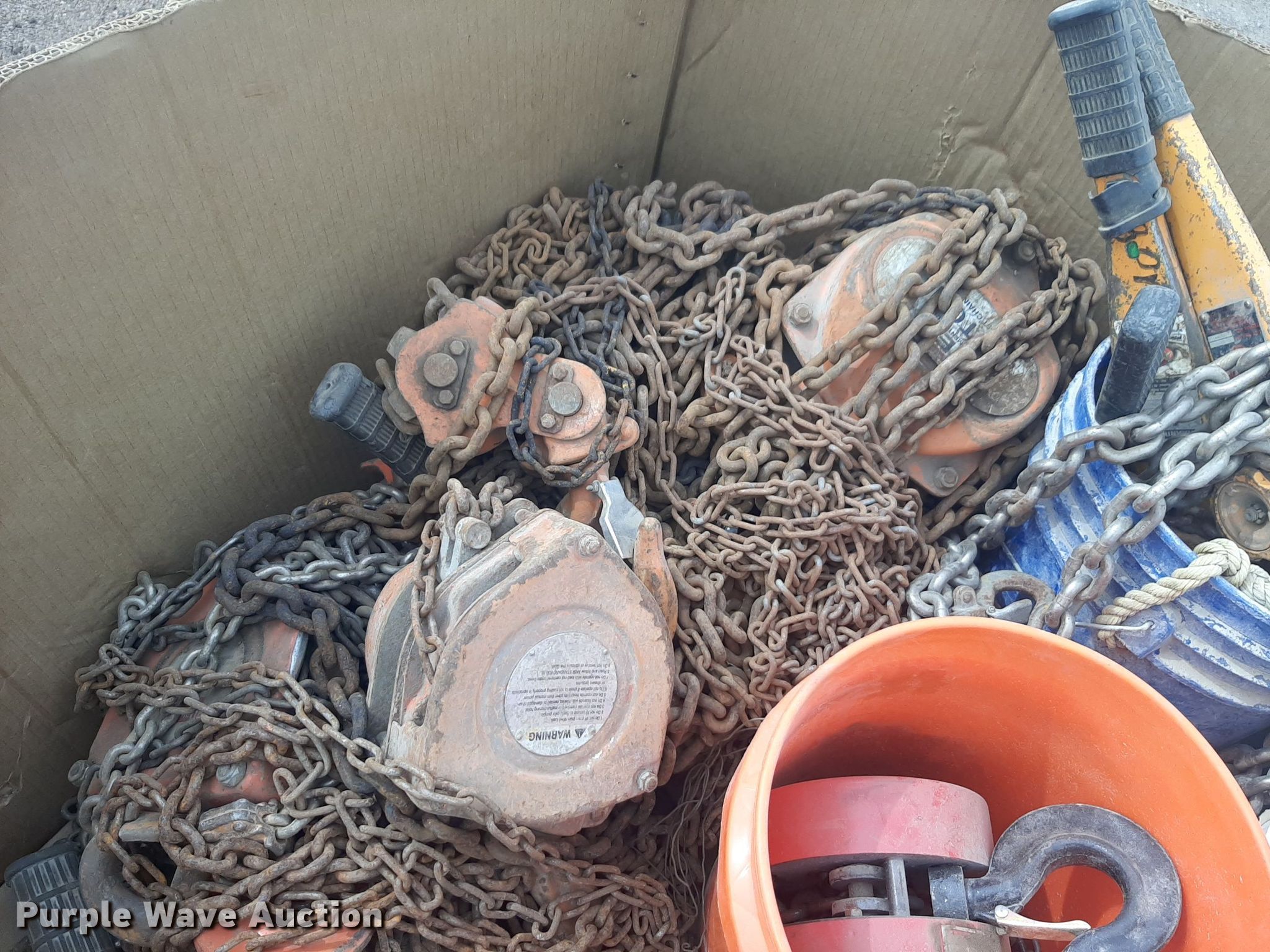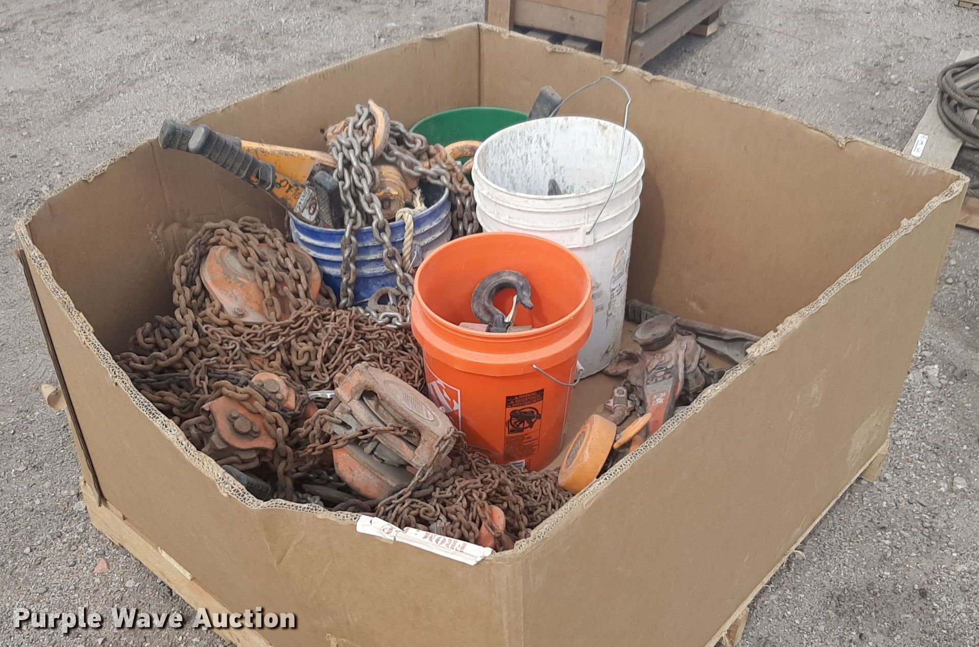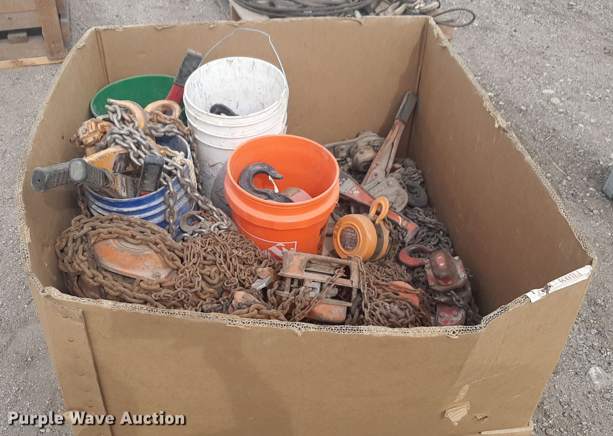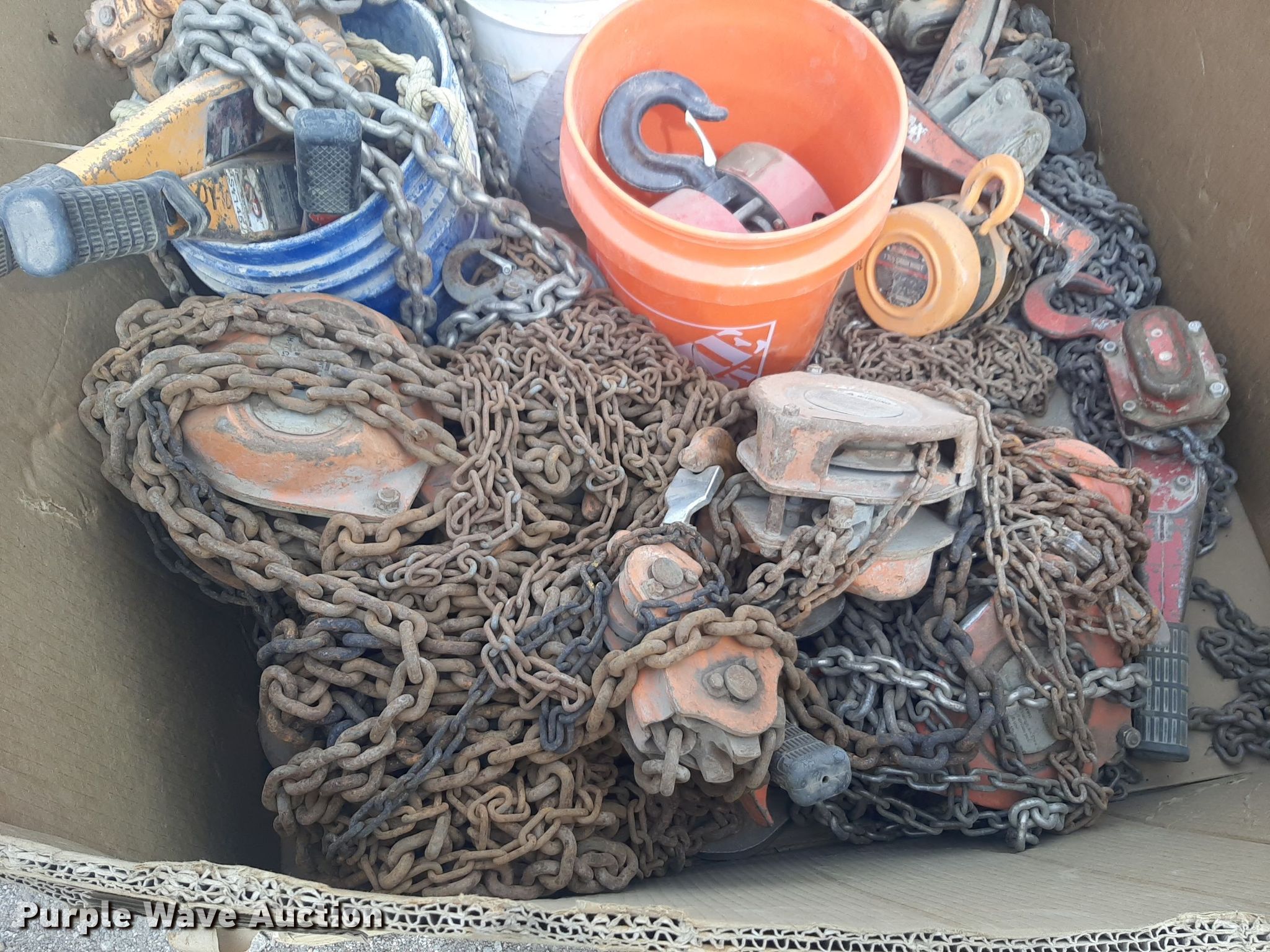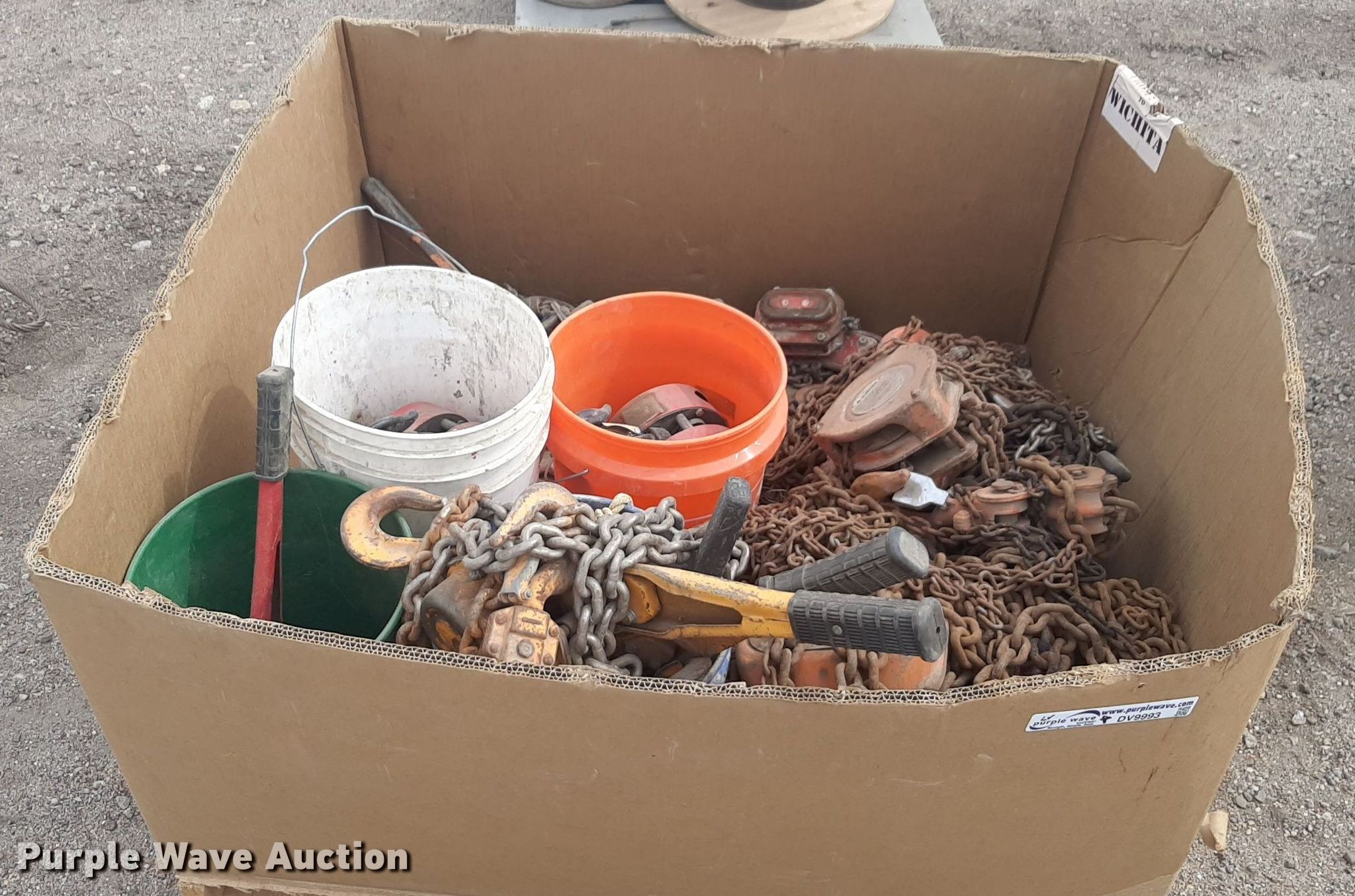 Purple Wave is selling a used Tools in Kansas. This item is a Tools with the following: Approx. 8 hoists, Chains