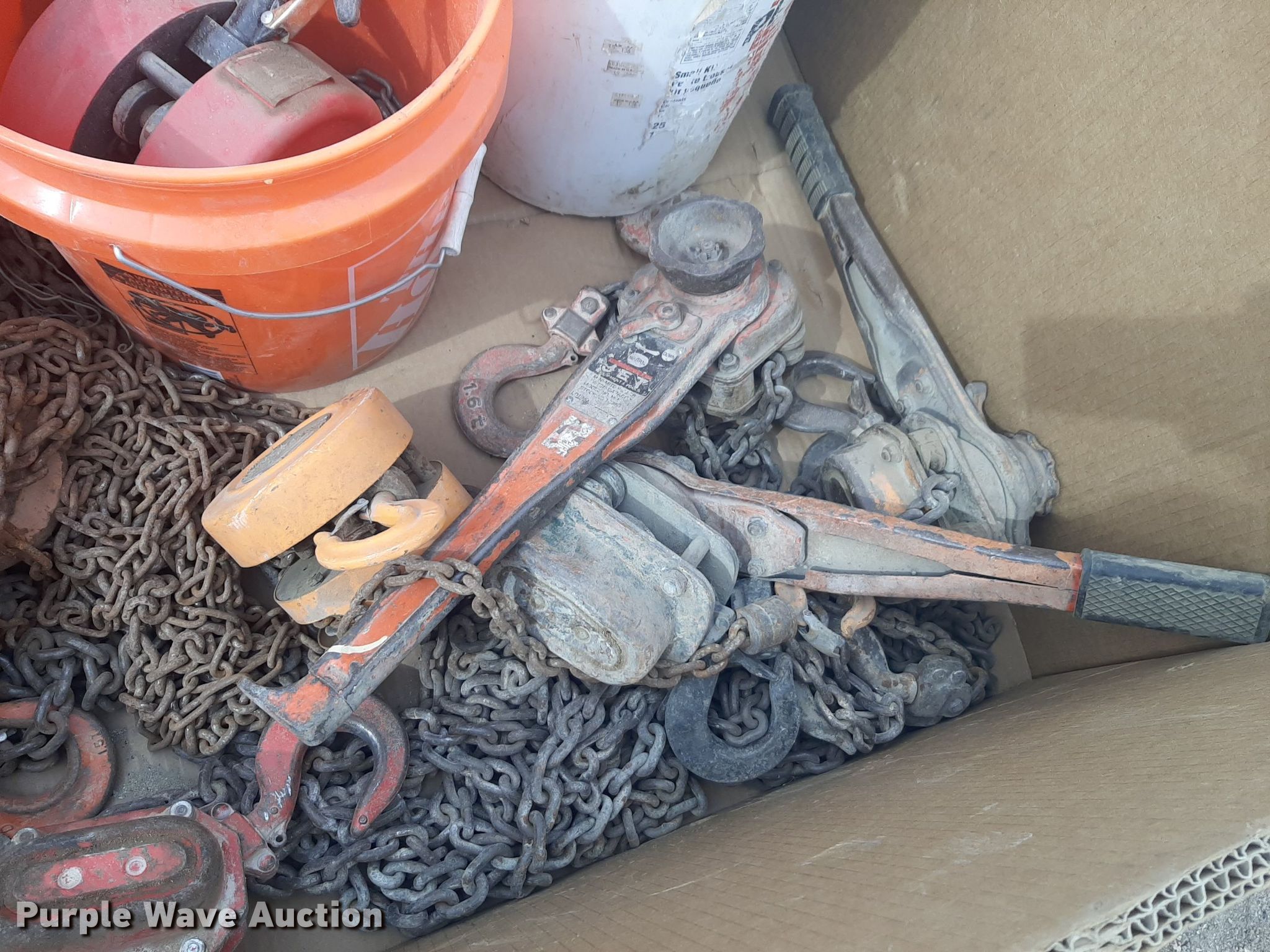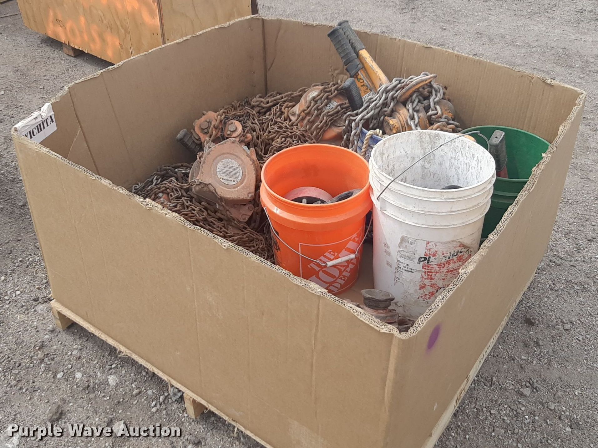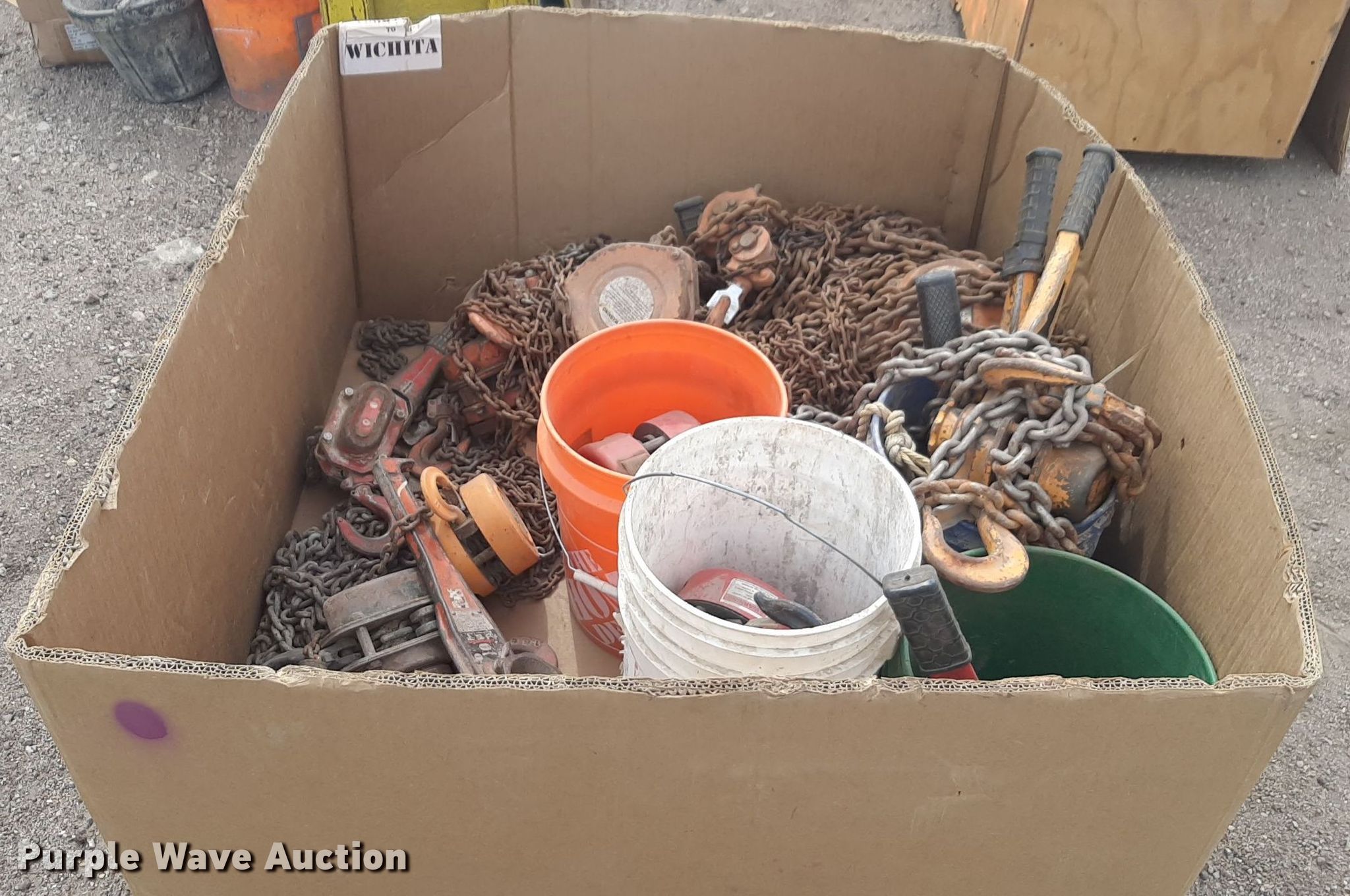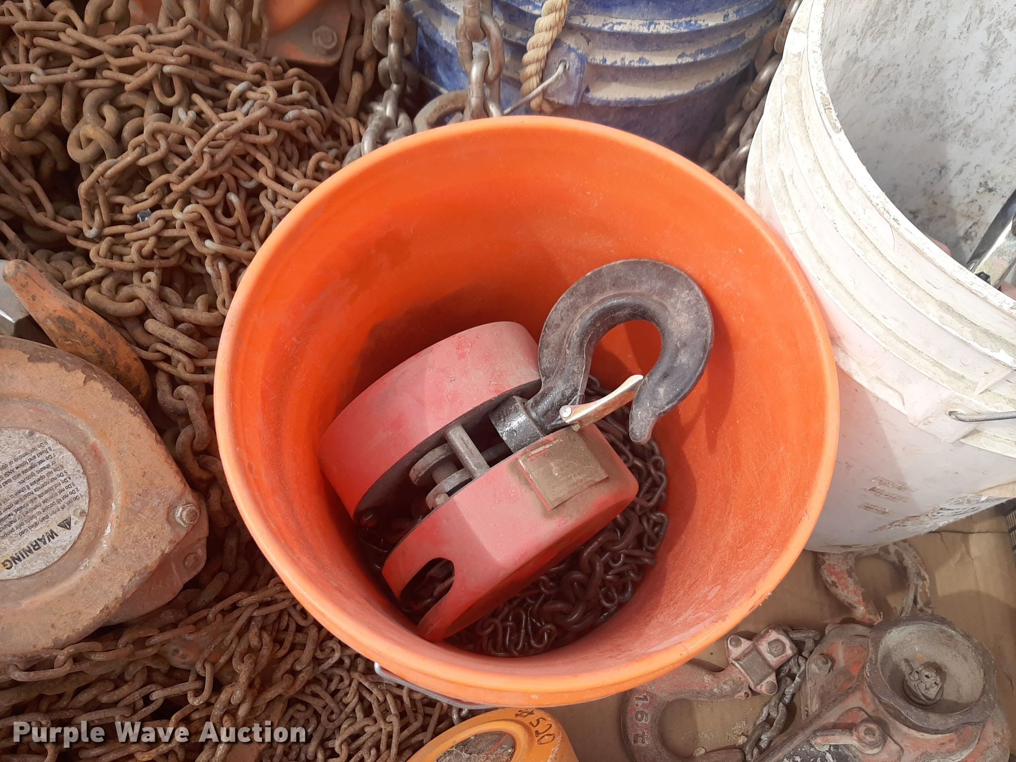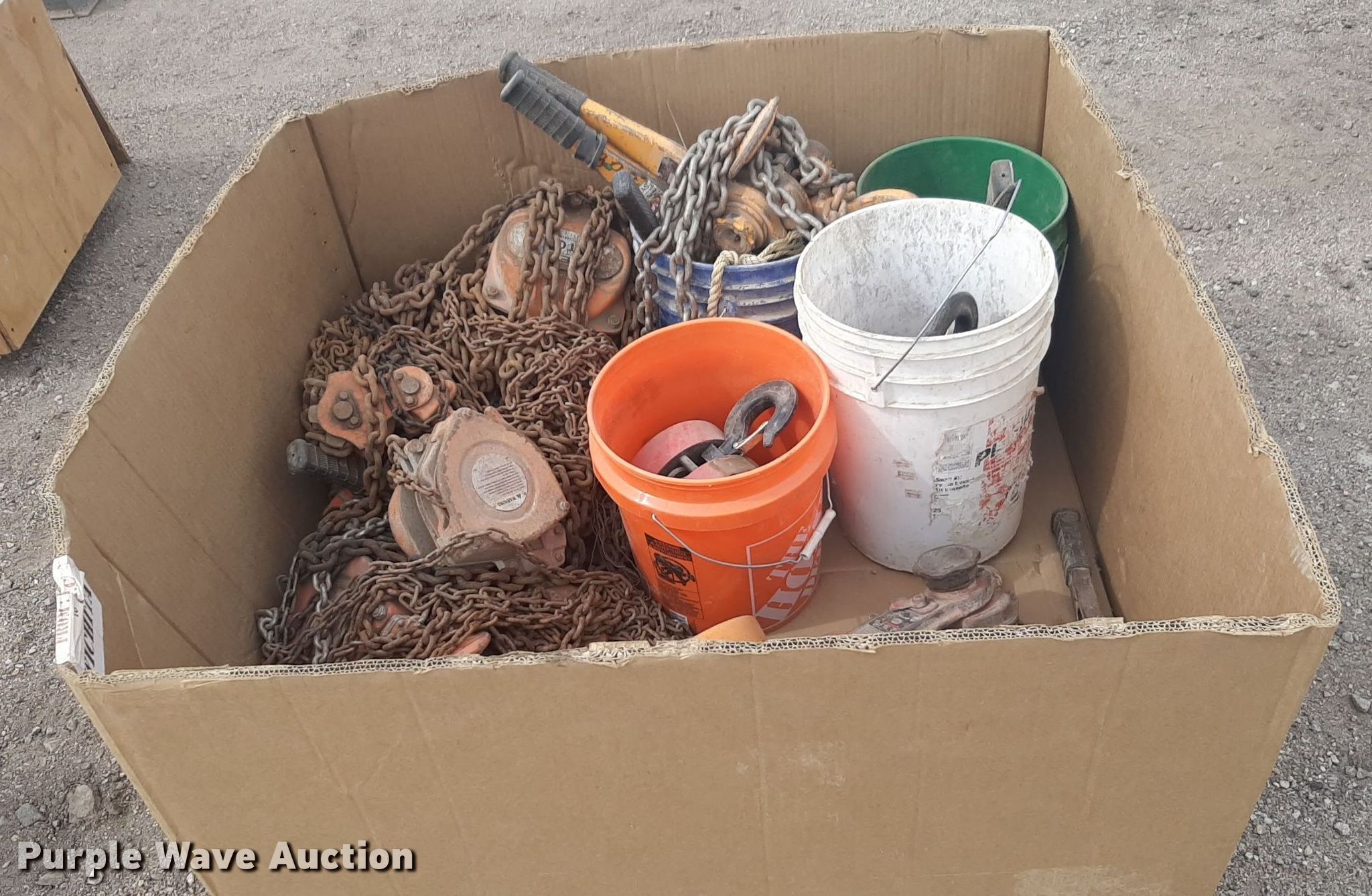 Purple Wave is selling a used Tools in Kansas. This item is a Tools with the following: Approx. 8 hoists, Chains