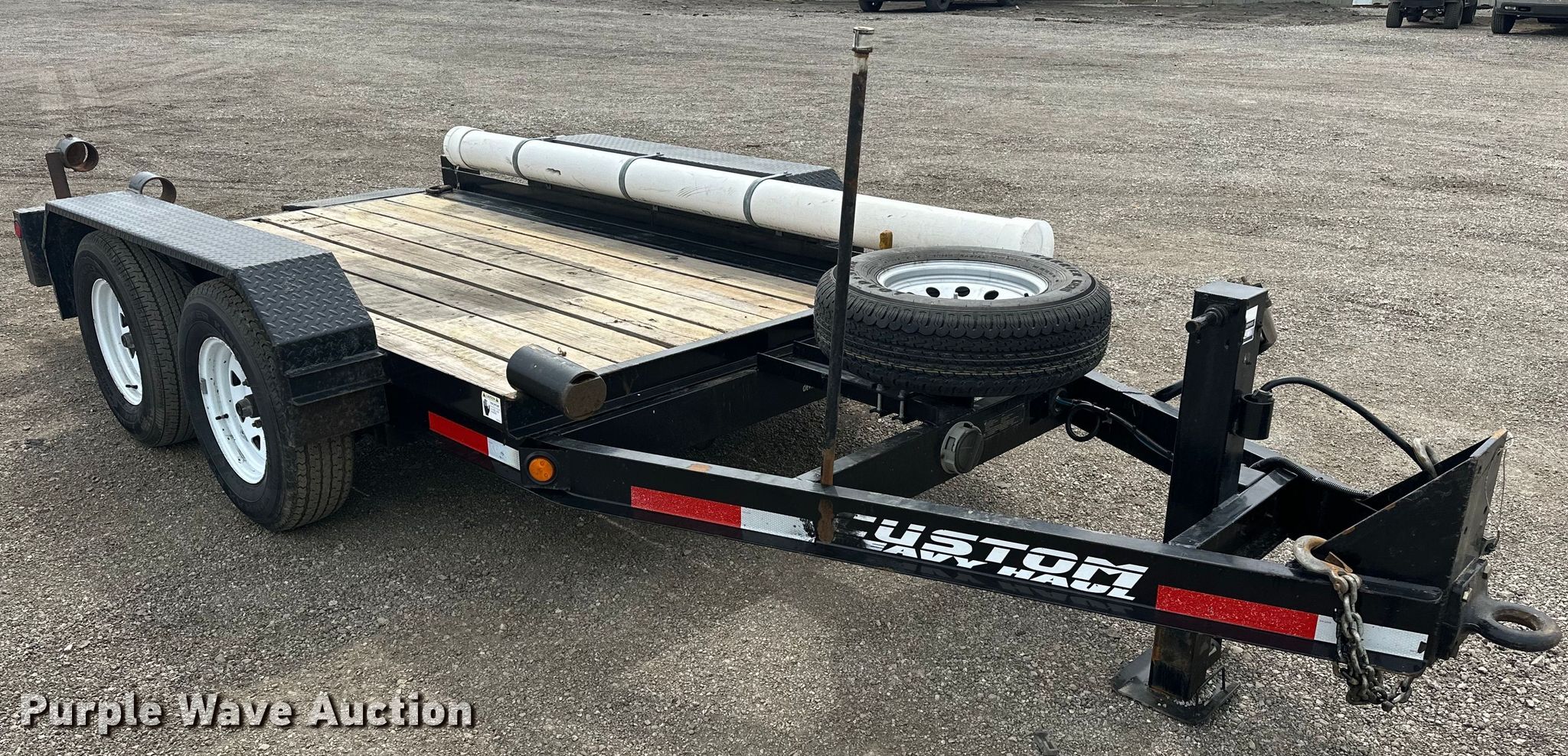 2019 Lucon Custom Heavy Haul tilt deck utility trailer. VIN: 7JEPU1024KG000705. Dimensions Overall: 16' L x 86" W, Deck: 10' L x 65" W. Features Deck type: Wood. Chassis Hitch: Pintle, Landing gear: Single, Brakes: Electric, Axles: Tandem, GVWR: 8,400 lbs, GAWR: 3,500 lbs. Tires Steel wheels, Size: ST225/75R15. Transfer of ownership documentation will be a bill of sale. 15107 North 137th East Avenue. Collinsville, OK 74021