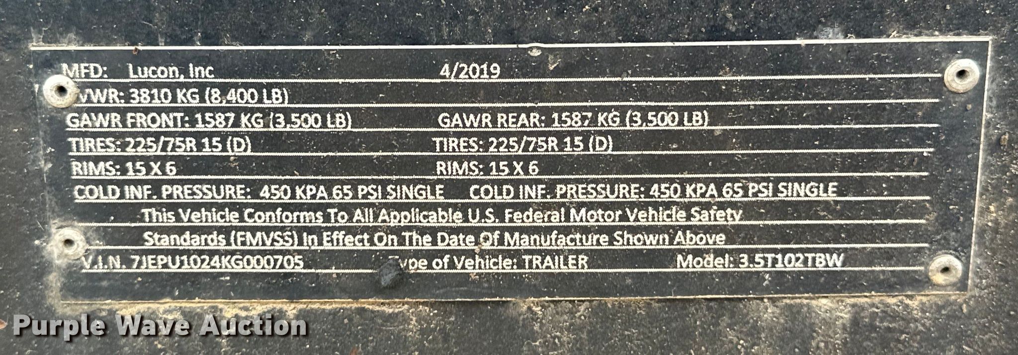 Purple Wave is selling a used Car or Utility Trailer in Oklahoma. This item is a 2019 Lucon Custom Heavy Haul tilt deck utility trailer with the following: VIN: 7JEPU1024KG000705