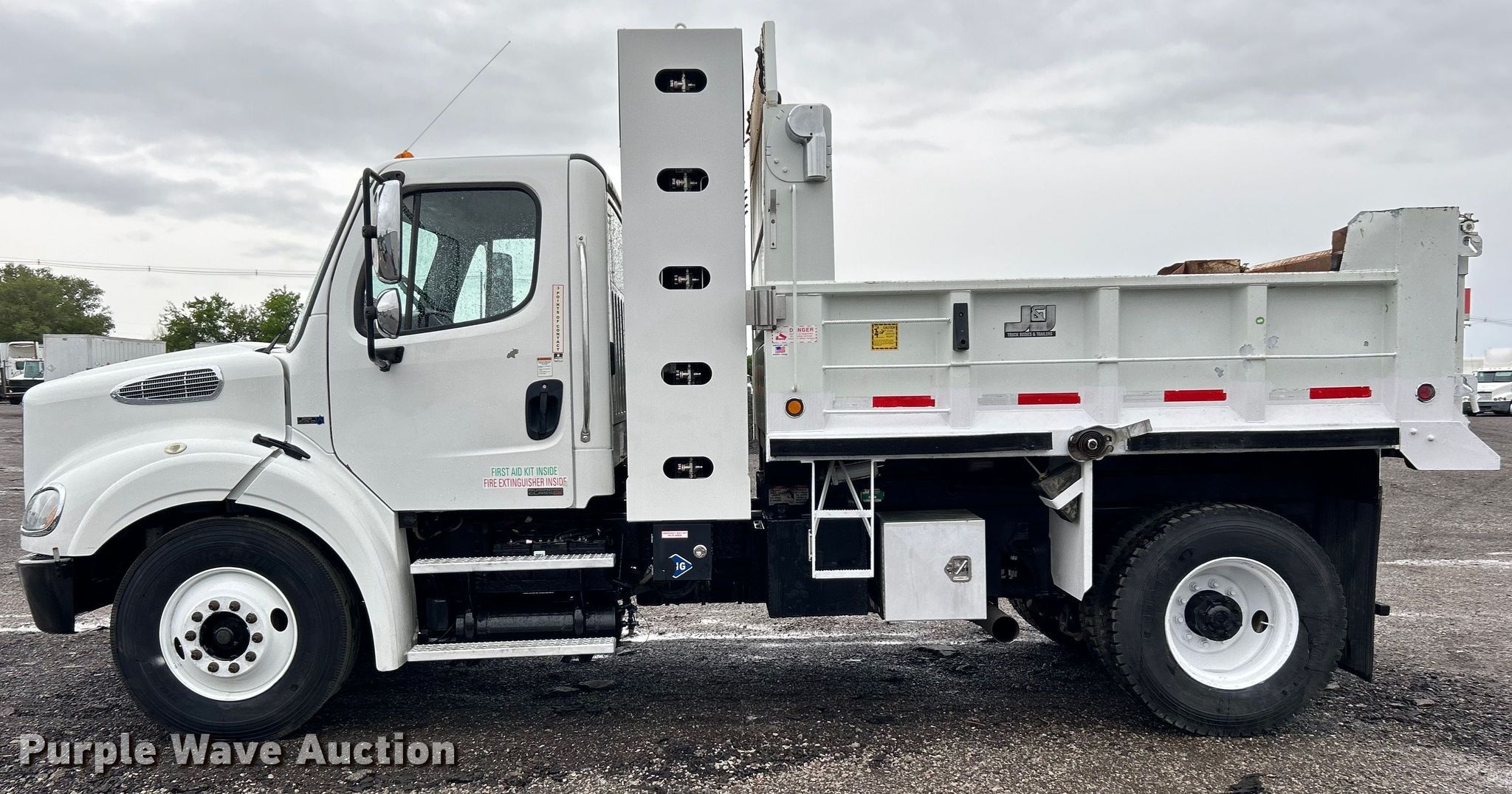 Purple Wave is selling a used Construction Dump Truck in Oklahoma. This item is a 2015 Freightliner Business Class M2 dump truck with the following: Miles: 51,138 on odometer, Hours: 5,980 on meter, VIN: 1FVAHFDX1FHGR8353