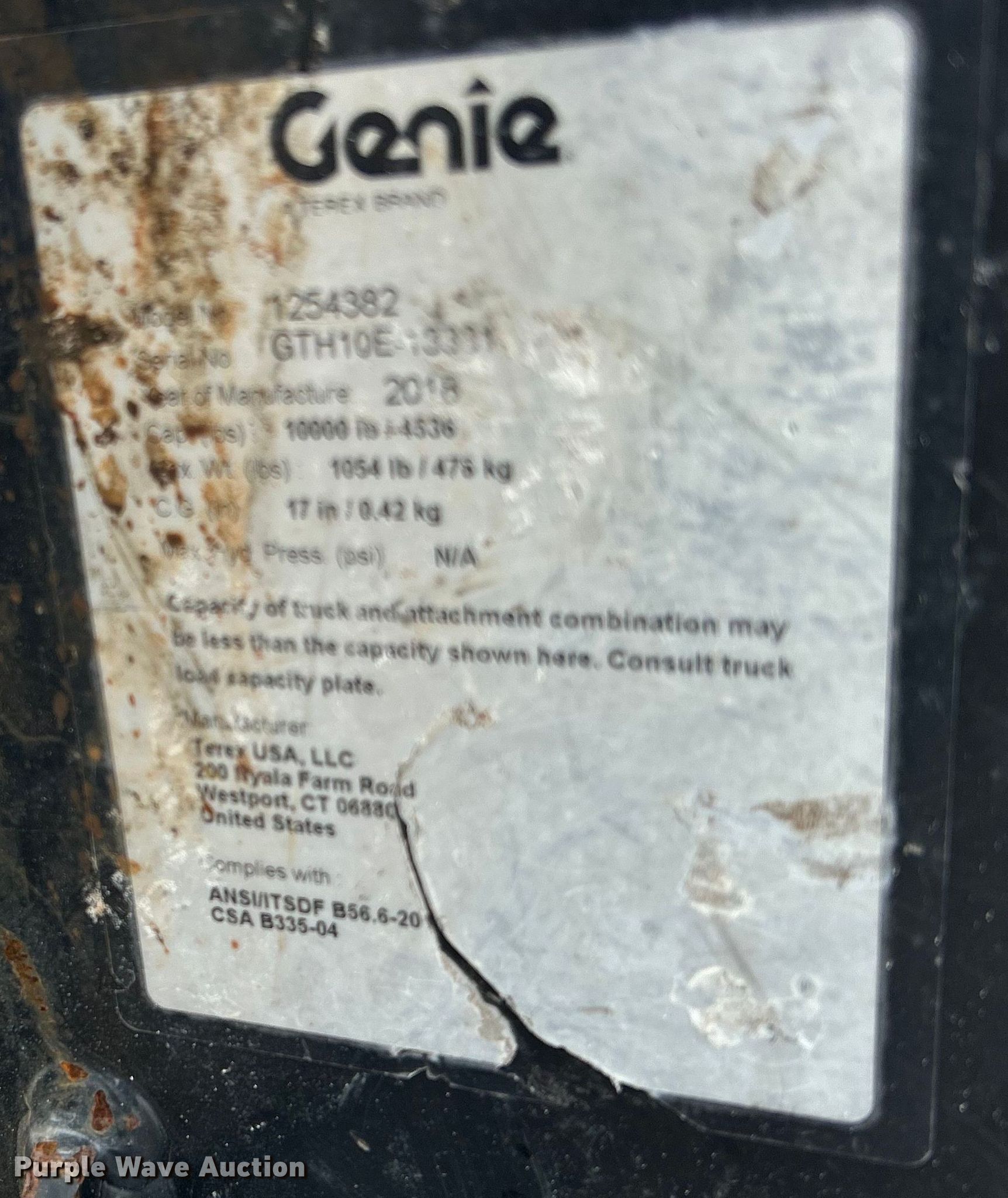 Purple Wave is selling a used Telehandler in Oklahoma. This item is a 2018 Genie GTH-1056 telehandler with the following: Hours: 1,137 on meter, Serial: GTH10E-13331