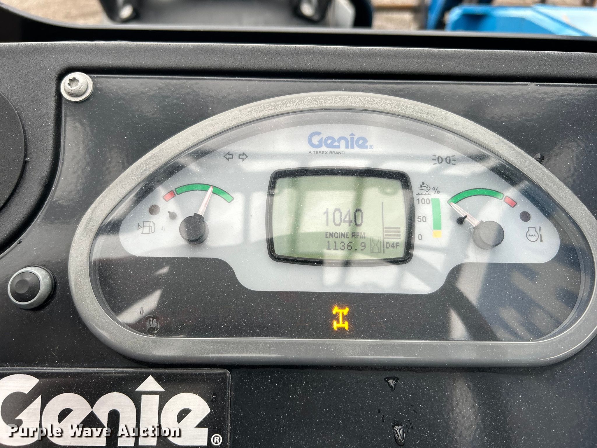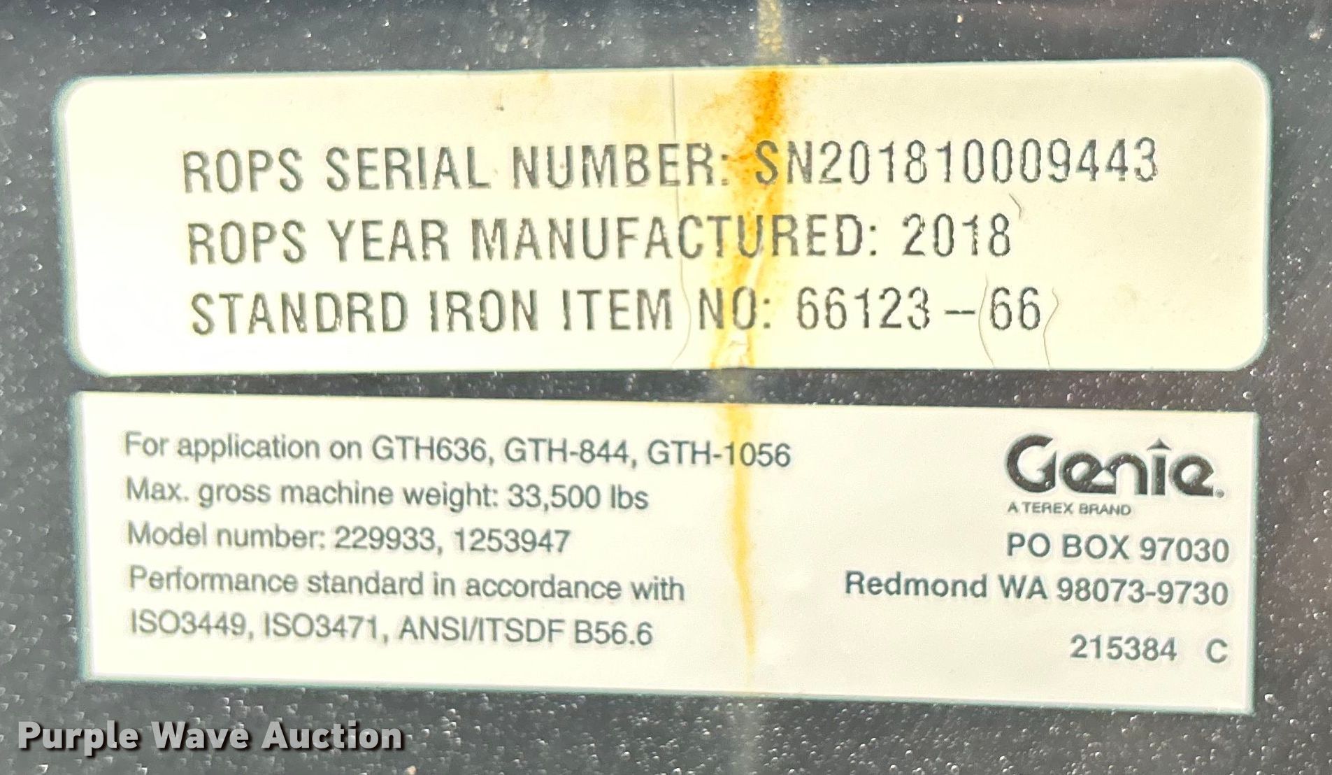 2018 Genie GTH-1056 telehandler. Hours: 1,137 on meter, Serial: GTH10E-13331. Engine Deutz, Cylinders: 4, Fuel type: Diesel. Transmission Powershift, 3F - 3R, Four wheel drive, Differential lock. Operators station Canopy. Features Maximum lift capacity: 10,000 lbs, Maximum lift height: 40', Boom stages: 3, Fork length: 60", Auxiliary hydraulics, Hydraulic outriggers, Hydraulic leveling. Tires Size: 14.00-28 TG. Collinsville, OK 74021