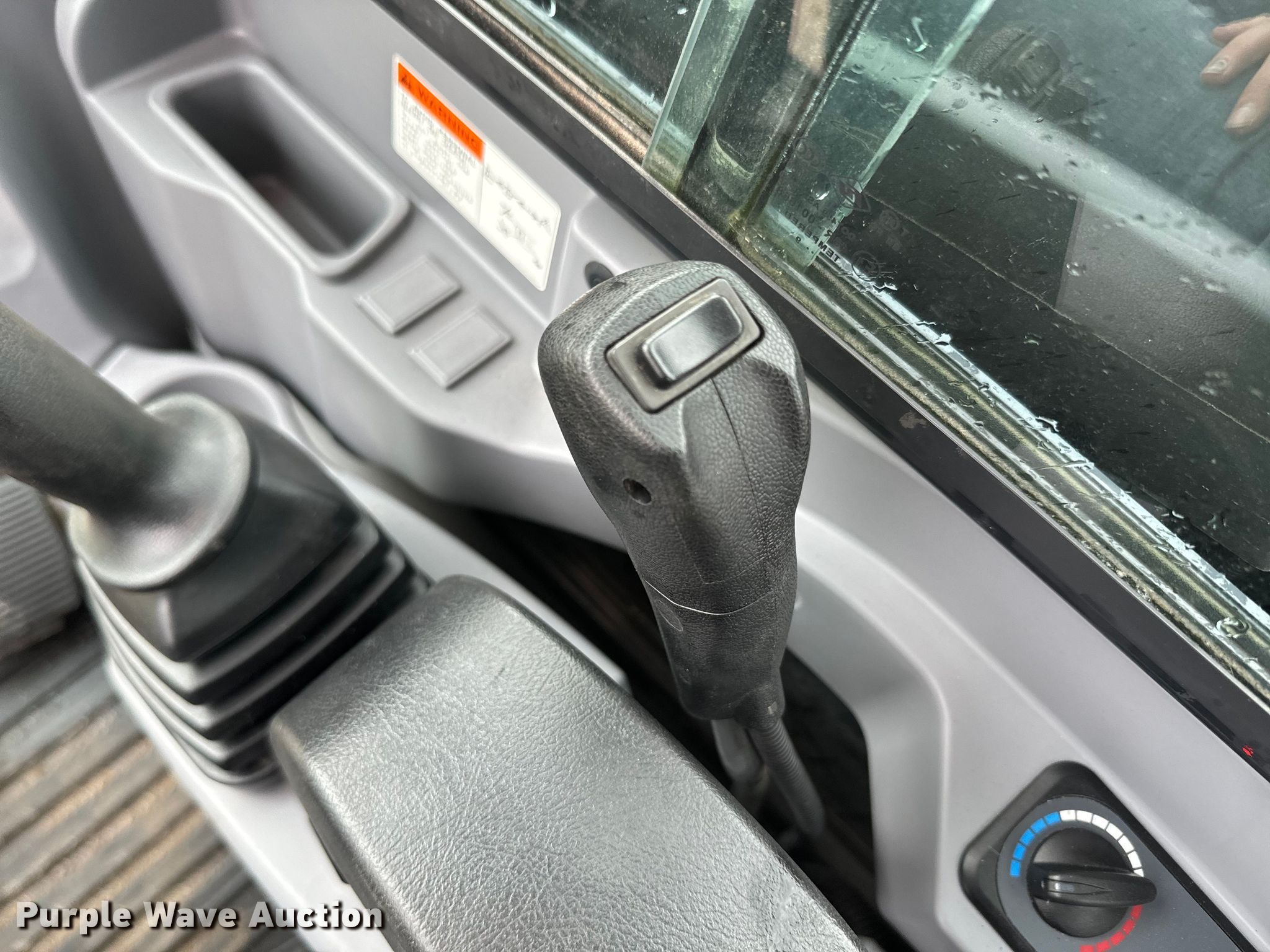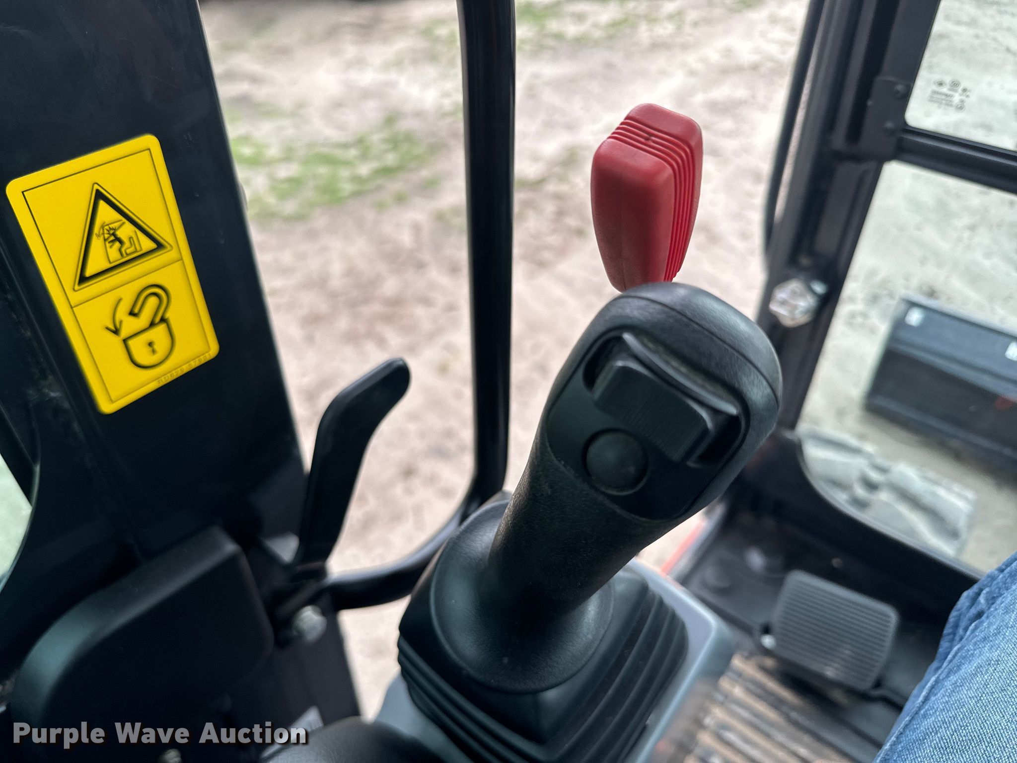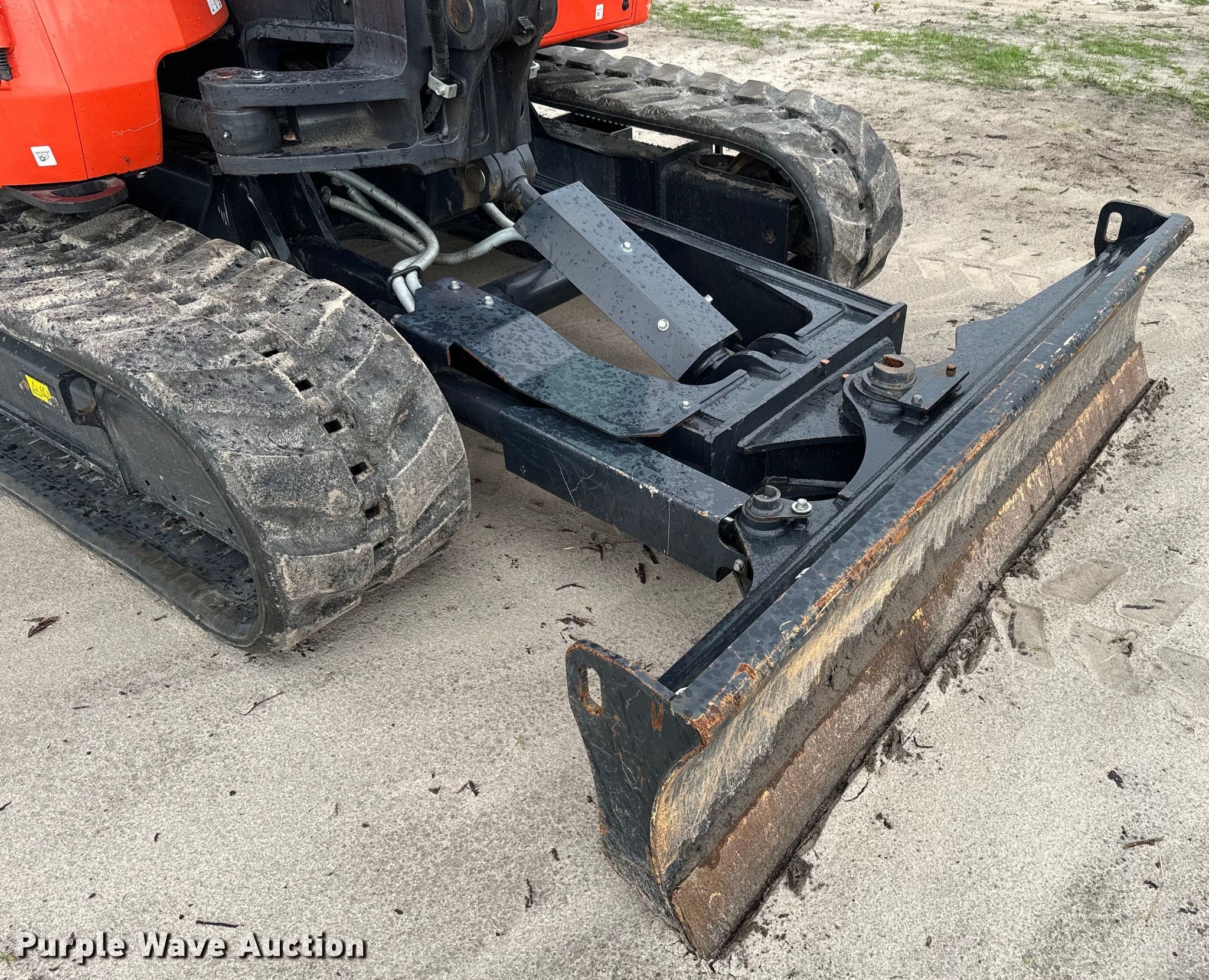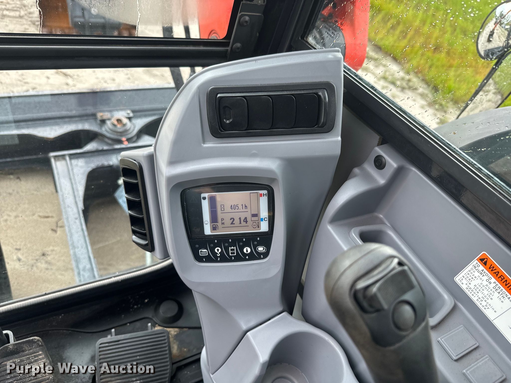 2019 Kubota KX080-4S mini excavator. Hours: 405 on meter, Serial: KBCK0804VK3G49289. Engine Kubota V3307-T, Serial: 8KN4822, Displacement: 3.3L, Cylinders: 4, Fuel type: Diesel. Transmission Hydrostatic, Two speed travel. Operators station Enclosed cab, AC, heat, Pattern changer. Features Auxiliary hydraulics Standard, Two-way, Backfill blade Width: 86", Boom Swing, Stick Stick length: 7', Quick coupler: Mechanical, Thumb: Hydraulic Werk-Brau, Bucket Werk-Brau, Width: 36", Cutting edge: Weld-on, Teeth: 7, Independent dual auxiliary hydraulic. Tracks Width: 17", Rubber. Notes Dead battery. EHaras Services & Solutions. 7138 Southeast Co Road 255. Lee, FL 32059