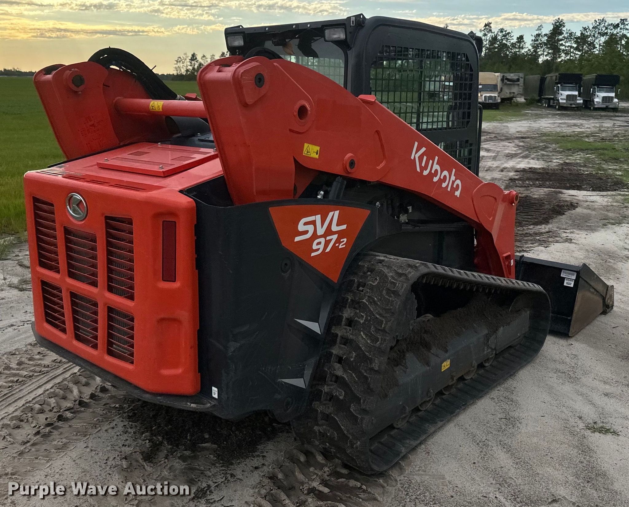 Purple Wave is selling a used Tracked Skid Steer Loader in Florida. This item is a 2021 Kubota SVL97-2 tracked skid steer loader with the following: Hours: 413 on meter, Serial: KBCZ064CAM1E63367