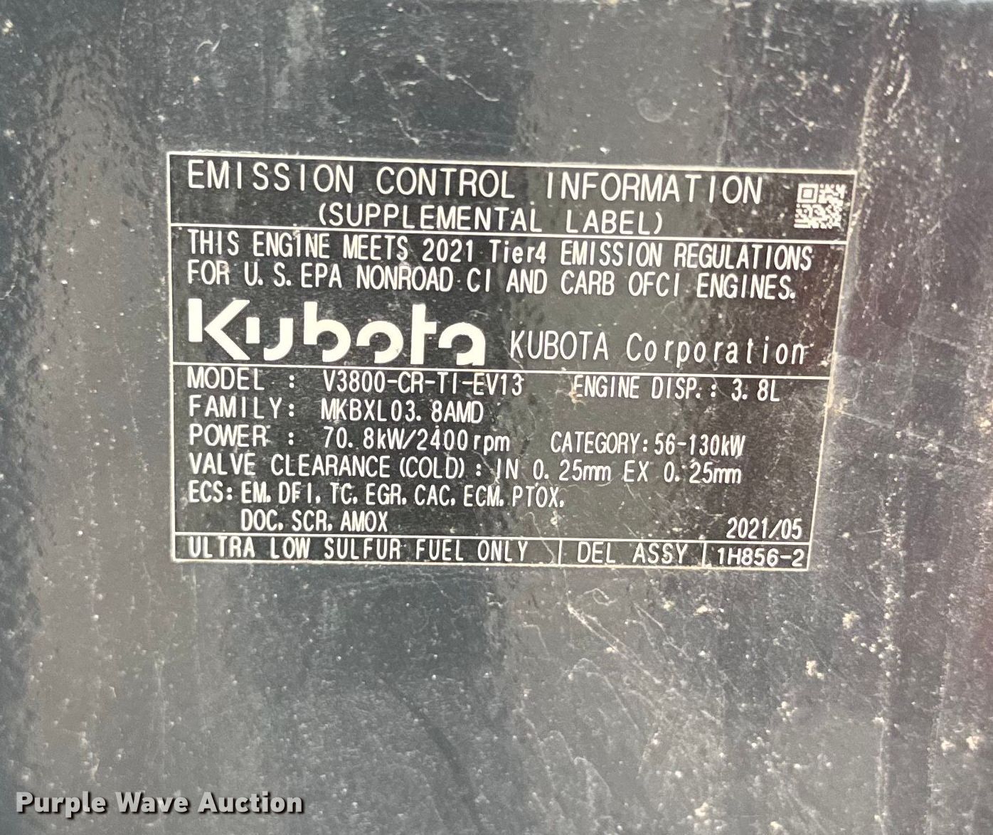 2021 Kubota SVL97-2 tracked skid steer loader. Hours: 413 on meter, Serial: KBCZ064CAM1E63367. Engine Kubota V3800, Displacement: 3.8L, Cylinders: 4, Fuel type: Diesel, kW: 70.8. Transmission Hydrostatic, Two speed travel. Operators station Enclosed cab, AC, heat, Bucket control: Hand, Backup camera. Features Auxiliary hydraulics, Auxiliary electrical outlet, Quick coupler: Hydraulic, High flow, Bucket, Land Pride Width: 80", Cutting edge: Bolt-on. Tracks Width: 17". EHaras Services & Solutions. 7138 Southeast Co Road 255. Lee, FL 32059