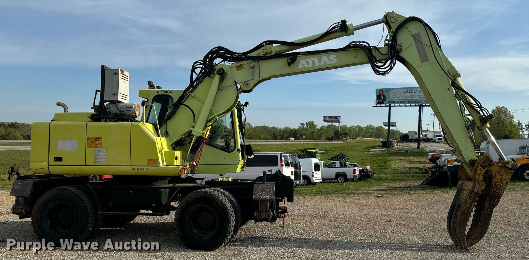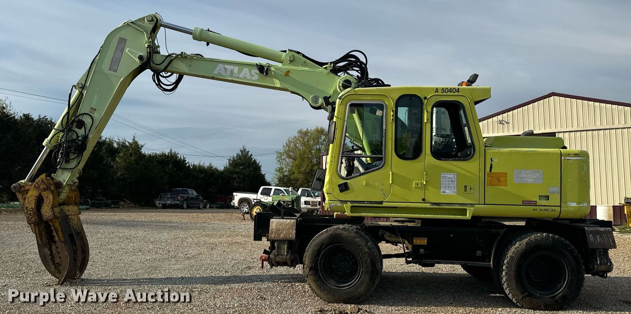 Purple Wave is selling a used Wheeled Excavator in Missouri. This item is a 2003 Atlas 1604KZW wheeled excavator with the following: Hours: 3,492 on meter, Serial: 168Z301497