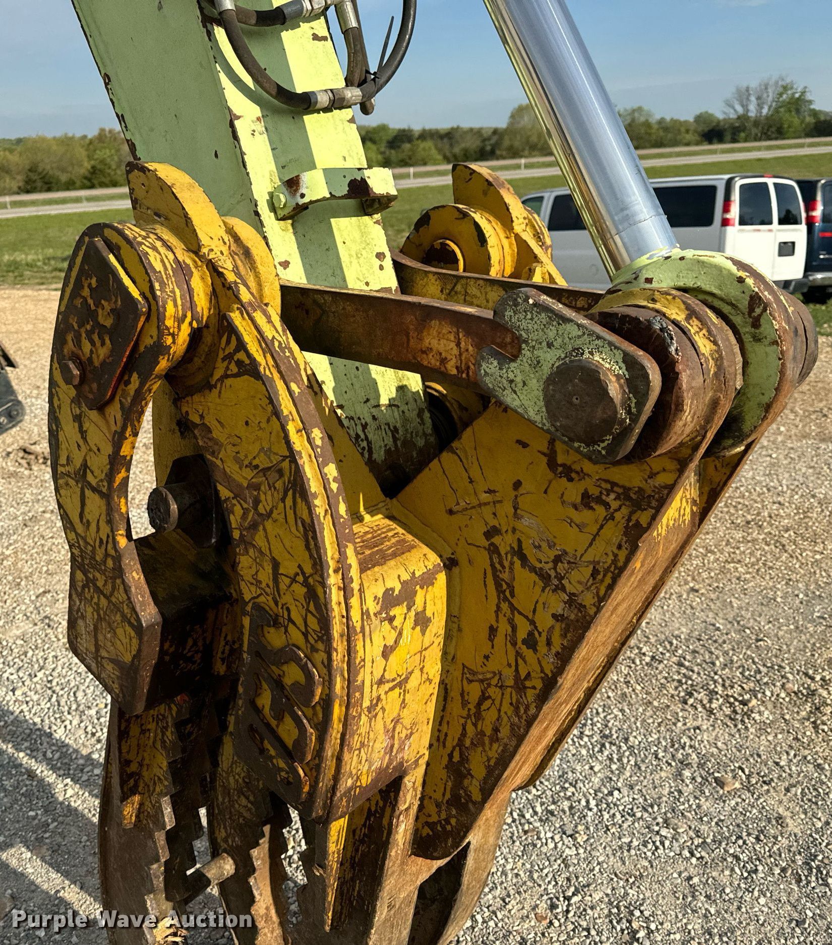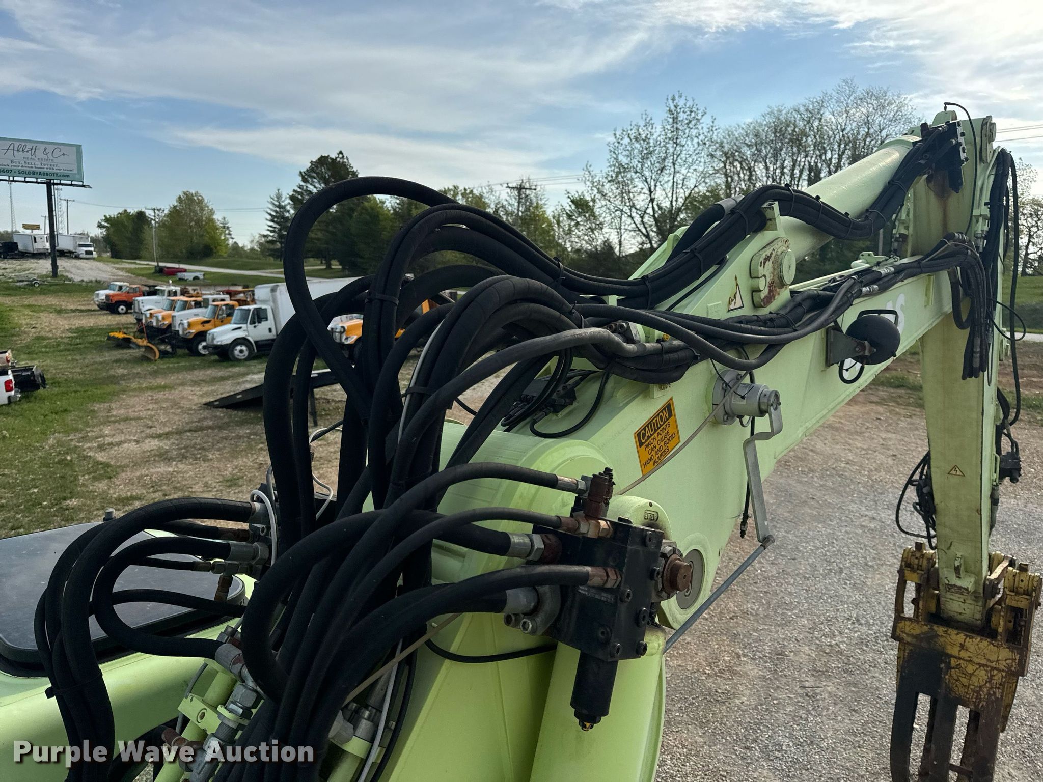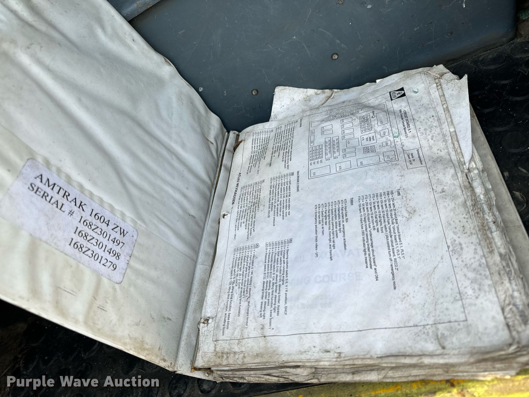 2003 Atlas 1604KZW wheeled excavator. Hours: 3,492 on meter, Serial: 168Z301497. Engine Deutz BF4M2012C, Serial: 00824138, Displacement: 4.038L, Cylinders: 4, Fuel type: Diesel, HP: 124. Transmission Hydrostatic. Operators station Enclosed cab, Heat. Features Auxiliary hydraulics, Boom Standard, Stick Stick length: 106", Grapple SEC, Width: 24", Generator Hubbell, Baldor electric motor. Tires Size: 10.00R20, Foam filled. Notes Hydraulic oil level sensor issues, Airflow sensor issues, Exhaust elbow disconnected, Glass broken/ missing, Unknown operating condition of generator, Leveling cylinder leak, Tires damaged. T&R Equipment. New Bloomfield, MO 65080
