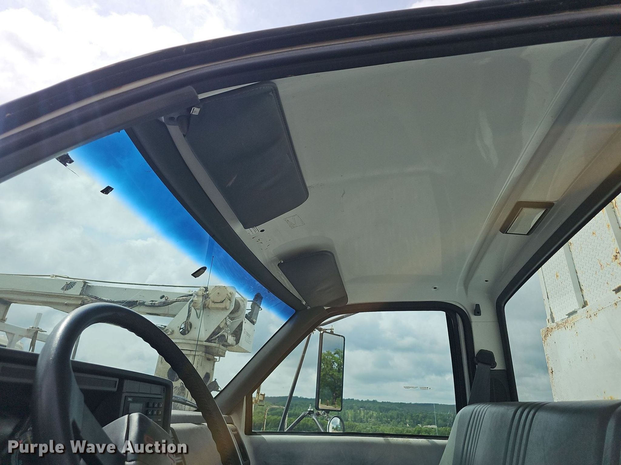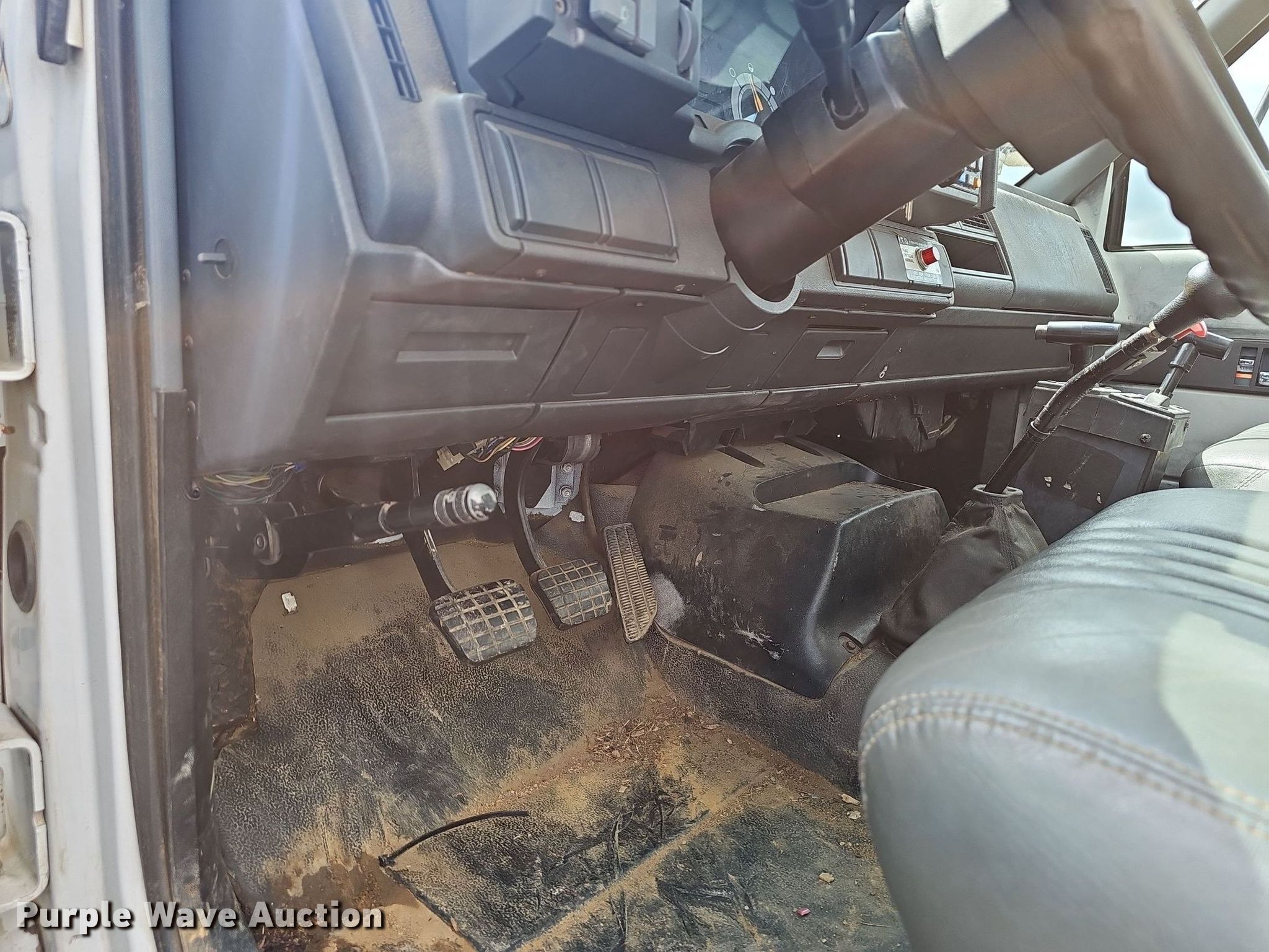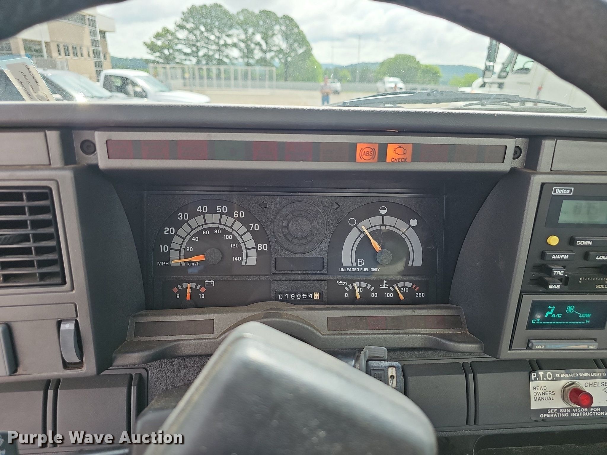 1999 GMC C6500 chipper truck. Miles: 19,955 on odometer, VIN: 1GDJ7H1B8XJ517903. Engine Displacement: 7.2L, Cylinders: 8, Fuel type: Gas. Transmission Manual, Speed: 5, plus 2. Chassis Double frame, Axles: Single, Suspension: Spring, Brakes: Hydraulic, PTO, GVWR: 25,950 lbs FAWR: 8,100 lbs, RAWR: 17,850 lbs. Interior AC, heat. Features Dump bed 13' L x 96" W, Side board height: 68", Bed type: Steel, Ram: Dual, End gate: Manual. Tires Size: 11R22.5. Notes Dash warning indicator: Check engine, ABS. Oklahoma title. Title distribution may be delayed up to 30 days from verification of funds. Arkansas Valley Electric Cooperative Corp.. Ozark, AR 72949