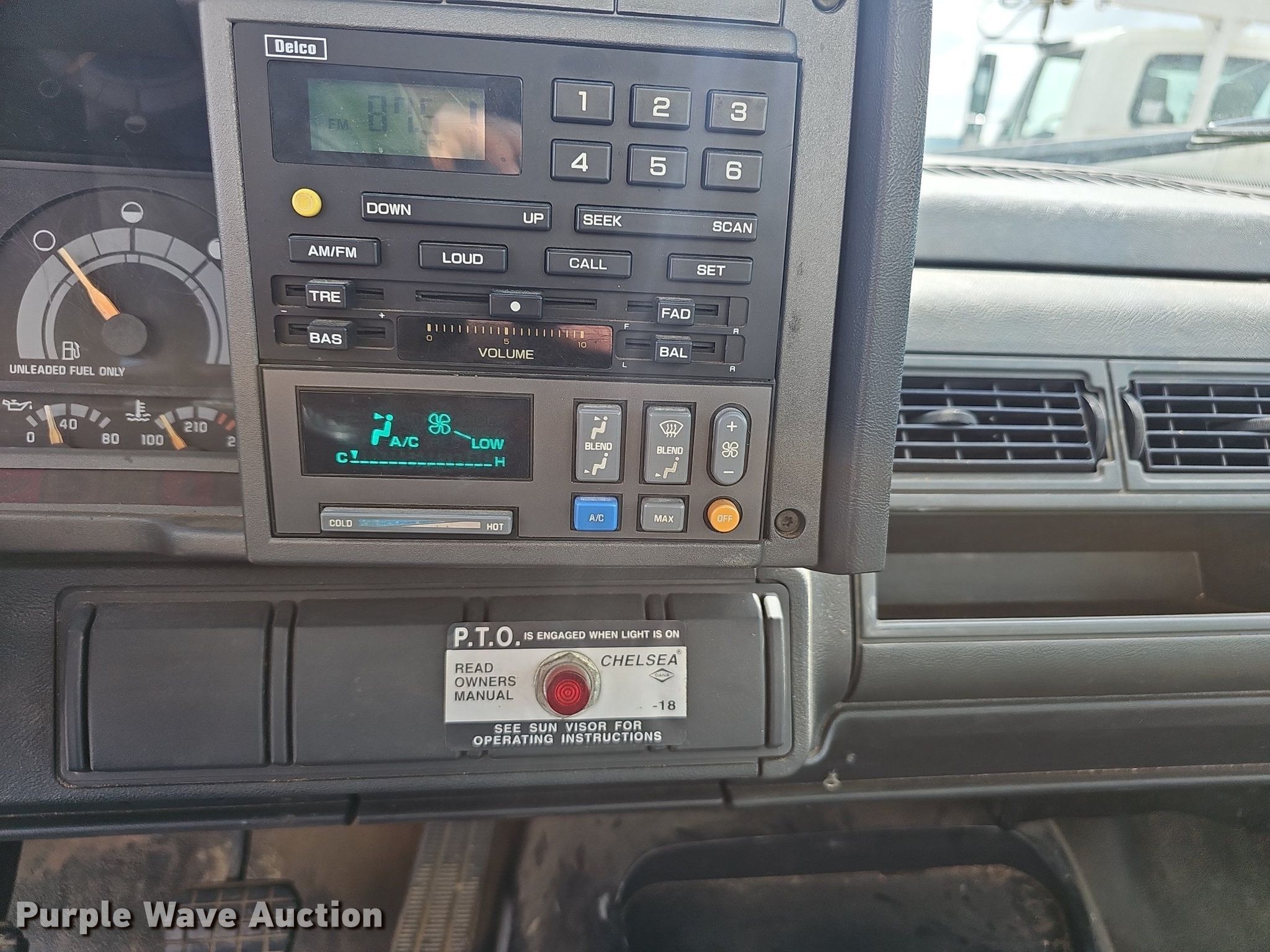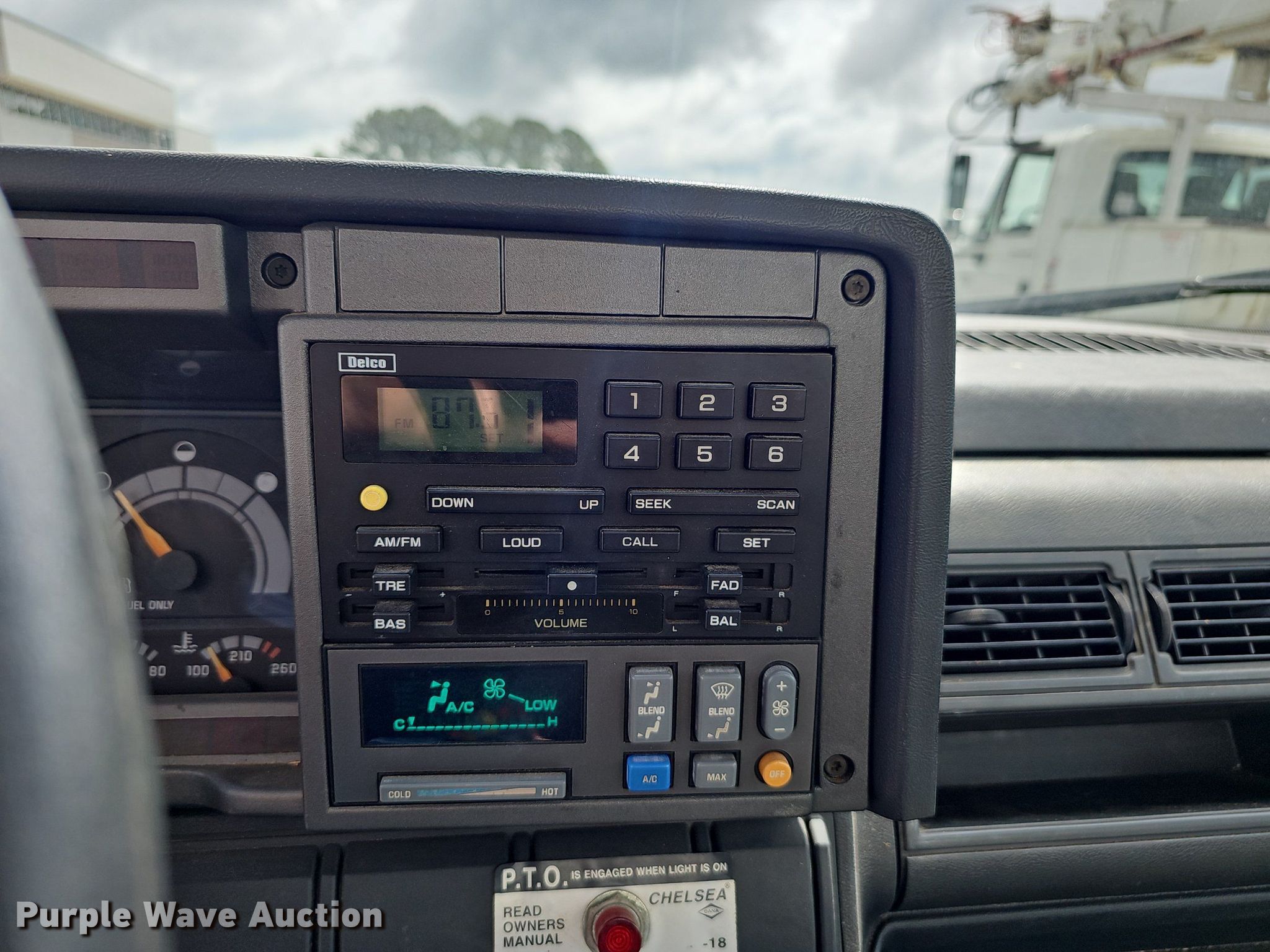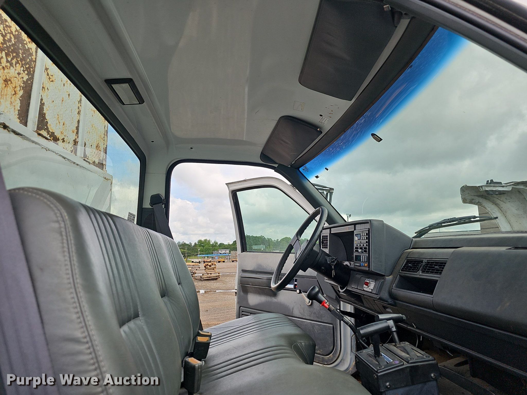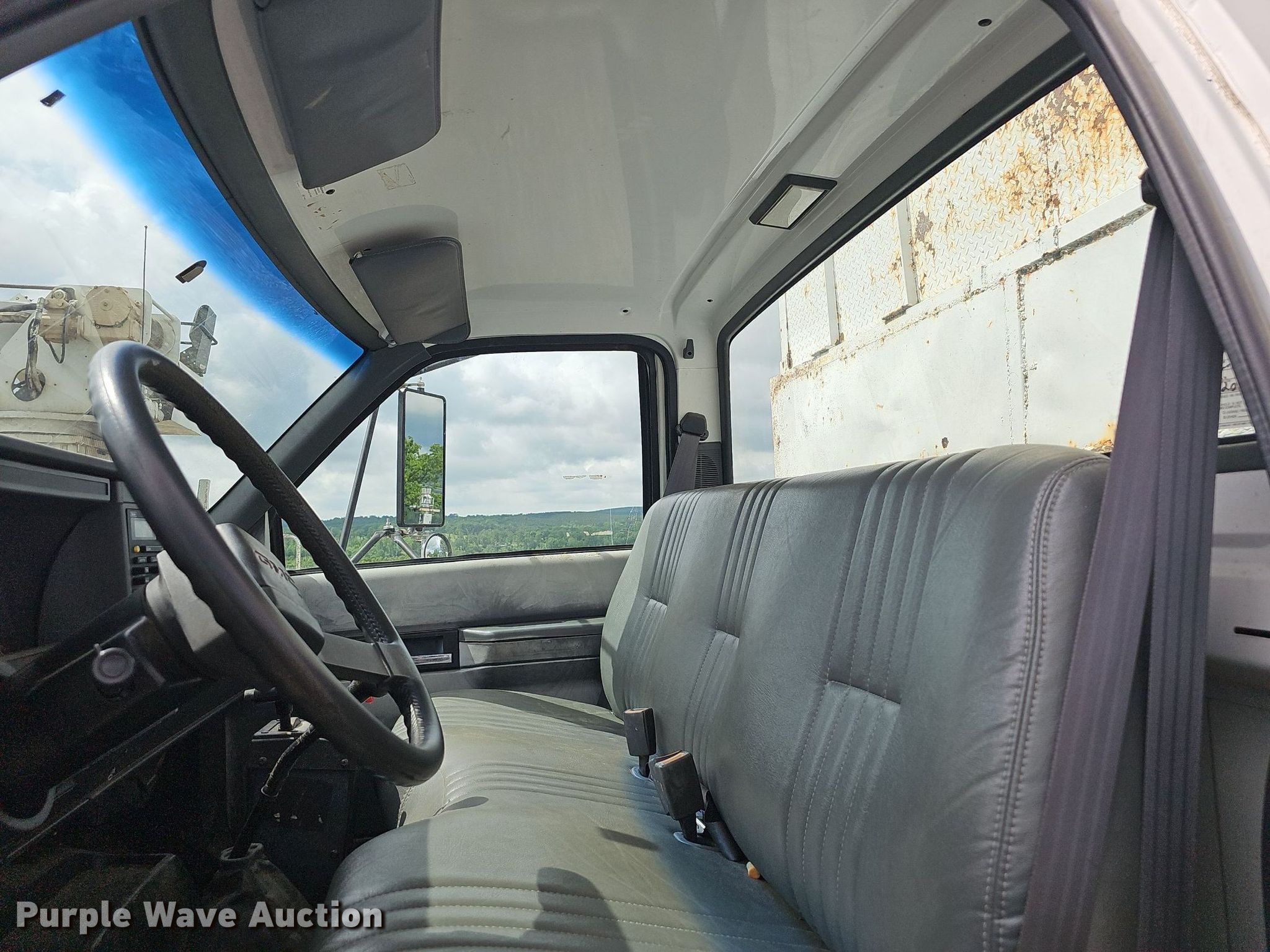 1999 GMC C6500 chipper truck. Miles: 19,955 on odometer, VIN: 1GDJ7H1B8XJ517903. Engine Displacement: 7.2L, Cylinders: 8, Fuel type: Gas. Transmission Manual, Speed: 5, plus 2. Chassis Double frame, Axles: Single, Suspension: Spring, Brakes: Hydraulic, PTO, GVWR: 25,950 lbs FAWR: 8,100 lbs, RAWR: 17,850 lbs. Interior AC, heat. Features Dump bed 13' L x 96" W, Side board height: 68", Bed type: Steel, Ram: Dual, End gate: Manual. Tires Size: 11R22.5. Notes Dash warning indicator: Check engine, ABS. Oklahoma title. Title distribution may be delayed up to 30 days from verification of funds. Arkansas Valley Electric Cooperative Corp.. Ozark, AR 72949