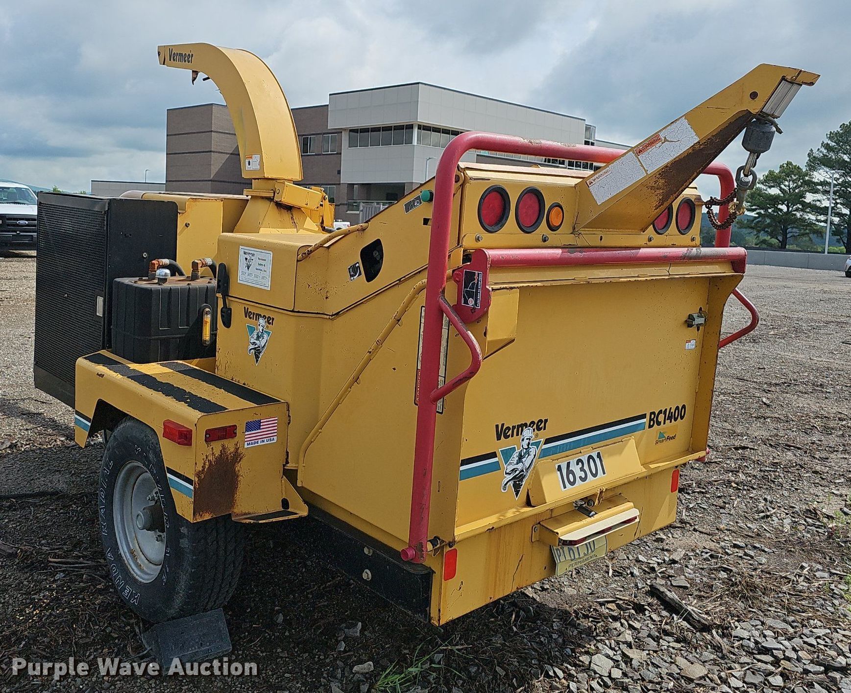 Purple Wave is selling a used Wood Chipper or Stump Grinder in Arkansas. This item is a 2003 Vermeer BC1400 wood chipper with the following: Hours: 1,870 on meter, Hours: Unknown, VIN: 1VRU1614231000678, Unit #: 16301
