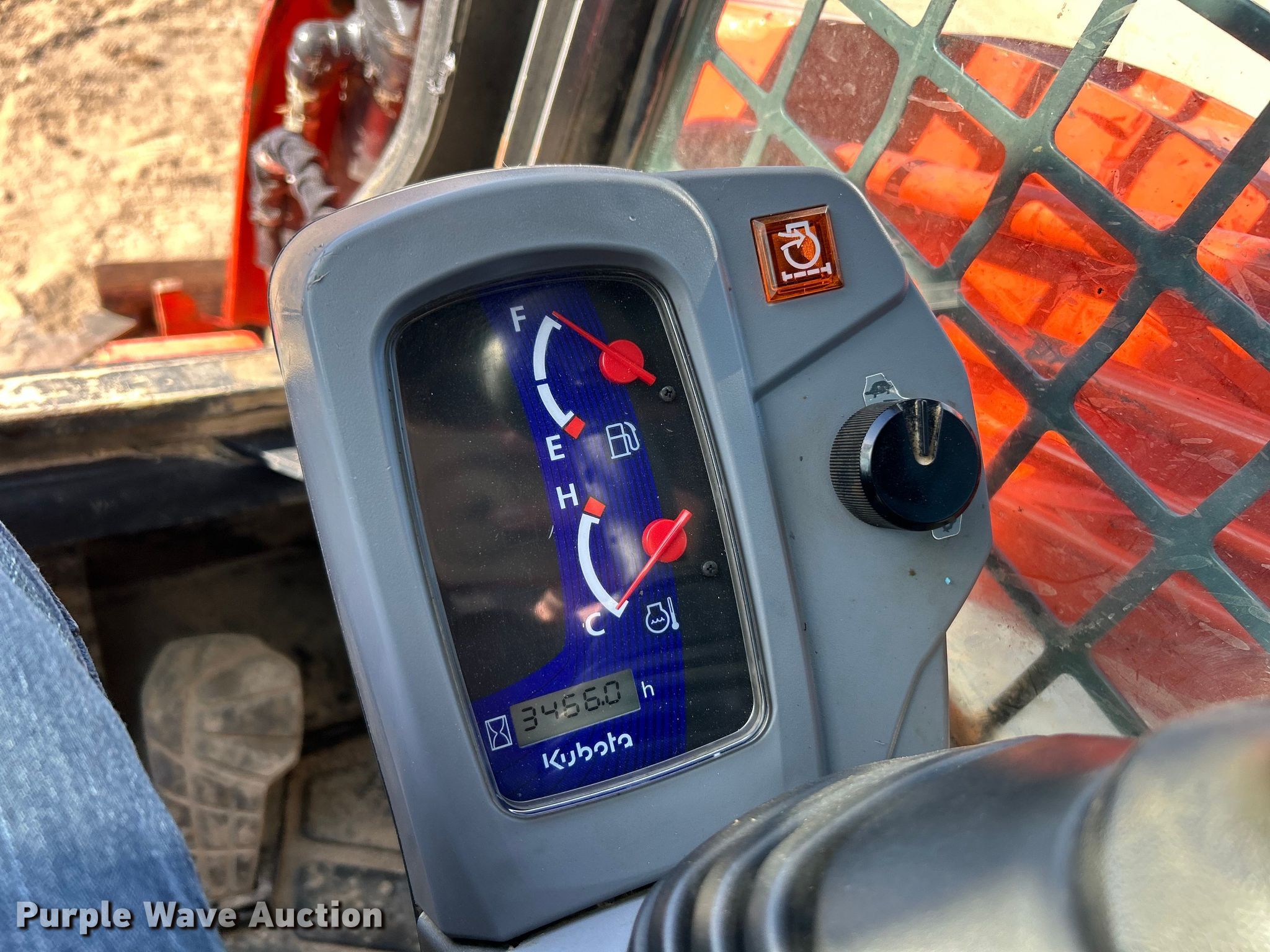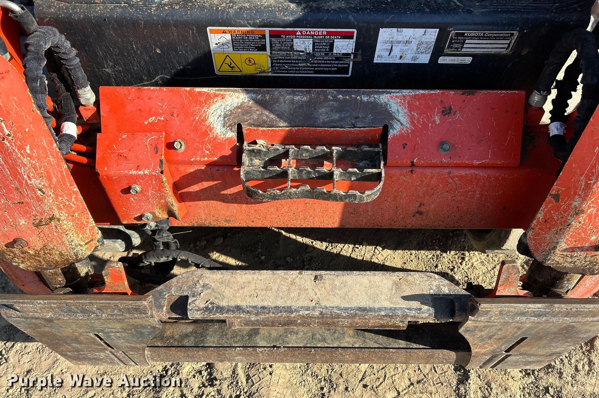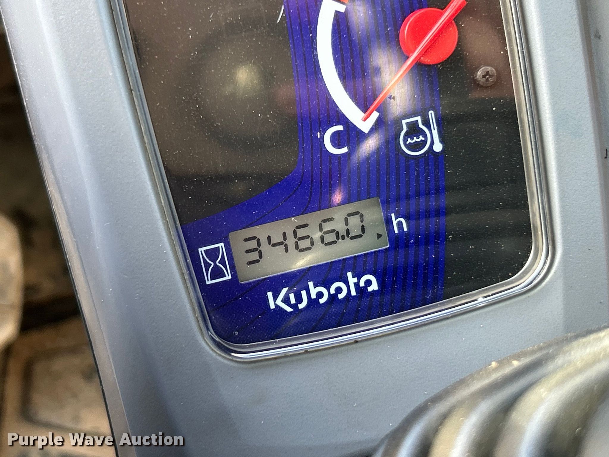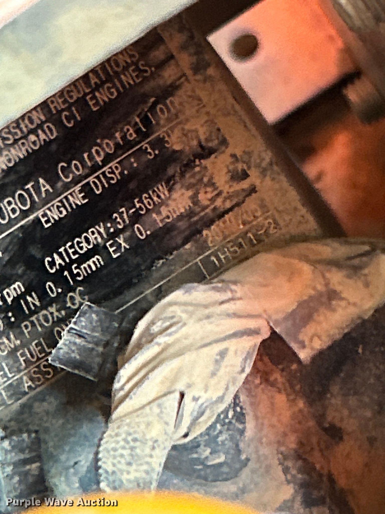 2019 Kubota SVL75-2 tracked skid steer loader. Hours: 3,466 on meter, Serial: KBCC0752KK1F44412. Engine Kubota V3307-T, Serial: 6KJ5255, Displacement: 3.3L, Cylinders: 4, Fuel type: Diesel. Transmission Hydrostatic, Two speed travel. Operators station Enclosed cab, AC, heat, Bucket control: Hand. Features Auxiliary hydraulics, Auxiliary electrical outlet, Quick coupler: Hydraulic. Tracks Width: 15". Kuesel Excavating Company. O'Fallon, MO 63366