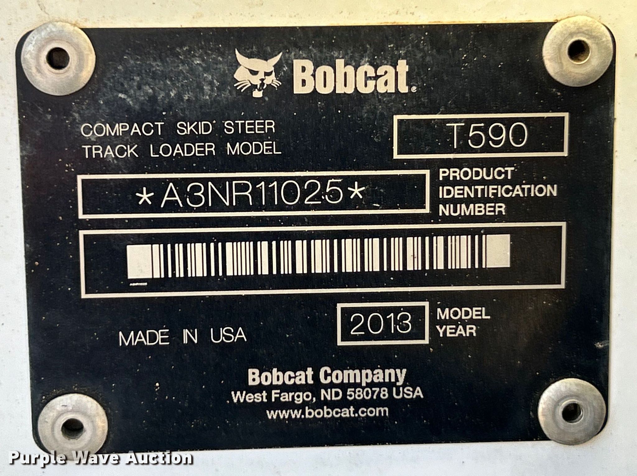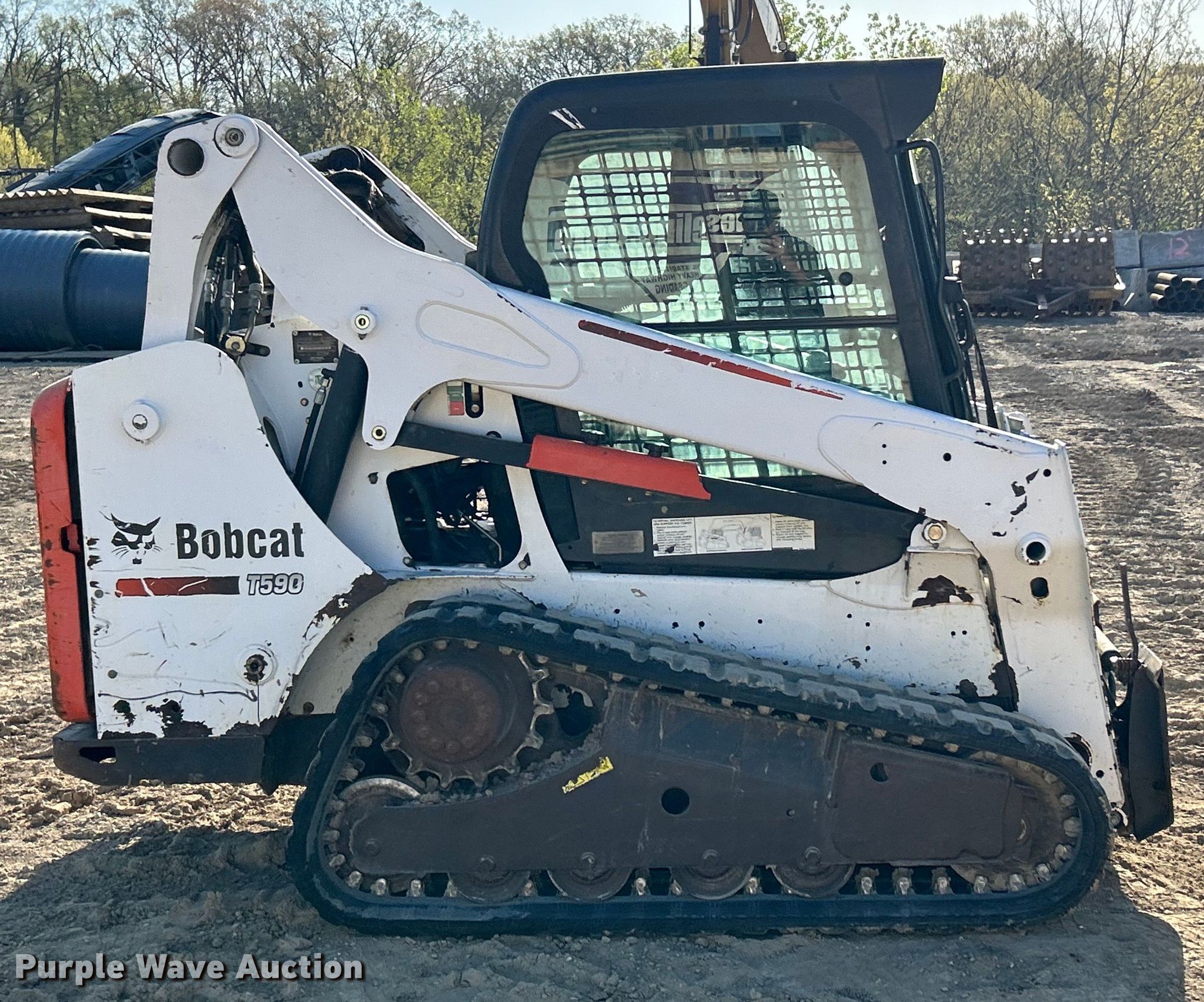 Purple Wave is selling a used Tracked Skid Steer Loader in Missouri. This item is a 2013 Bobcat T590 tracked skid steer loader with the following: Hours: 4,670 on meter, Serial: A3NR11025