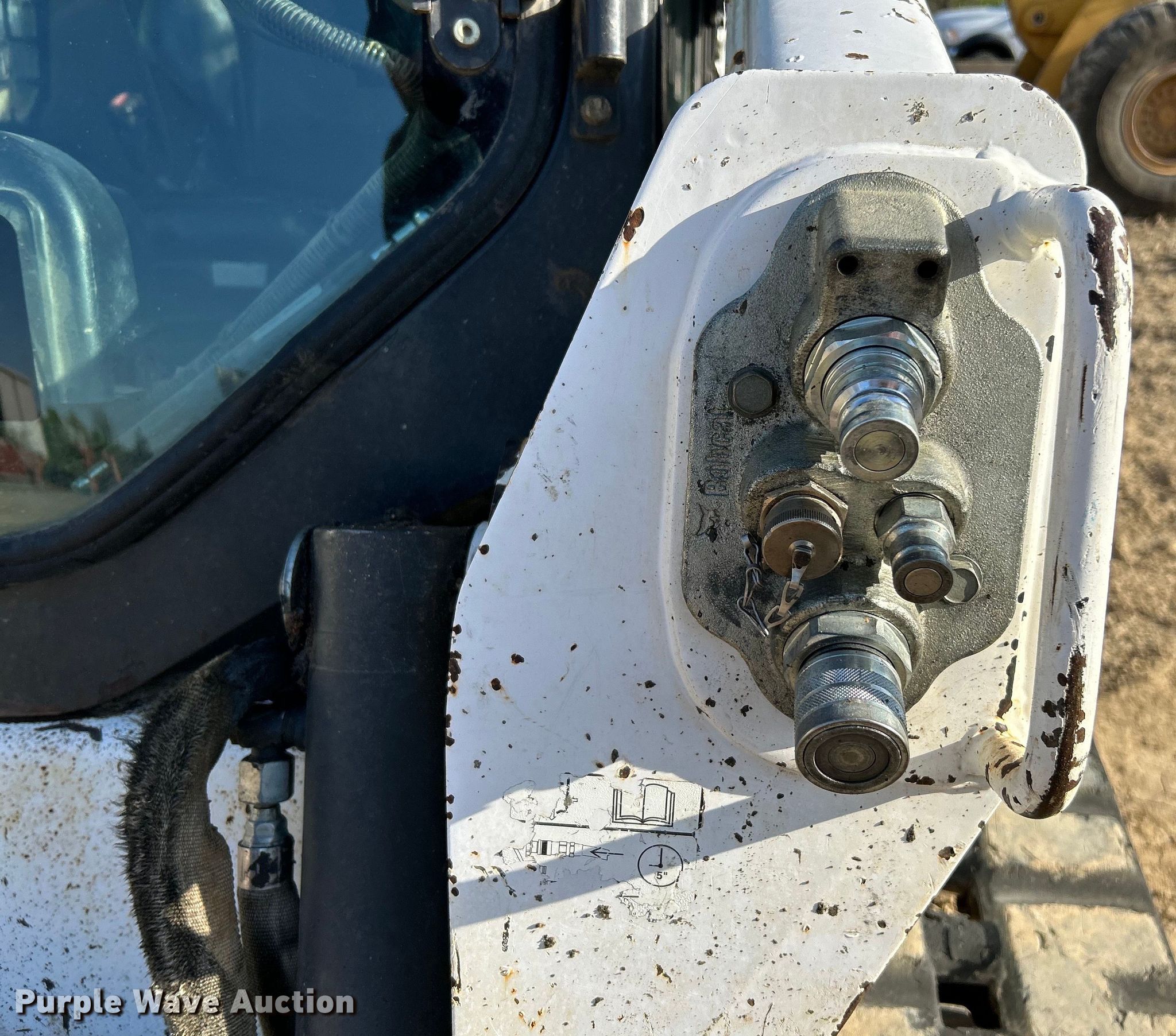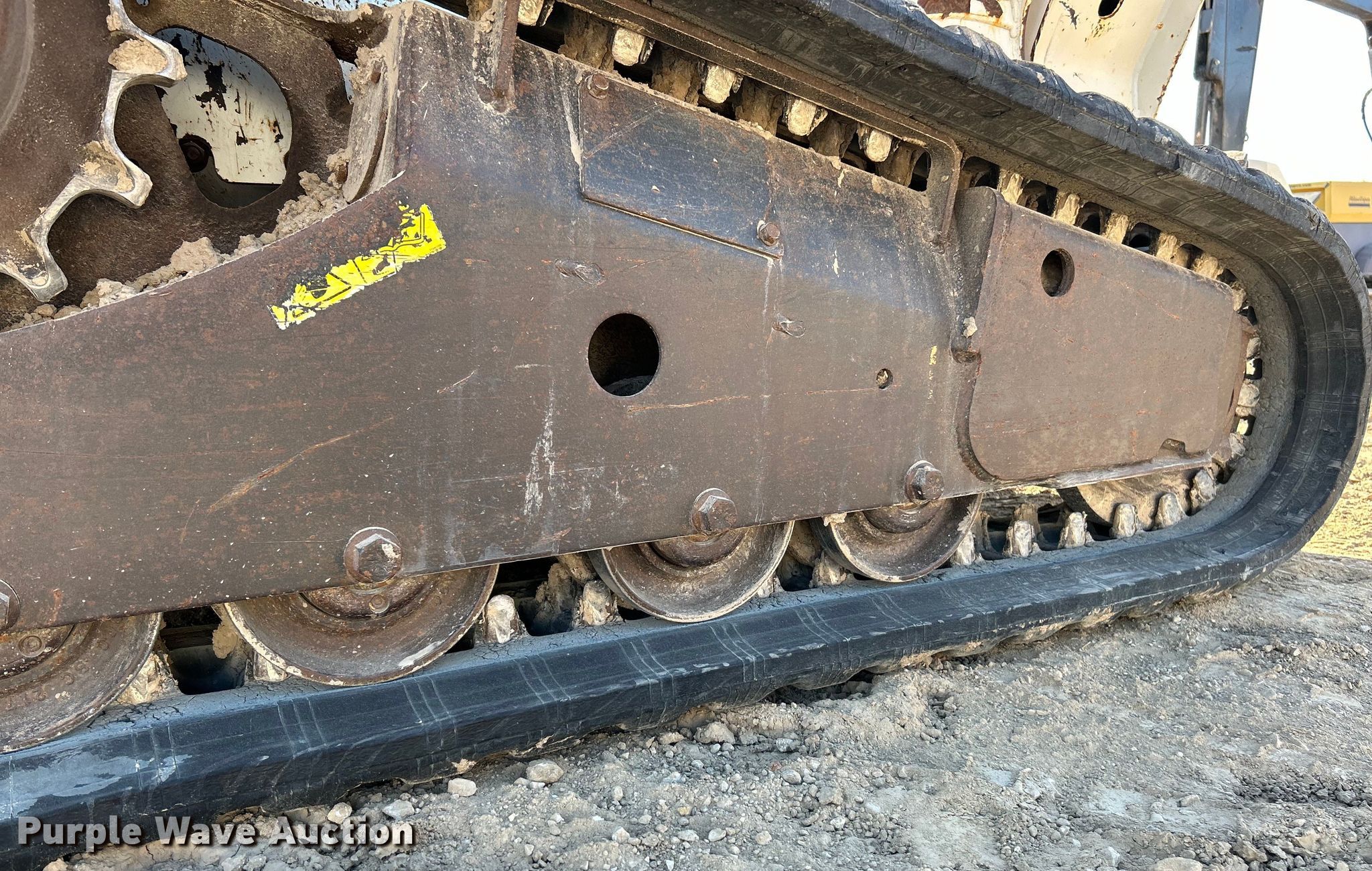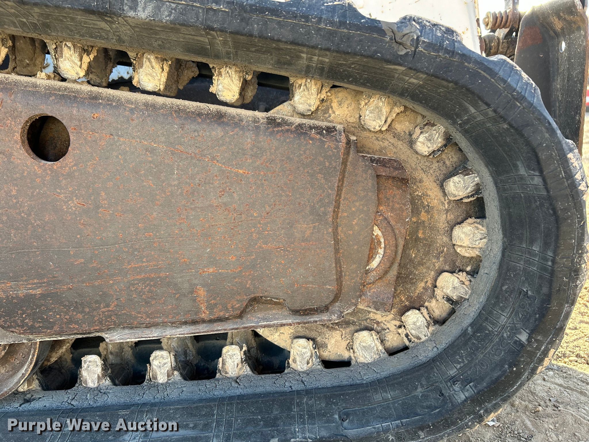 2013 Bobcat T590 tracked skid steer loader. Hours: 4,670 on meter, Serial: A3NR11025. Engine Kubota V2607-D1-T-ET03, Displacement: 2.6L, Cylinders: 4, Fuel type: Diesel, kW: 49.2. Transmission Hydrostatic, Two speed travel. Operators station Enclosed cab, AC, Heat, Bucket control: Foot, Electronic Monitoring System panel. Features Auxiliary hydraulics, Auxiliary electrical outlet, Quick coupler: Hydraulic. Tracks Width: 12". Kuesel Excavating Company. O'Fallon, MO 63366