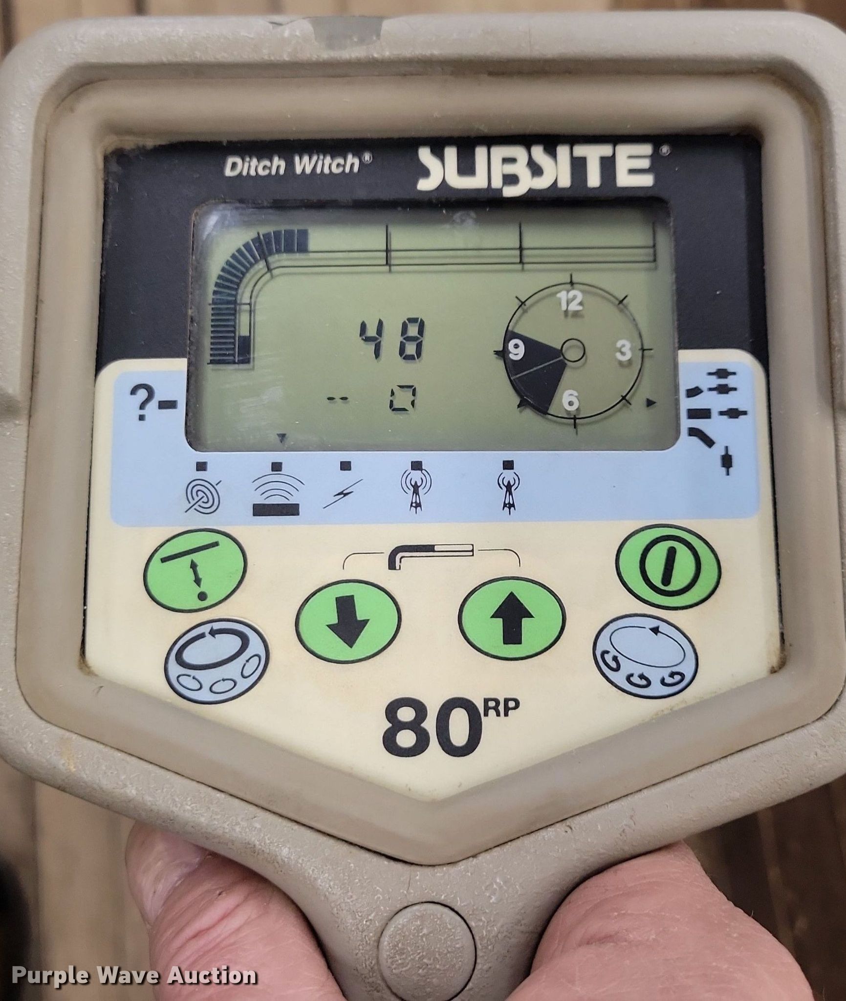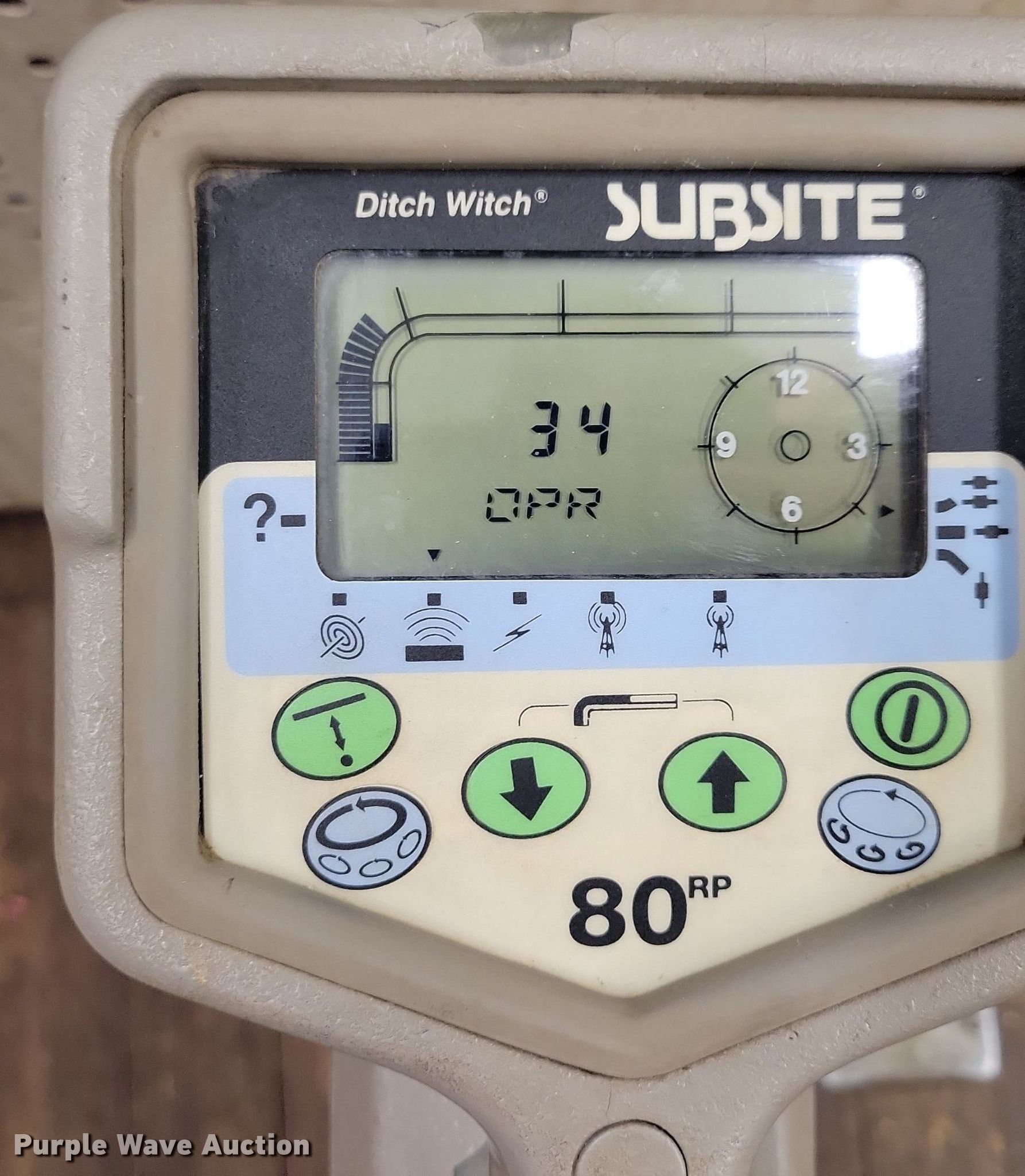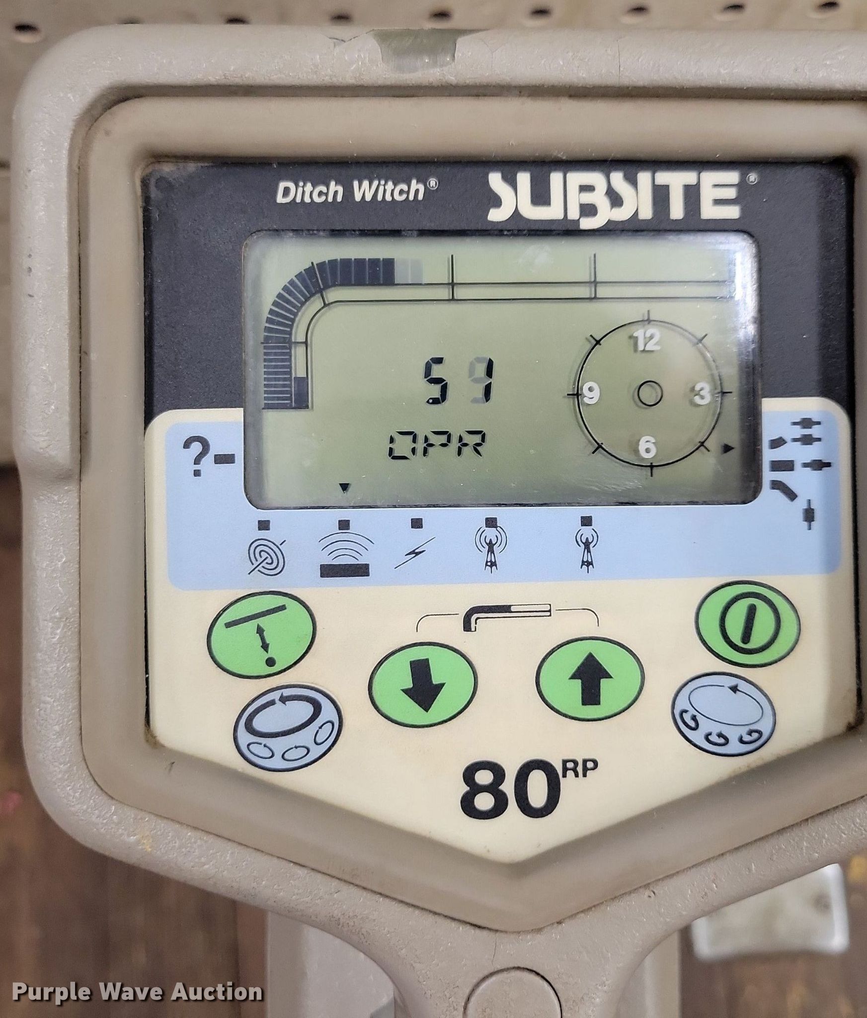 1994 Ditch Witch P80 directional rod pusher. Features. Drill stems On drill: 30, Drill stem length: 4' Diameter: 1.75", Locator Ditch Witch 80 RP Subsite, Receiver, Transmitter Serial: 032721, Battery charger, Stackable trench box 3' x 9' x 4', Valve controls, Heads, Back reamers, Cable, Pipe end supports. Notes Owners manual. Templeton, IA 51463