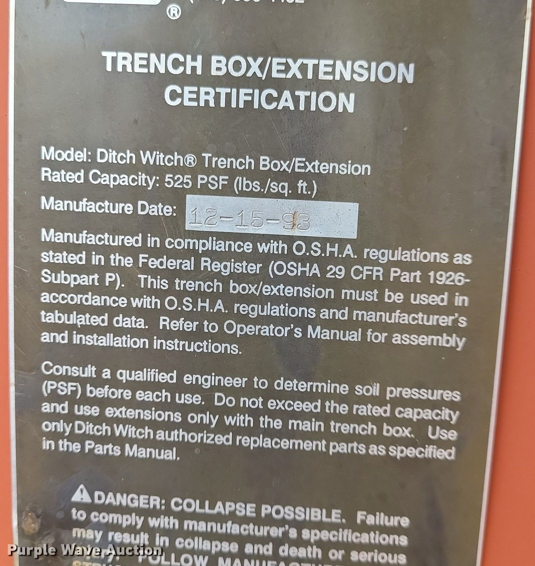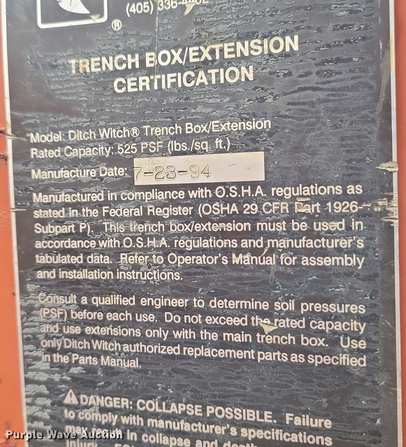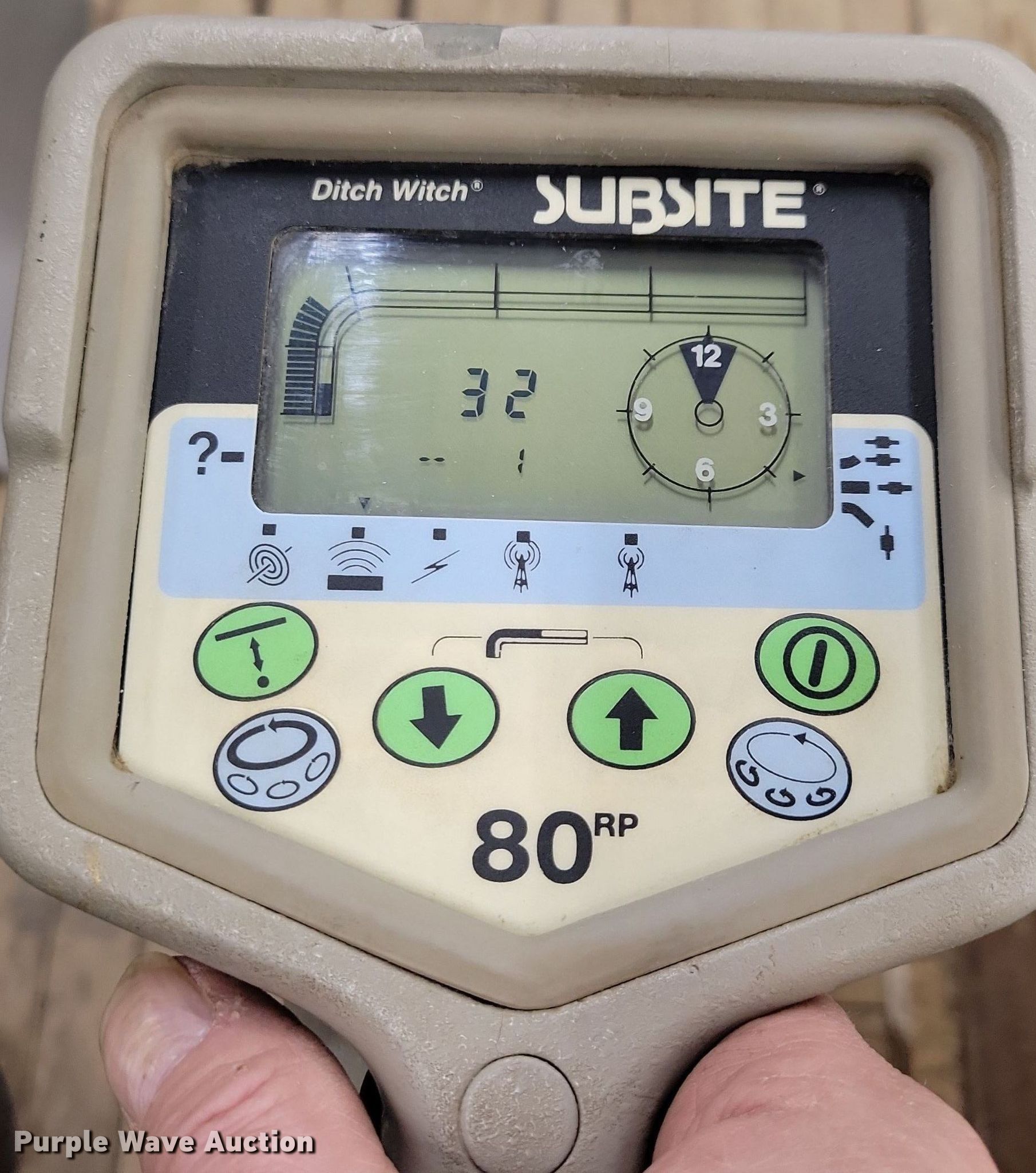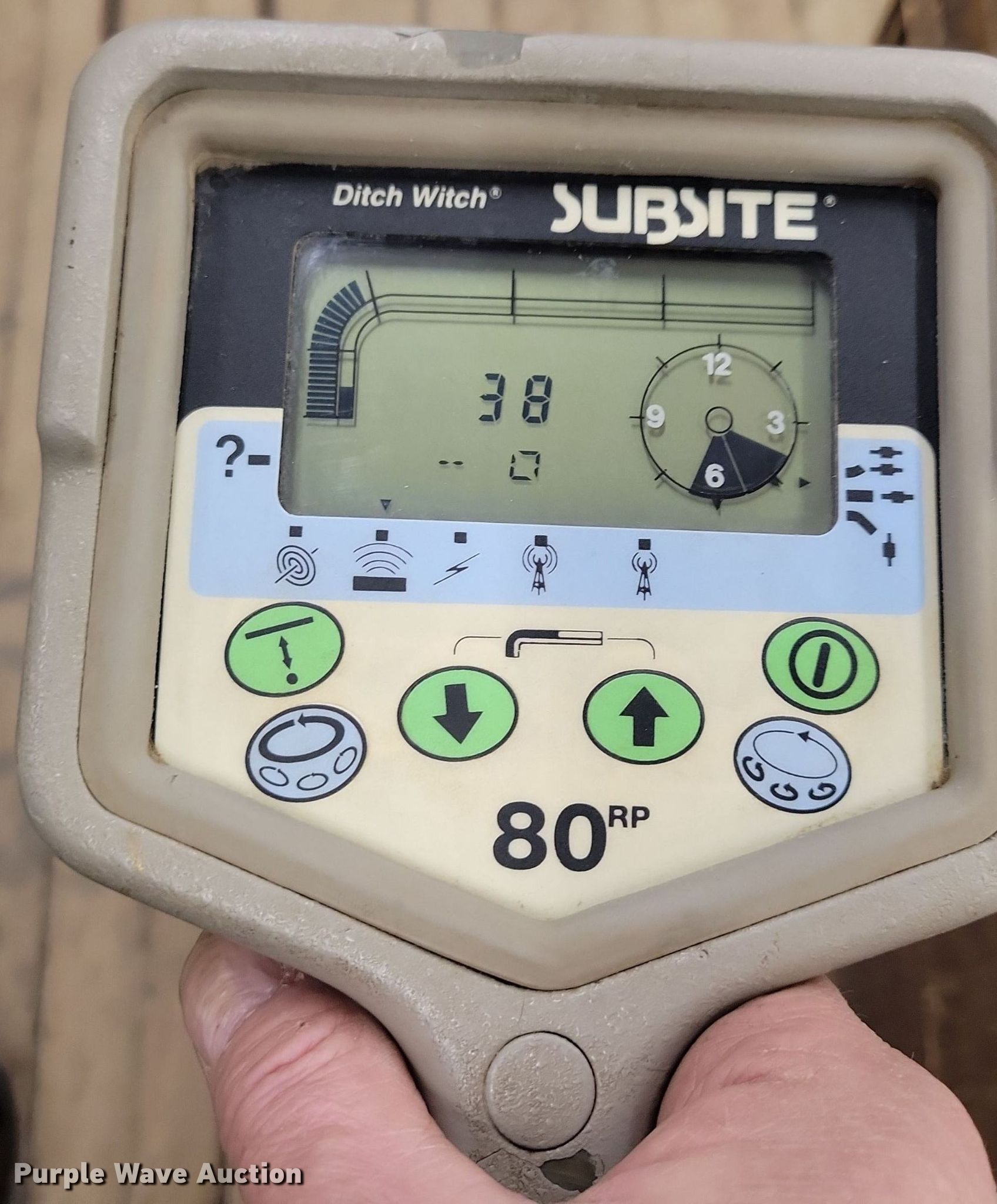 1994 Ditch Witch P80 directional rod pusher. Features. Drill stems On drill: 30, Drill stem length: 4' Diameter: 1.75", Locator Ditch Witch 80 RP Subsite, Receiver, Transmitter Serial: 032721, Battery charger, Stackable trench box 3' x 9' x 4', Valve controls, Heads, Back reamers, Cable, Pipe end supports. Notes Owners manual. Templeton, IA 51463
