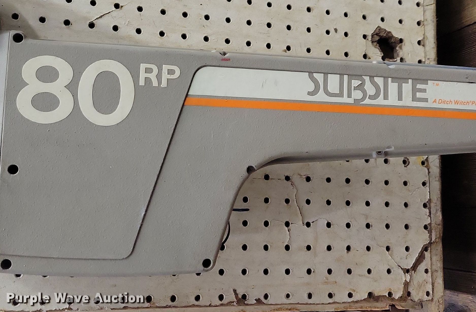 Purple Wave is selling a used Boring or Trenching Tool or Attach. in Iowa. This item is a 1994 Ditch Witch P80 directional rod pusher with the following: Drill stems, On drill: 30, Drill stem length: 4', Diameter: 1.75", Locator, Ditch Witch 80 RP Subsite, Receiver, Transmitter, Serial: 032721, Battery charger, Stackable trench box, 3' x 9' x 4', Valve controls, Heads, Back reamers, Cable, Pipe end supports