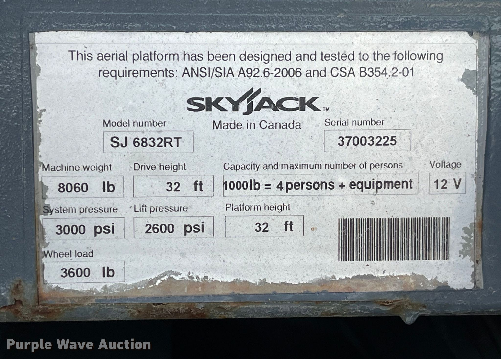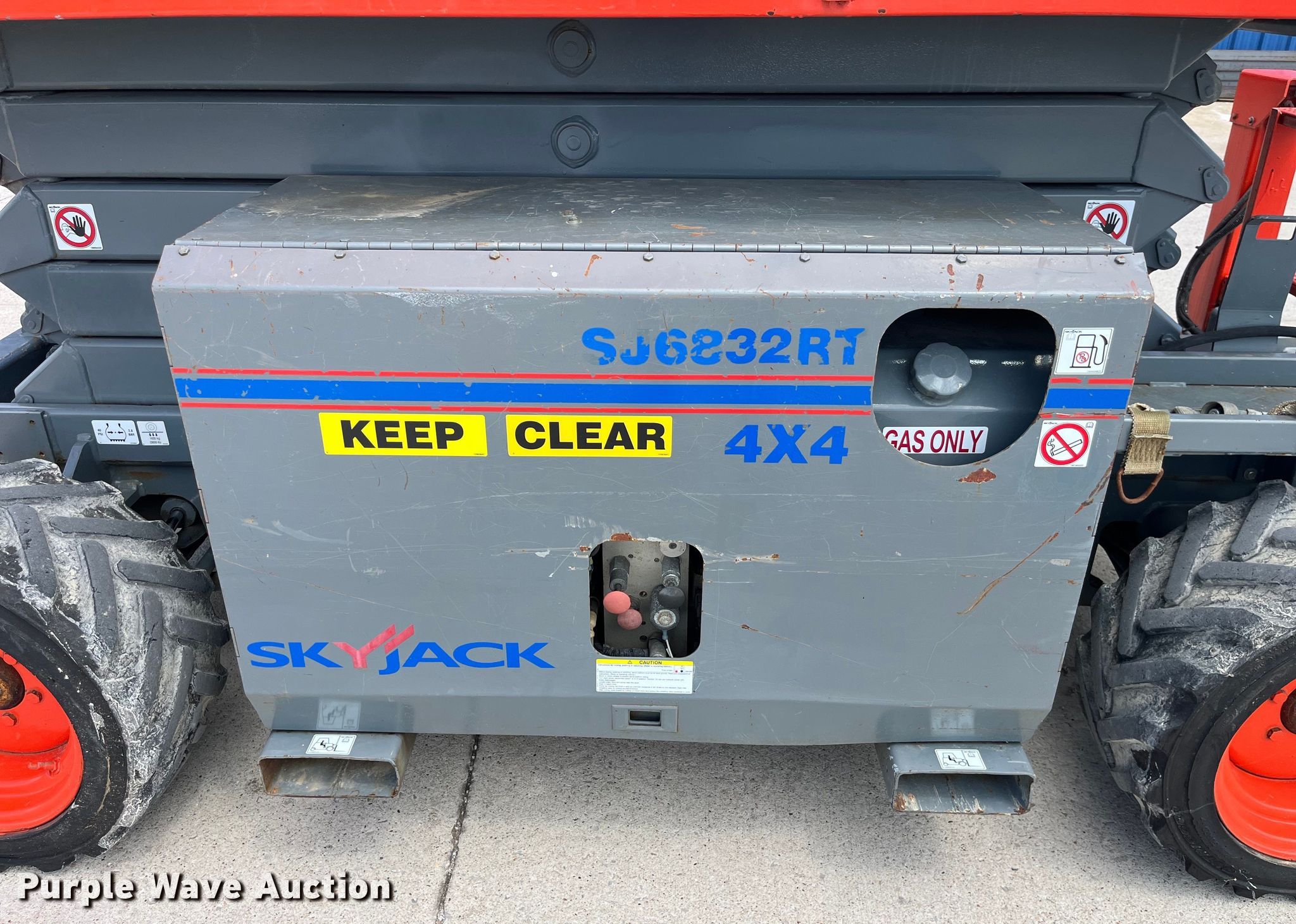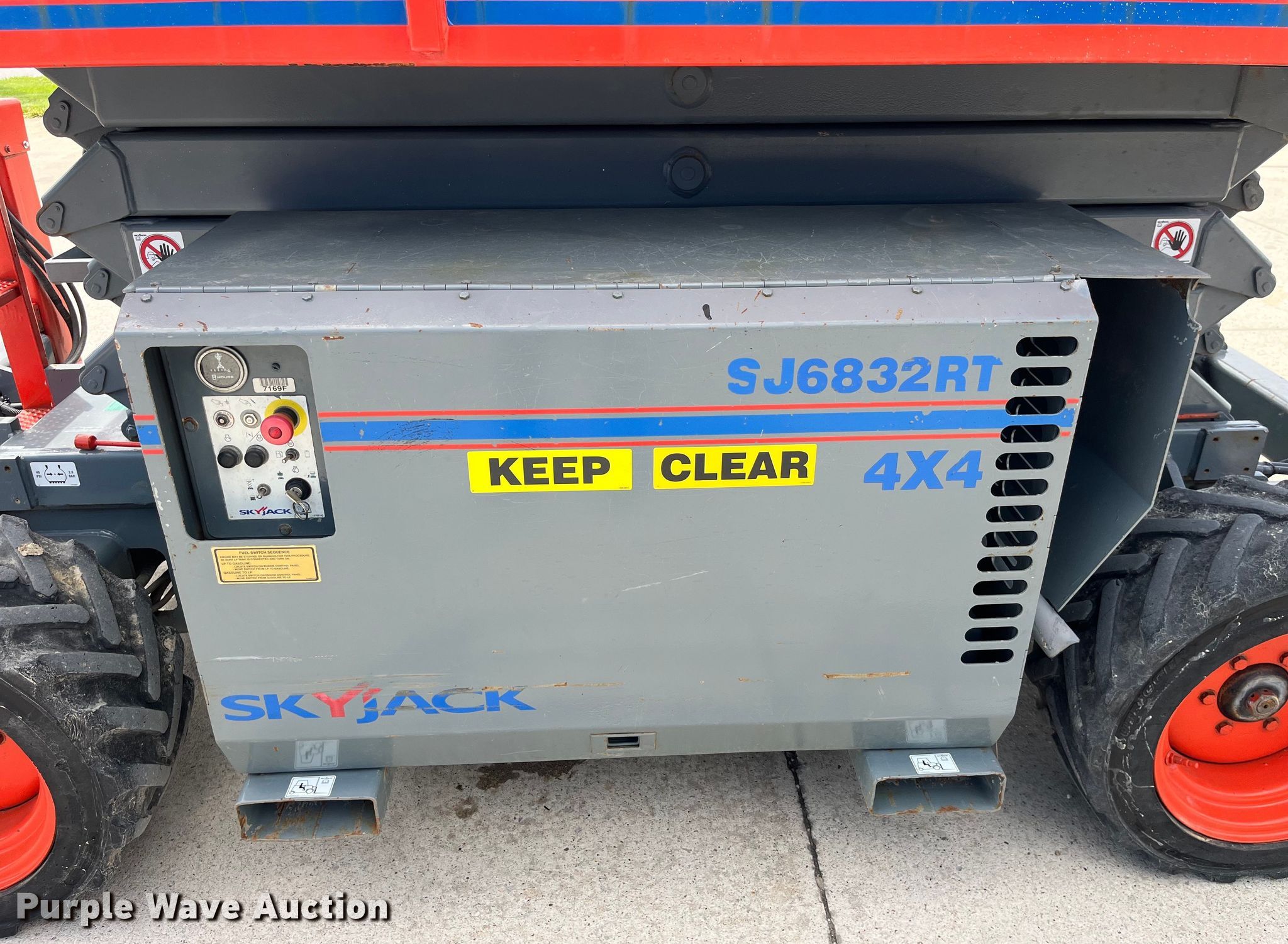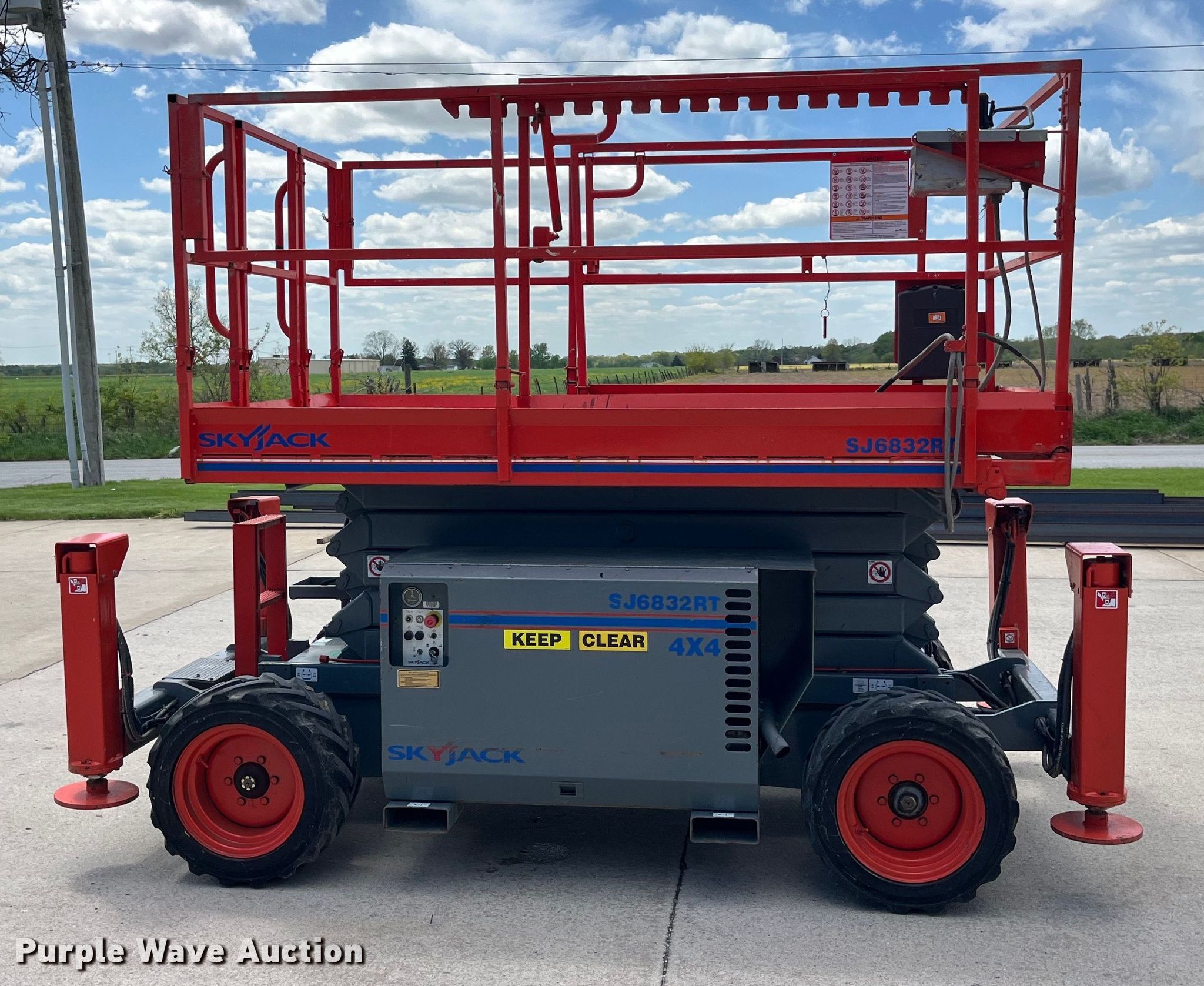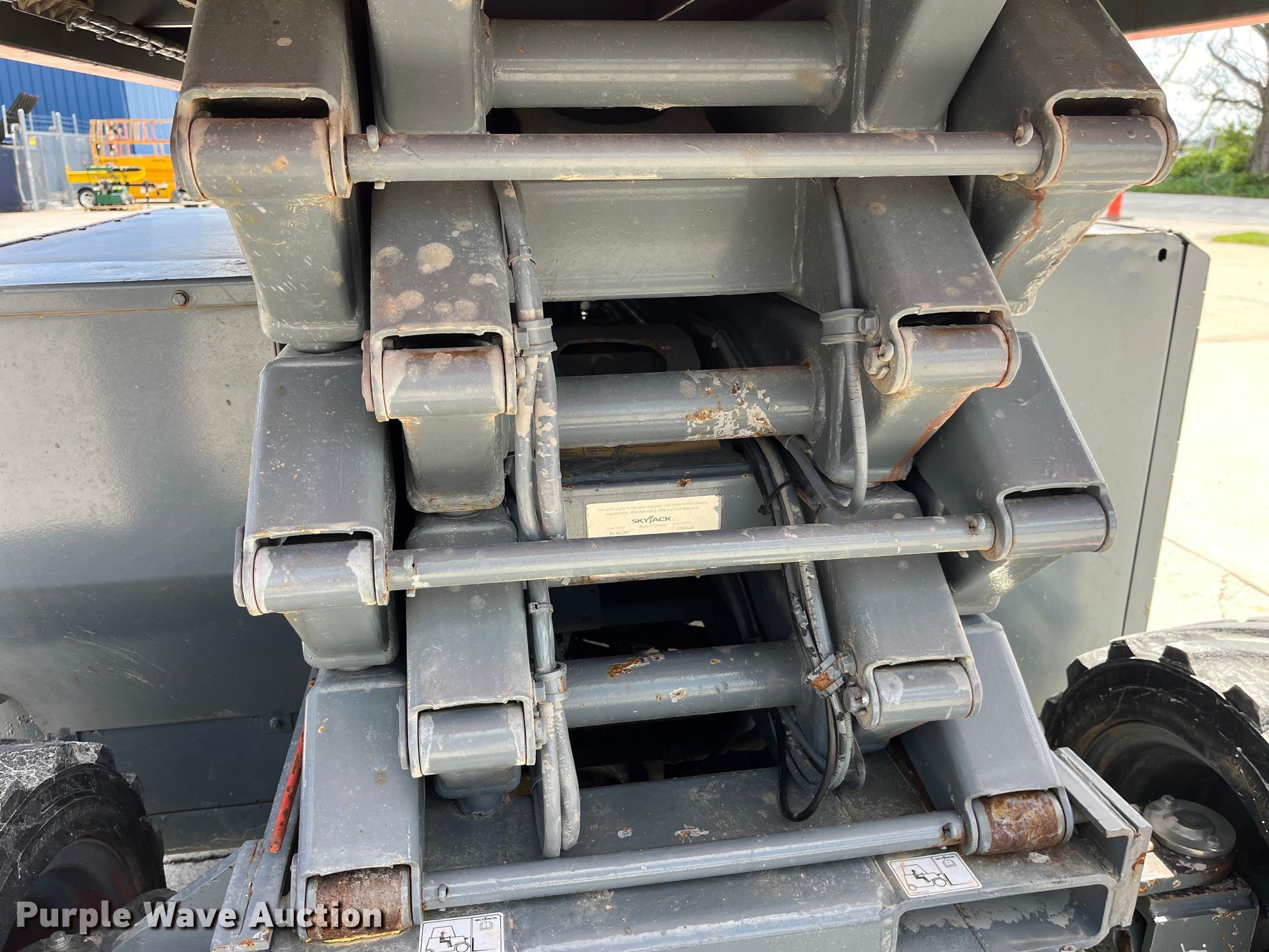 Purple Wave is selling a used Scissor or Vertical Lift in Missouri. This item is a 2012 SkyJack SJ 6832RT scissor lift with the following: Hours: 2,534 on meter, Serial: 37003225
