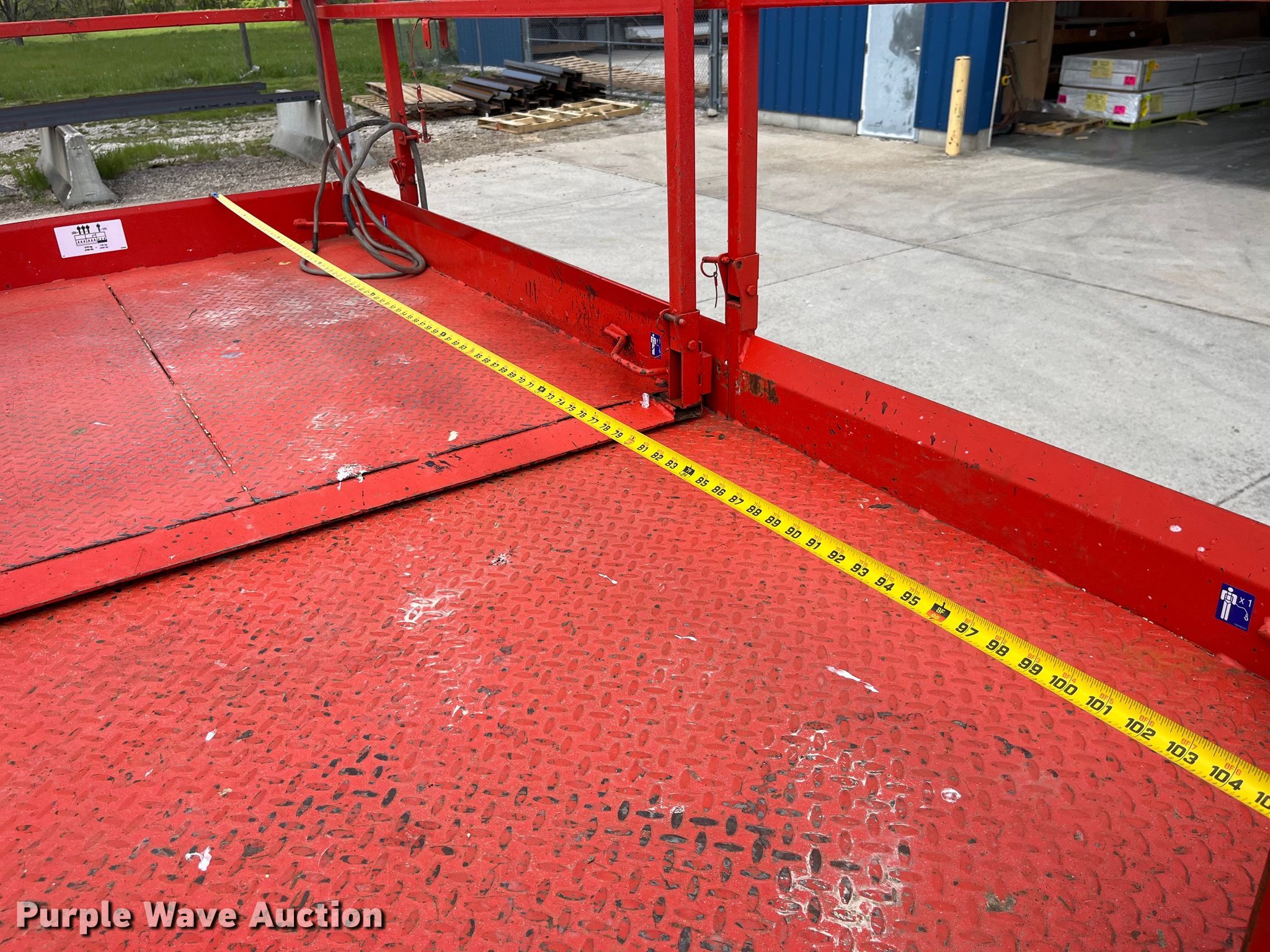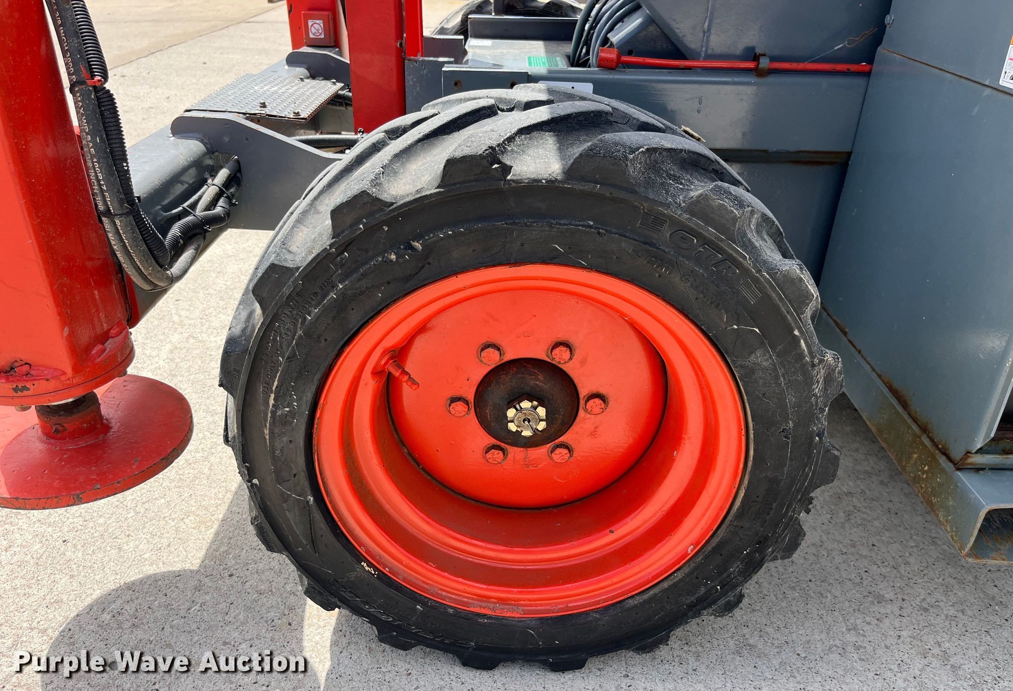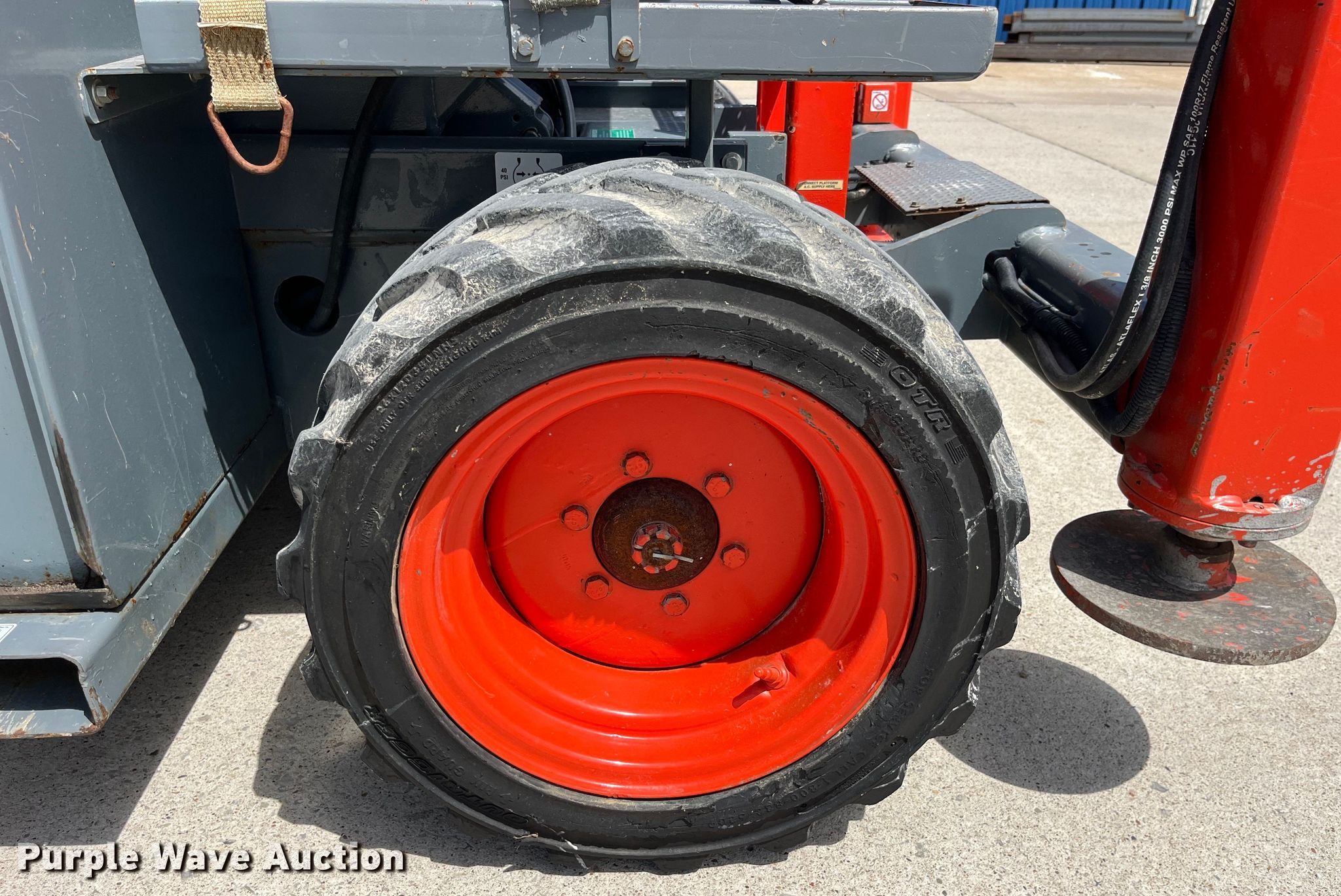2012 SkyJack SJ 6832RT scissor lift. Hours: 2,534 on meter, Serial: 37003225. Engine Kubota DF972-ES, Displacement: 962cc, Cylinders: 3, Fuel type: Dual fuel. Electric Motor Volts: 12. Chassis Four wheel drive. Features Rough terrain, Maximum lift capacity: 1,000 lbs, Maximum lift height: 32', Hydraulic outriggers, Platform: 106" L x 58" W, Controls: Platform, Remote Control, Platform extensions: Manual, Safety alarm. Tires Tire size: 26x12D380. Old Monroe Lumber Co. Old Monroe, MO 63369