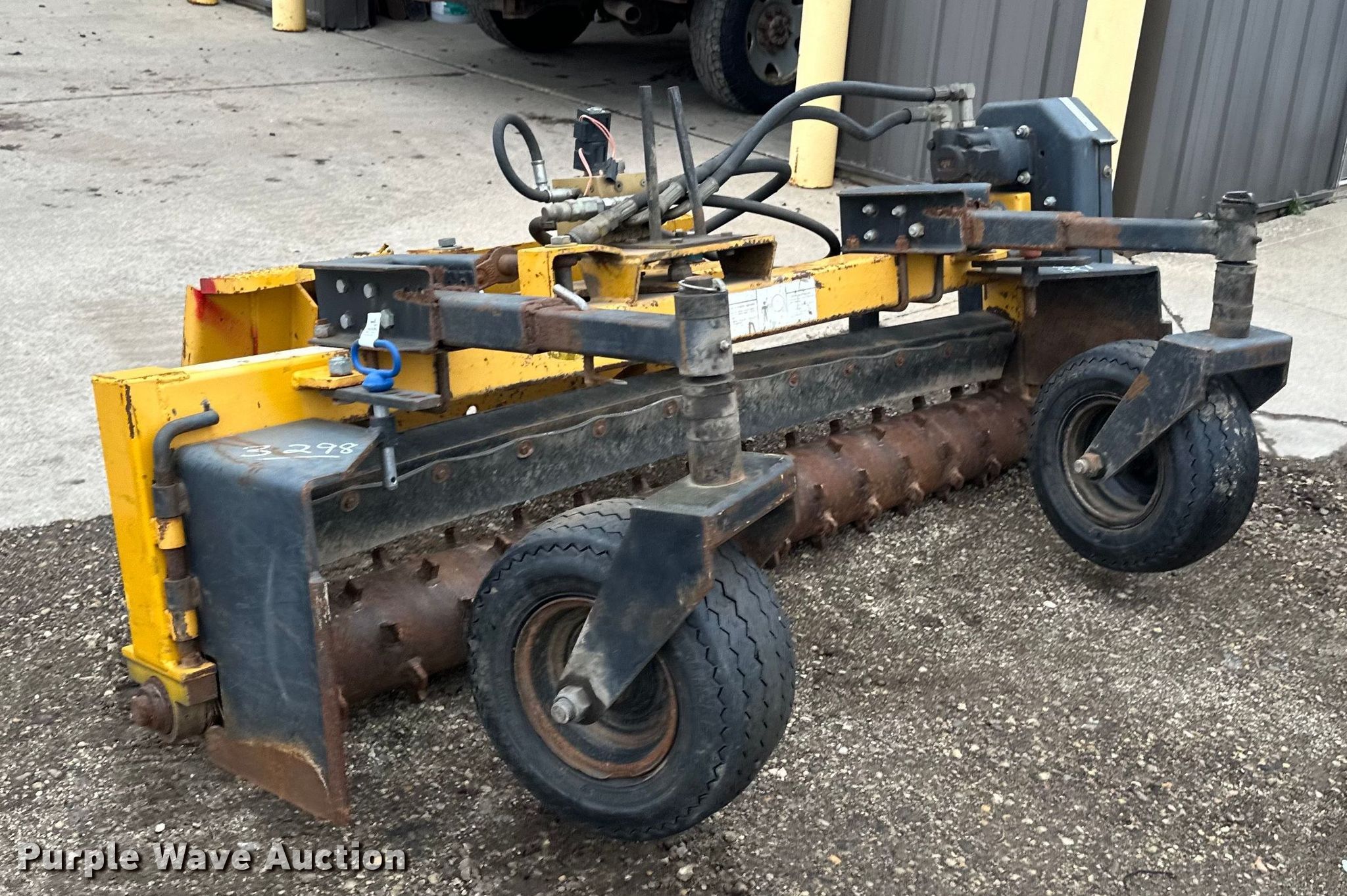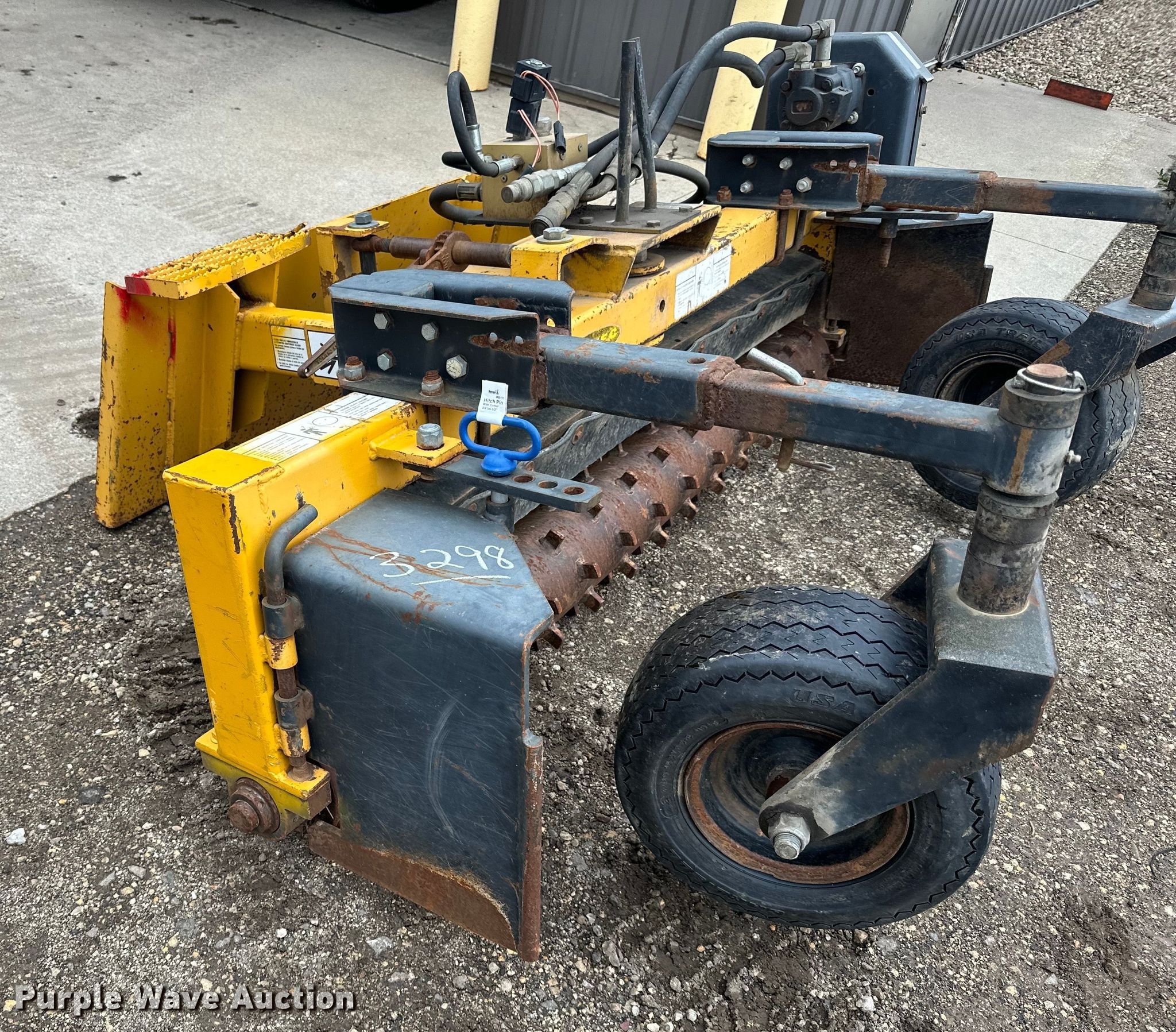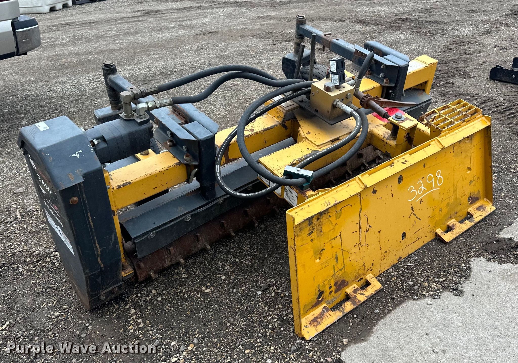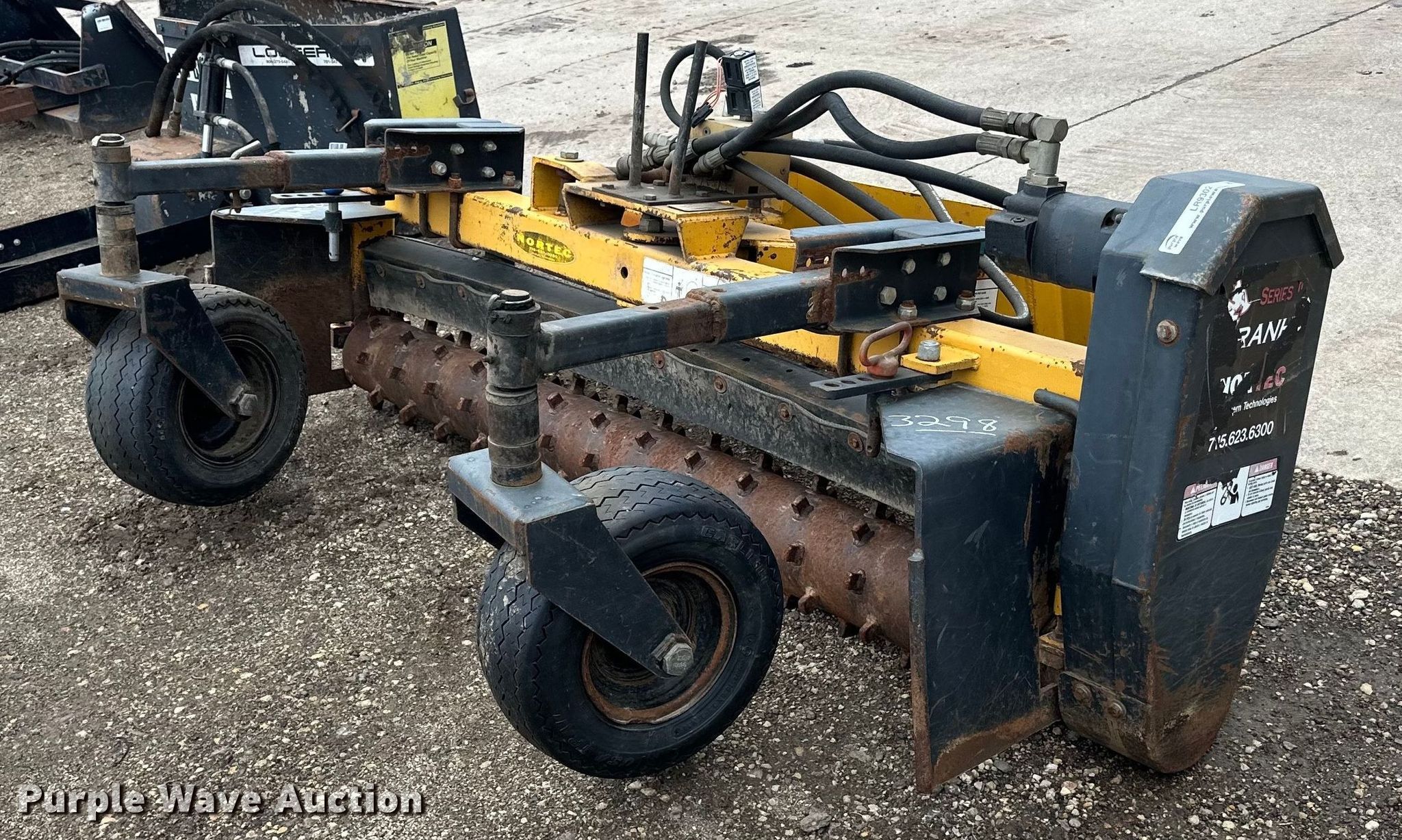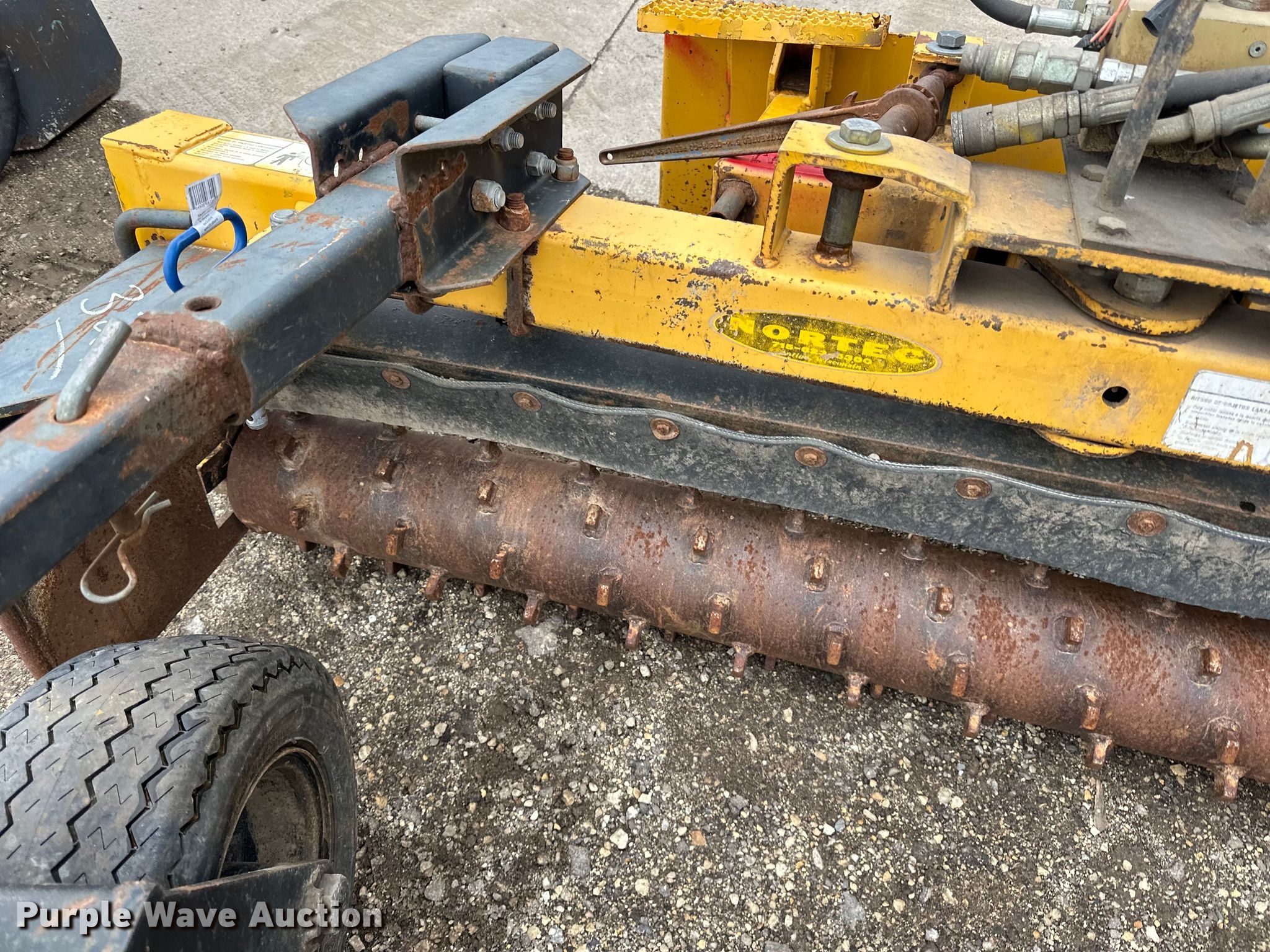 Purple Wave is selling a used Skid Steer Attach. in Minnesota. This item is a Nortec PS600II skid steer landscape rake with the following: Serial: NT37284, Width: 72", Tires: 18.5x6.5-8